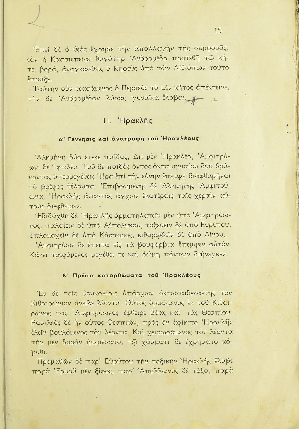 Σχολικό εγχειρίδιο Αρχαίων Ελληνικών Α΄ Γυμνασίου που περιλαμβάνει εισαγωγή στη ζωή και το έργο των Απολλόδωρου και Αιλιανού, αποσπάσματα από τη Βιβλιοθήκη του Απολλόδωρου και την Ποικίλη Ιστορία του Αιλιανού και ερμηνευτικές παρατηρήσεις και σχόλια.