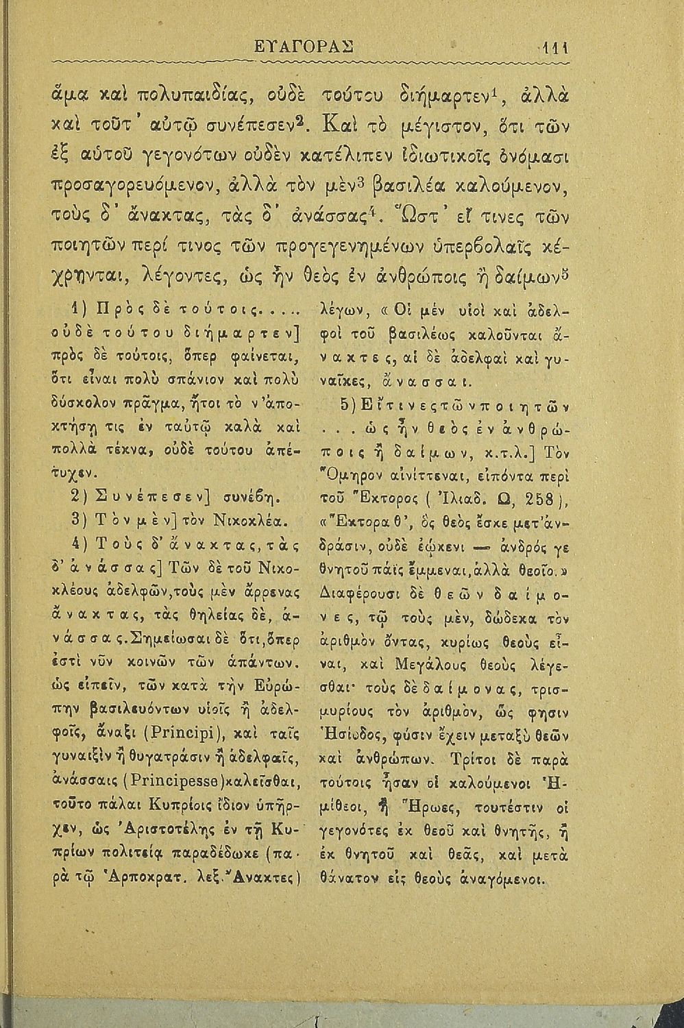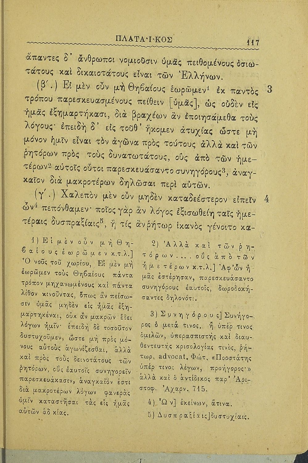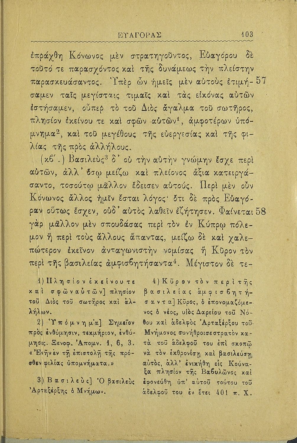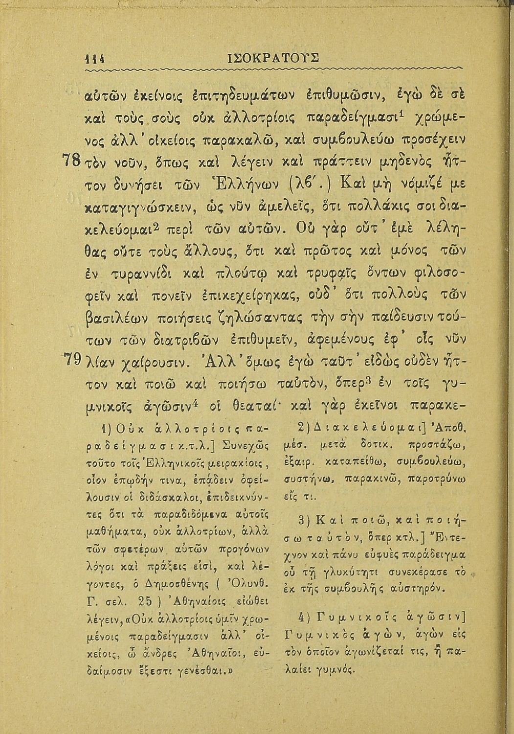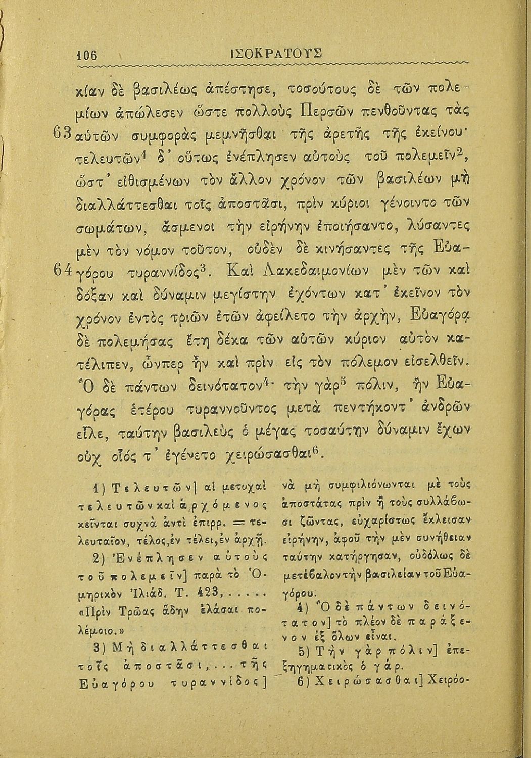 Σχολικό εγχειρίδιο Αρχαίων Ελληνικών Α΄ Γυμνασίου που περιλαμβάνει τους λόγους του Ισοκράτη Περί ειρήνης, Ευαγόρας και Πλαταϊκός και ερμηνευτικά και πραγματολογικά σχόλια.