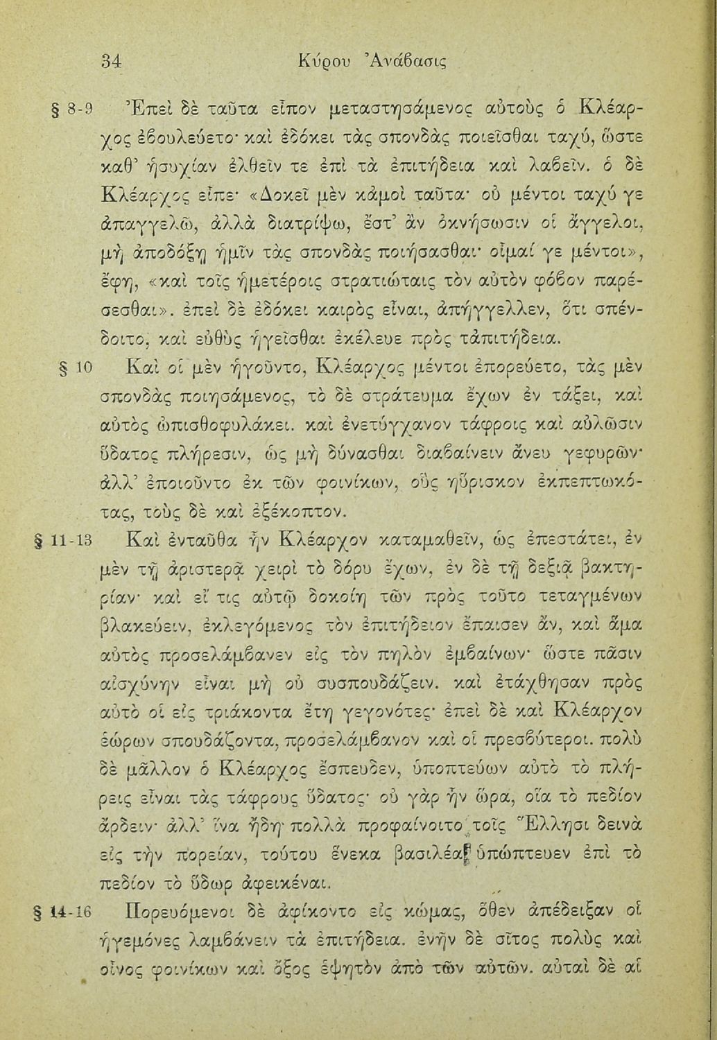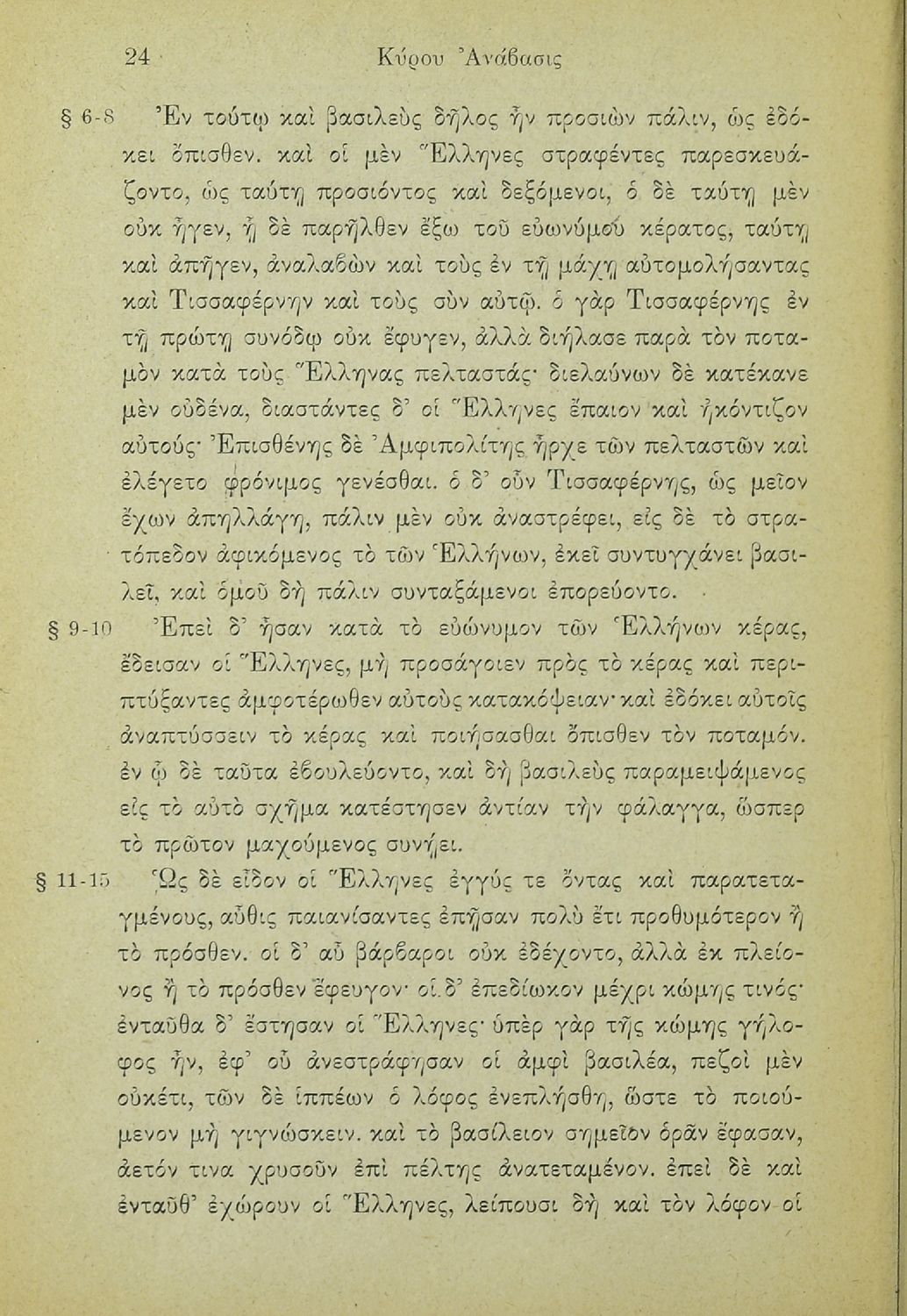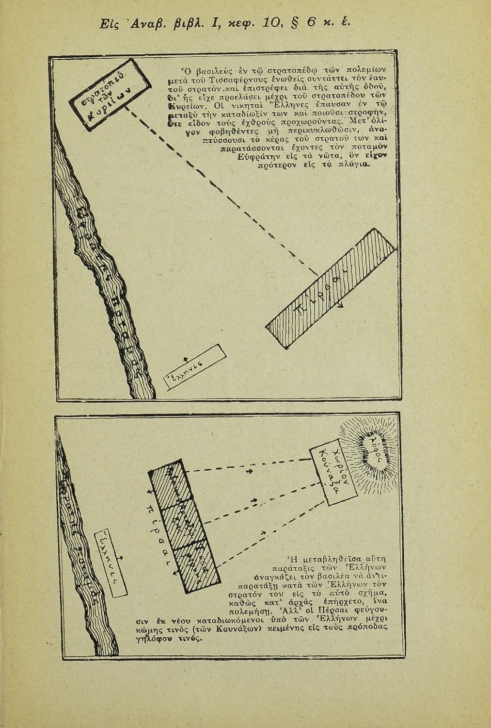 Σχολικό εγχειρίδιο Αρχαίων Ελληνικών για τις Β' Ελληνικού Σχολείου και Α' Αστικού Σχολείου Θηλέων που περιλαμβάνει αποσπάσματα από το έργο του Ξενοφώντα Κύρου Ανάβασις, εισαγωγή στη ζωή και το έργο του και ερμηνευτικές σημειώσεις και σχόλια.