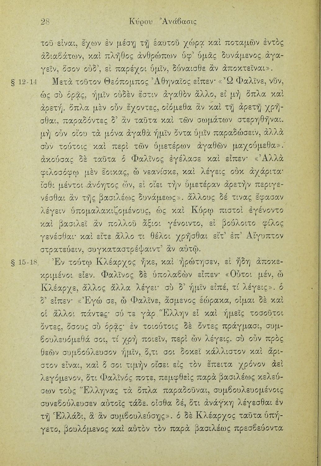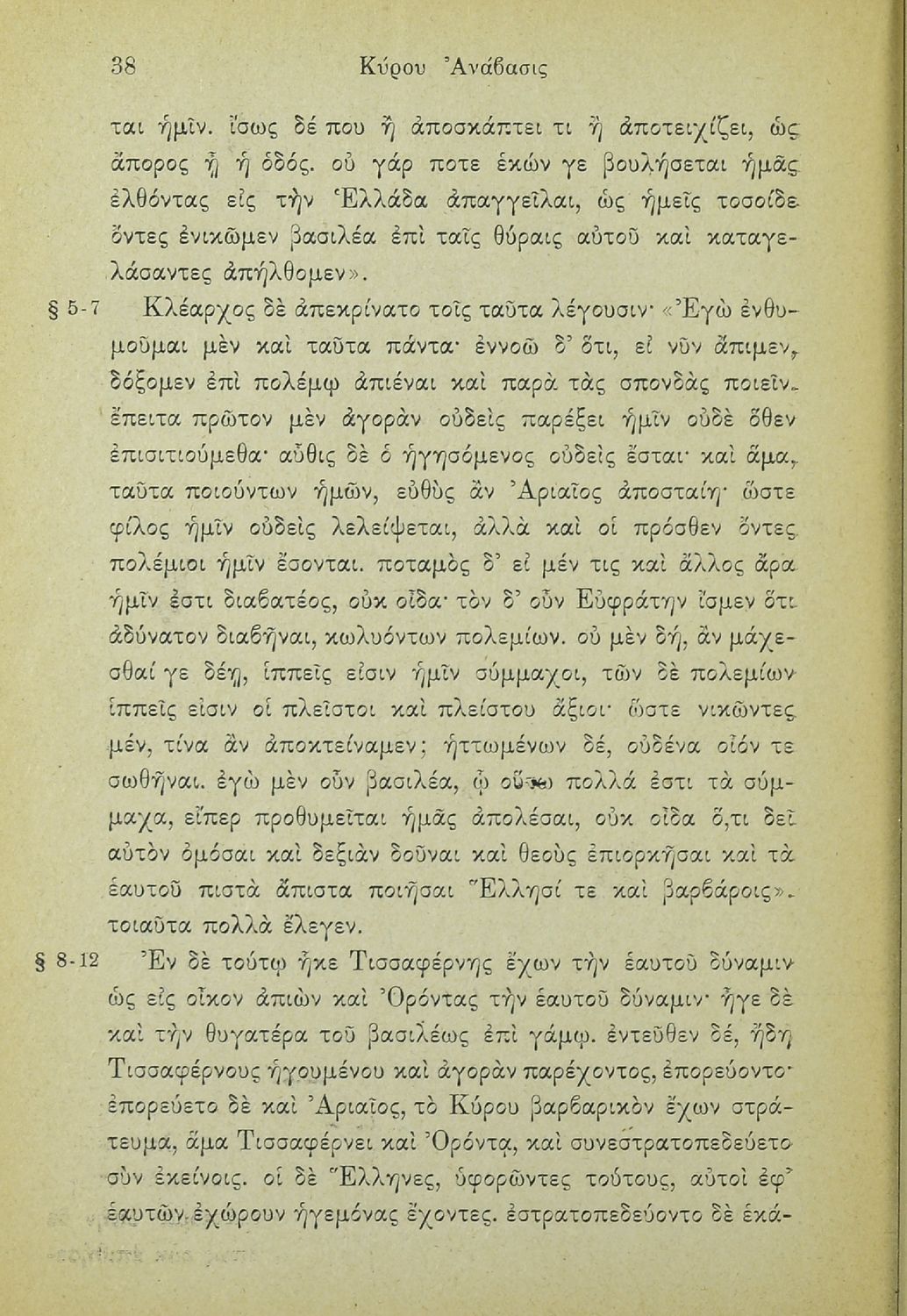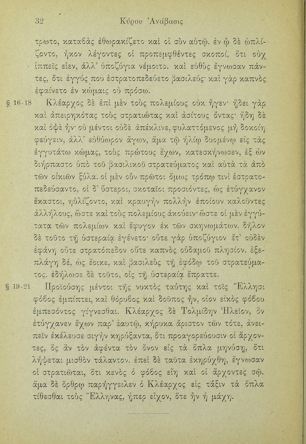 Σχολικό εγχειρίδιο Αρχαίων Ελληνικών για τις Β' Ελληνικού Σχολείου και Α' Αστικού Σχολείου Θηλέων που περιλαμβάνει αποσπάσματα από το έργο του Ξενοφώντα Κύρου Ανάβασις, εισαγωγή στη ζωή και το έργο του και ερμηνευτικές σημειώσεις και σχόλια.