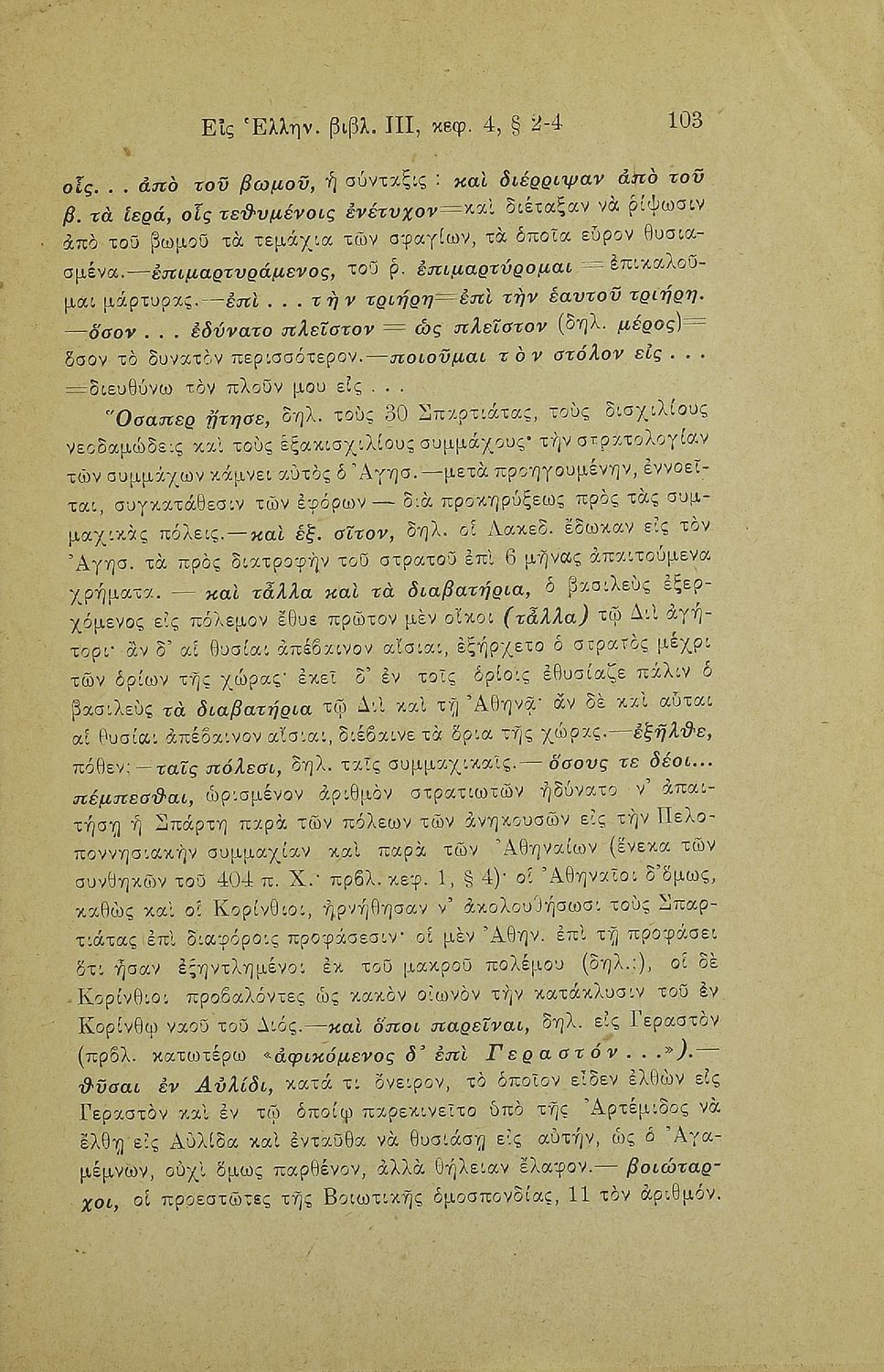 Σχολικό εγχειρίδιο Αρχαίων Ελληνικών για τα Ελληνικά Σχολεία και Παρθεναγωγεία που περιέχει αποσπάσματα από τα έργα του Ξενοφώντα Ελληνικά (βιβλία Α΄ και Β΄ ) και Κύρου Παιδεία, σημειώσεις και ερμηνευτικά ...