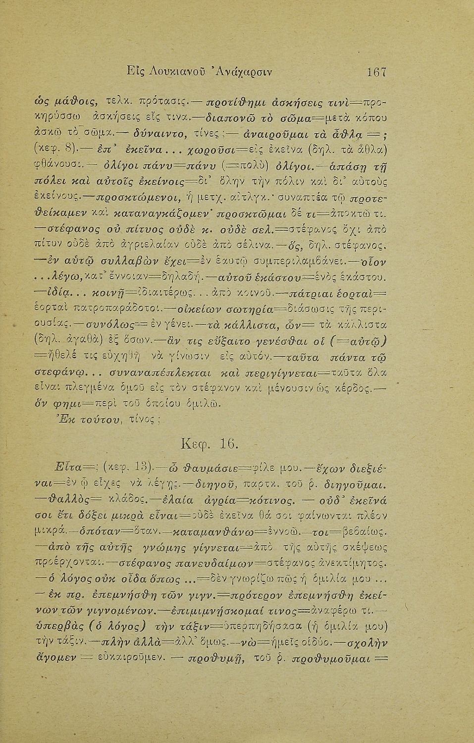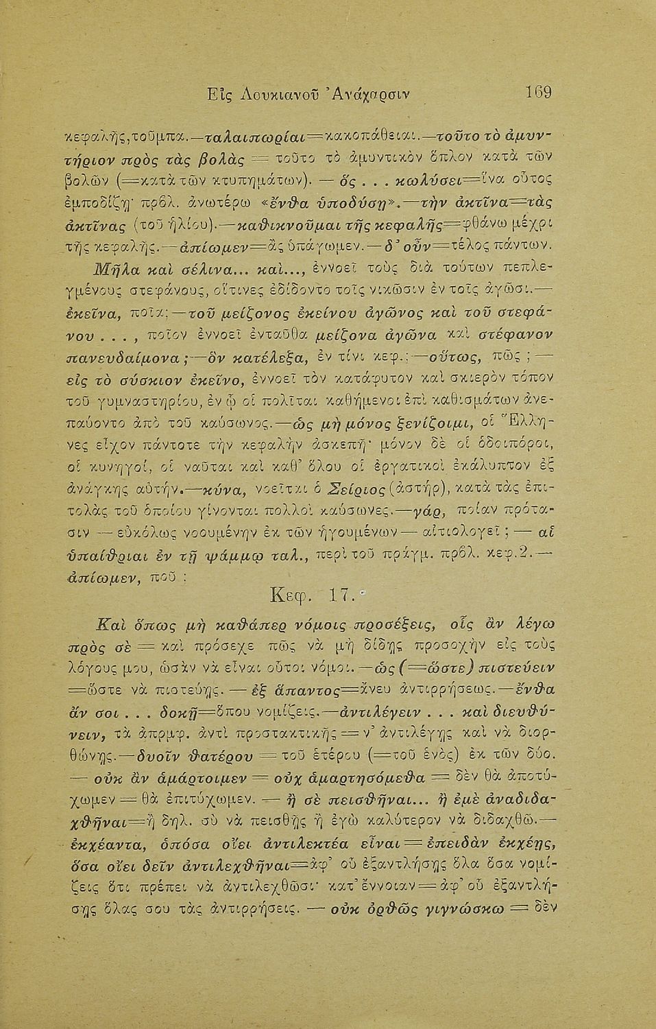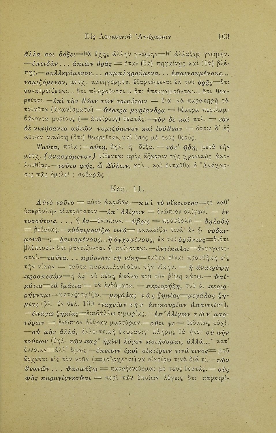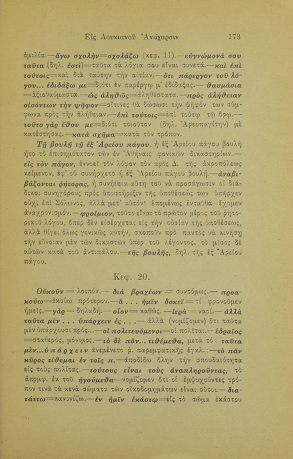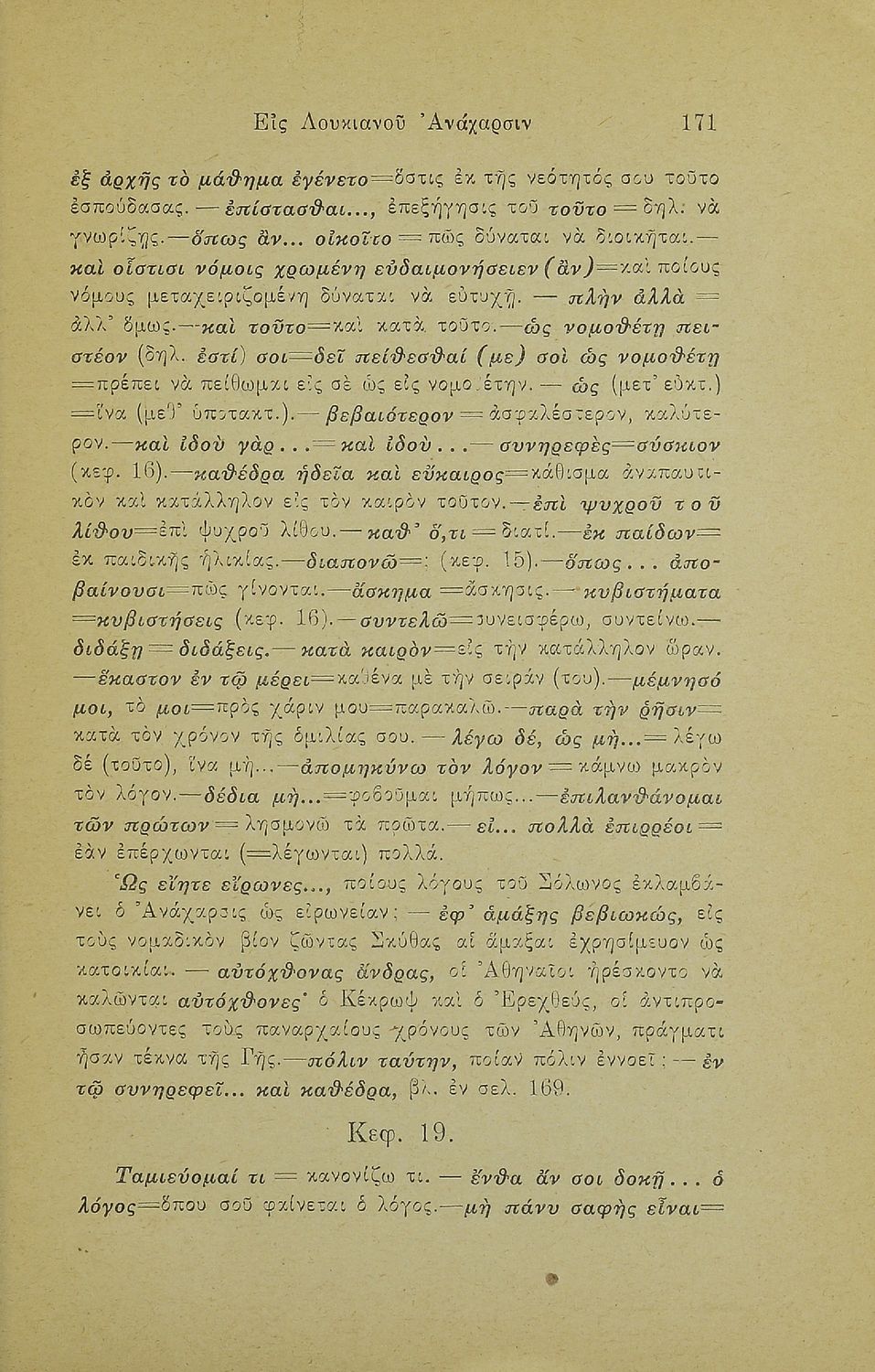 Σχολικό εγχειρίδιο Αρχαίων Ελληνικών Γ' Ελληνικού Σχολείου που περιέχει τα έργα του Λουκιανού Ανάχαρσις και Ενύπνιον και ερμηνευτικές και λεξιλογικές παρατηρήσεις.