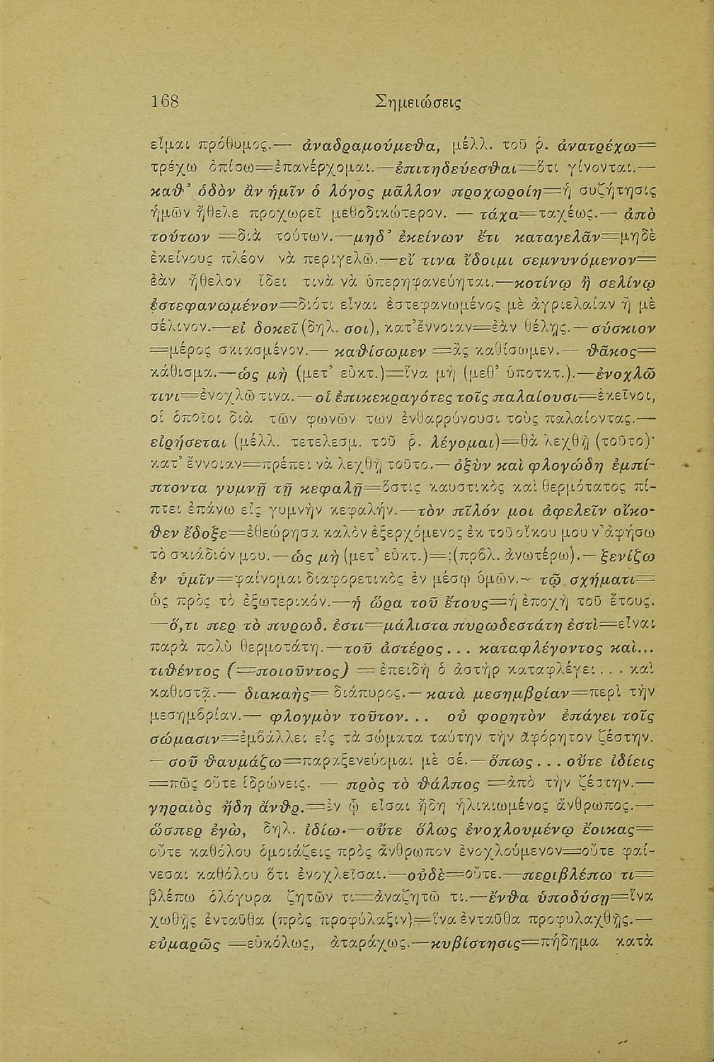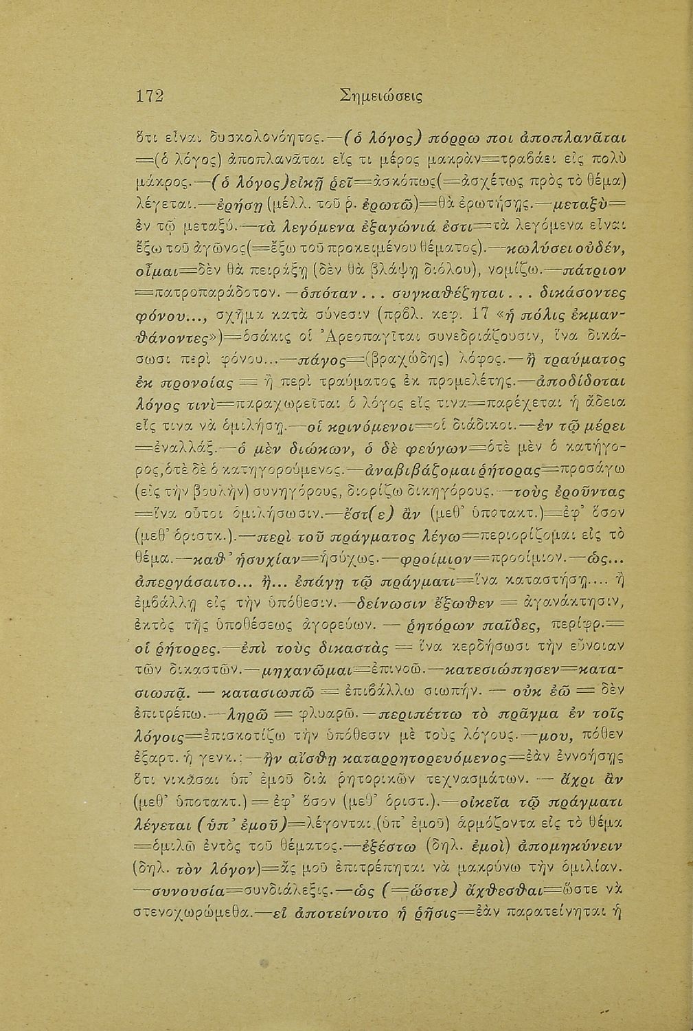 Σχολικό εγχειρίδιο Αρχαίων Ελληνικών Γ' Ελληνικού Σχολείου που περιλαμβάνει γραμματική της αρχαίας ελληνικής, αποσπάσματα από το έργο του Ξενοφώντα Ελληνικά και τα έργα του Λουκιανού Ενύπνιον και Ανάχαρσις, ...