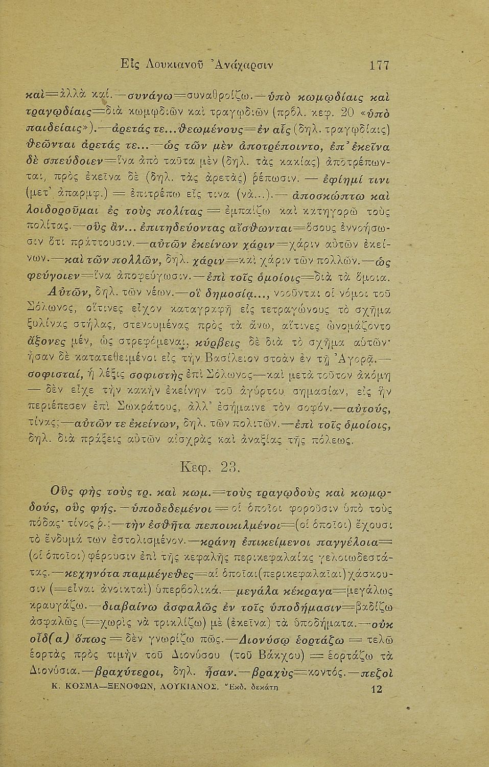 Ξενοφών, Λουκιανός, Κυριάκος Κοσμάς (σχόλια)
