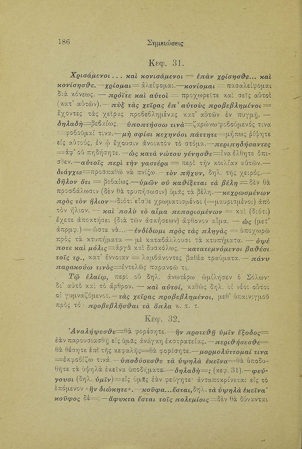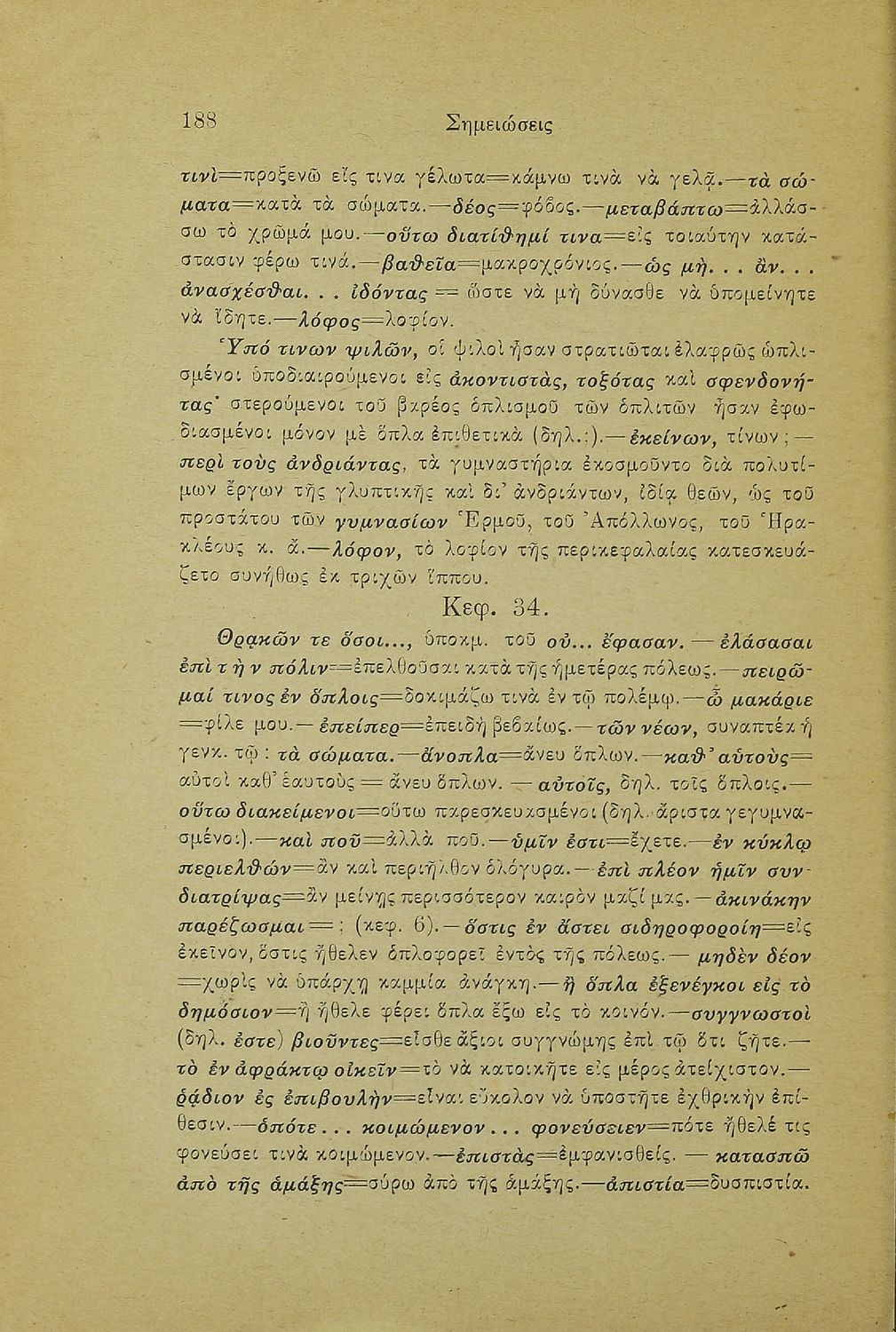 Σχολικό εγχειρίδιο Αρχαίων Ελληνικών Γ' Ελληνικού Σχολείου που περιλαμβάνει γραμματική της αρχαίας ελληνικής, αποσπάσματα από το έργο του Ξενοφώντα Ελληνικά και τα έργα του Λουκιανού Ενύπνιον και Ανάχαρσις, ...