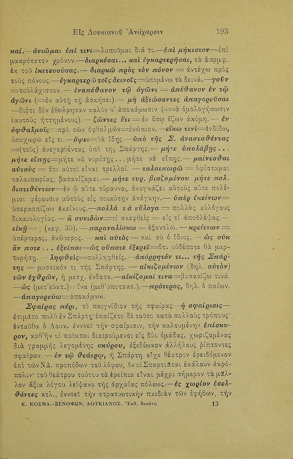 Ξενοφών, Λουκιανός, Κυριάκος Κοσμάς (σχόλια)