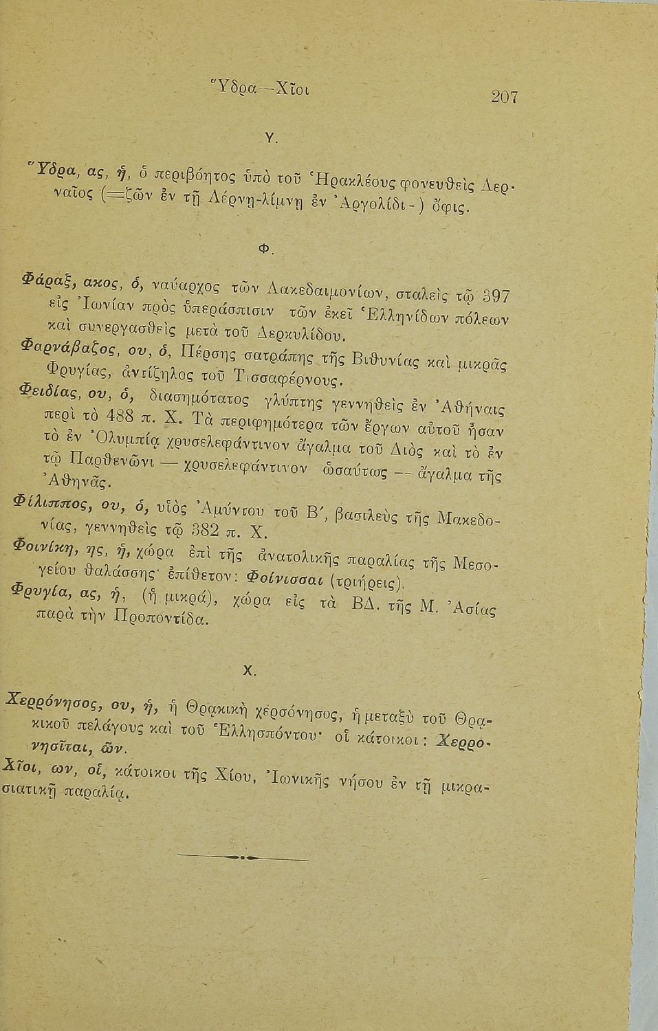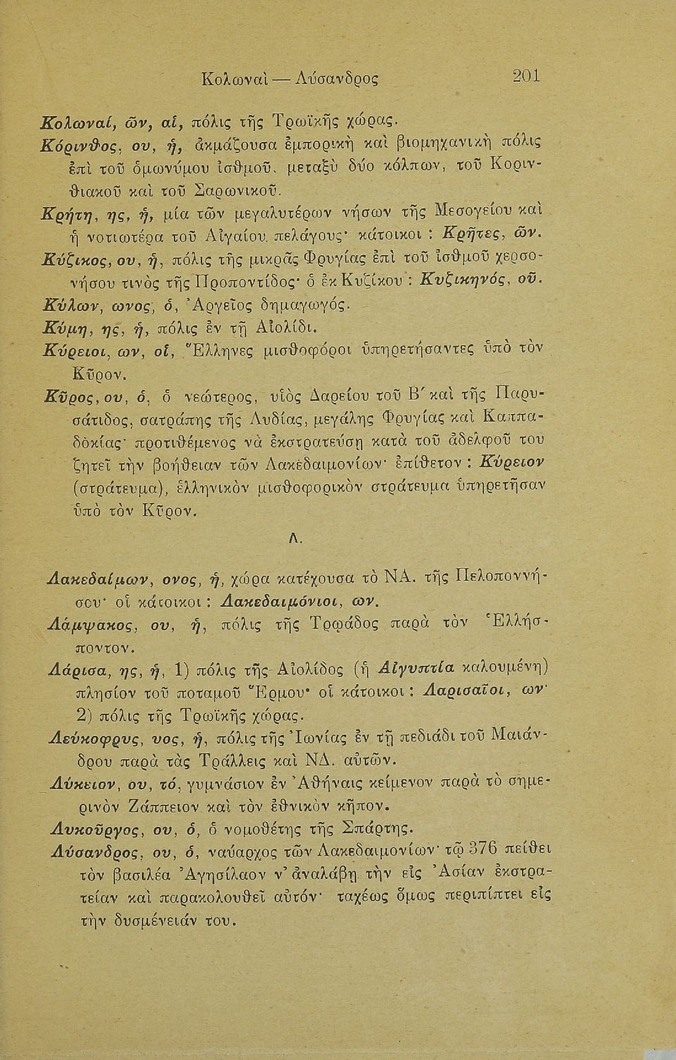 Σχολικό εγχειρίδιο Αρχαίων Ελληνικών Γ' Ελληνικού Σχολείου που περιλαμβάνει γραμματική της αρχαίας ελληνικής, αποσπάσματα από το έργο του Ξενοφώντα Ελληνικά και τα έργα του Λουκιανού Ενύπνιον και Ανάχαρσις, ...