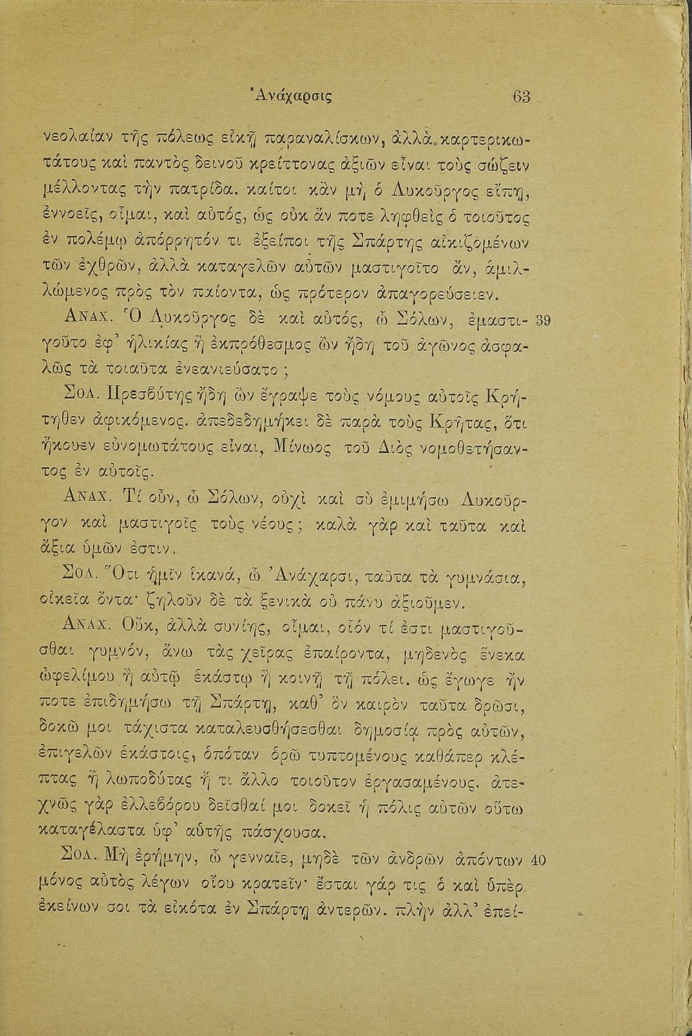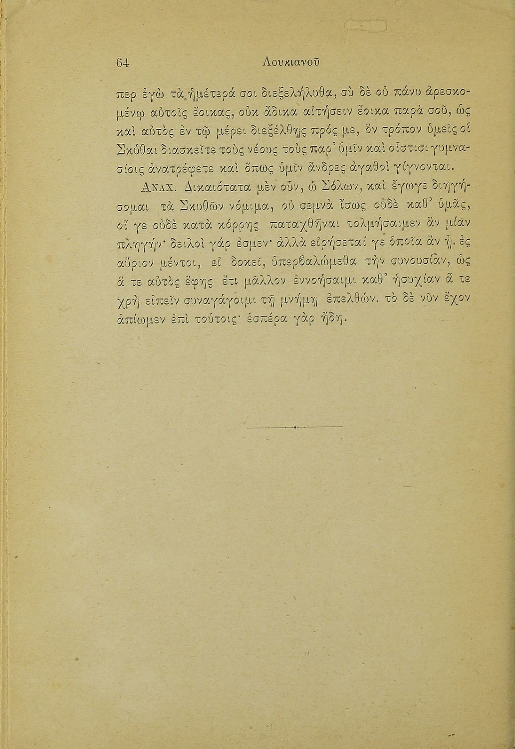 Σχολικό εγχειρίδιο Αρχαίων Ελληνικών Γ' Ελληνικού Σχολείου που περιέχει τα έργα του Λουκιανού Ανάχαρσις και Ενύπνιον και ερμηνευτικές και λεξιλογικές παρατηρήσεις.