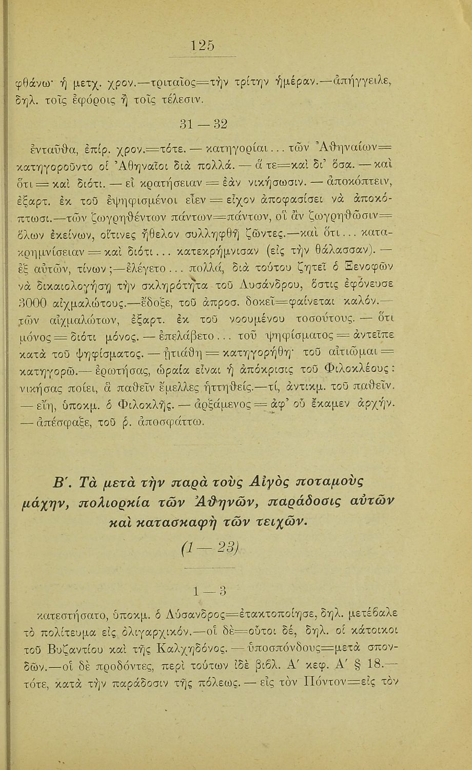Σχολικό εγχειρίδιο Αρχαίων Ελληνικών Β΄ Γυμνασίου που περιλαμβάνει εισαγωγή στα Ελληνικά του Ξενοφώντα, το 3ο και το 4ο βιβλίο από τα Ελληνικά, ερμηνευτικές σημειώσεις και χωρογραφικό πίνακα της περιοχής.