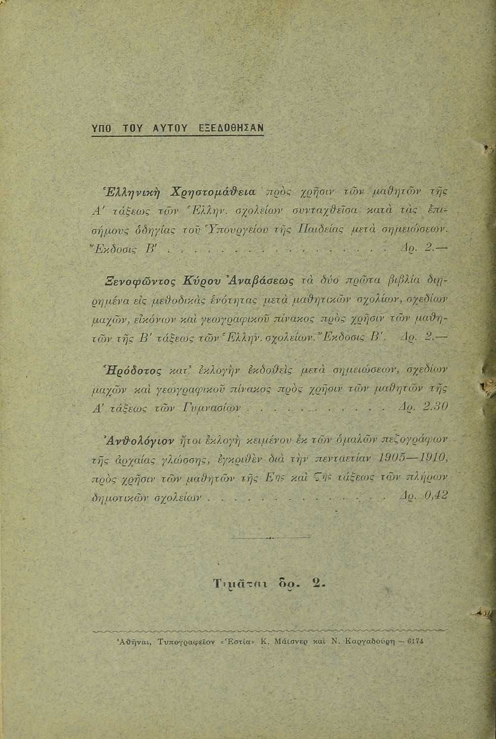 Εκδότης: Ιωάννης Δ. Κολλάρος, Βιβλιοπωλείο της "Εστίας" Έτος έκδοσης: 1907 Τόπος έκδοσης: Αθήνα Έκδοση: 3η |