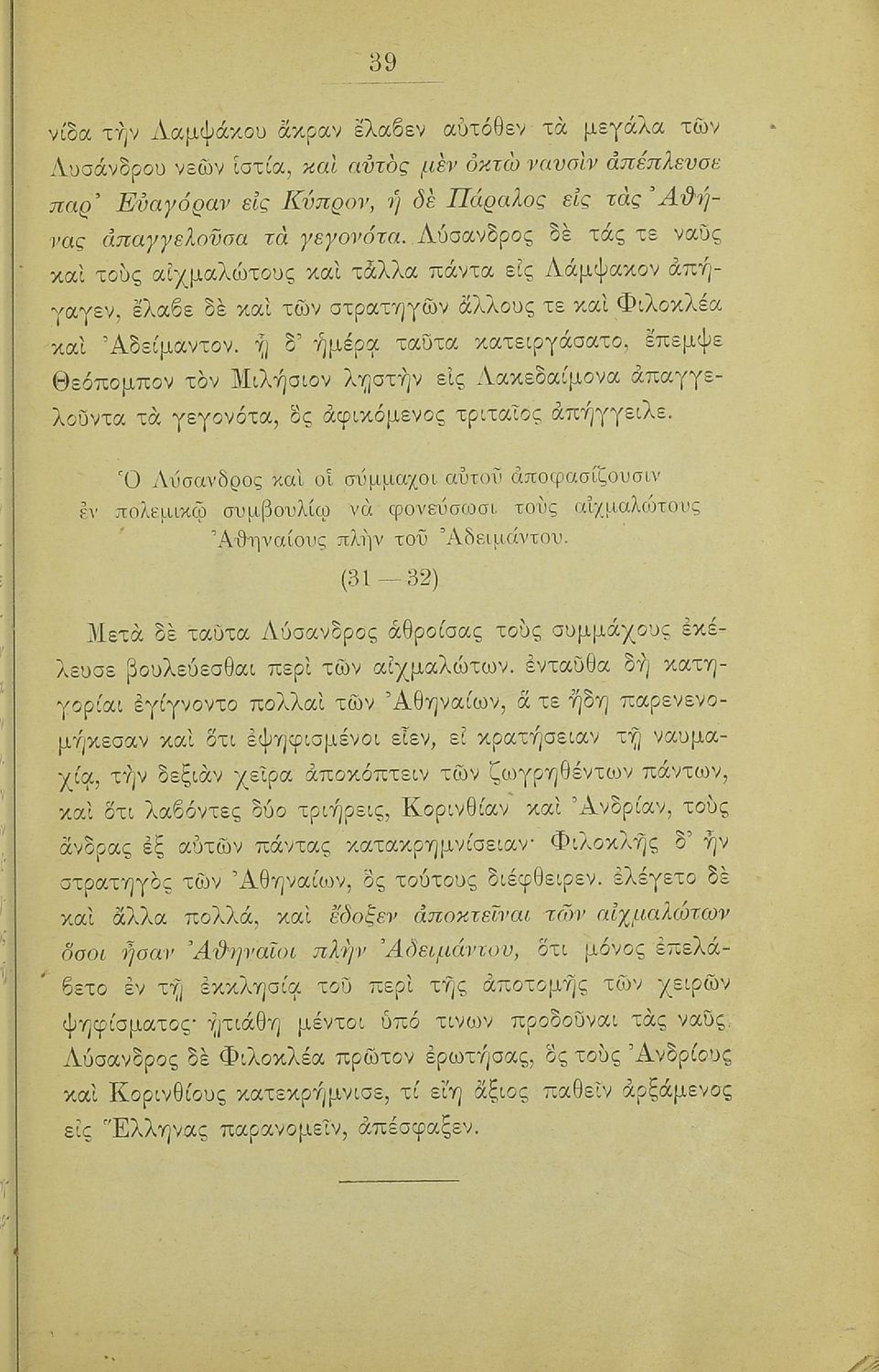 Βαθμίδα εκπαίδευσης: Δευτεροβάθμια Μάθημα: Αρχαία Ελληνικά Γλώσσα: Καθαρεύουσα Παρουσίαση περιεχομένου: Σχολικό εγχειρίδιο Αρχαίων Ελληνικών που περιλαμβάνει αποσπάσματα από τα έργα του Ξενοφώντα Ελληνικά και Κύρου Παιδεία, εισαγωγικά σχόλια στη ζωή και το έργο του, ερμηνευτικά και πραγματολογικά σχόλια και λεξιλογικές παρατηρήσεις. |
