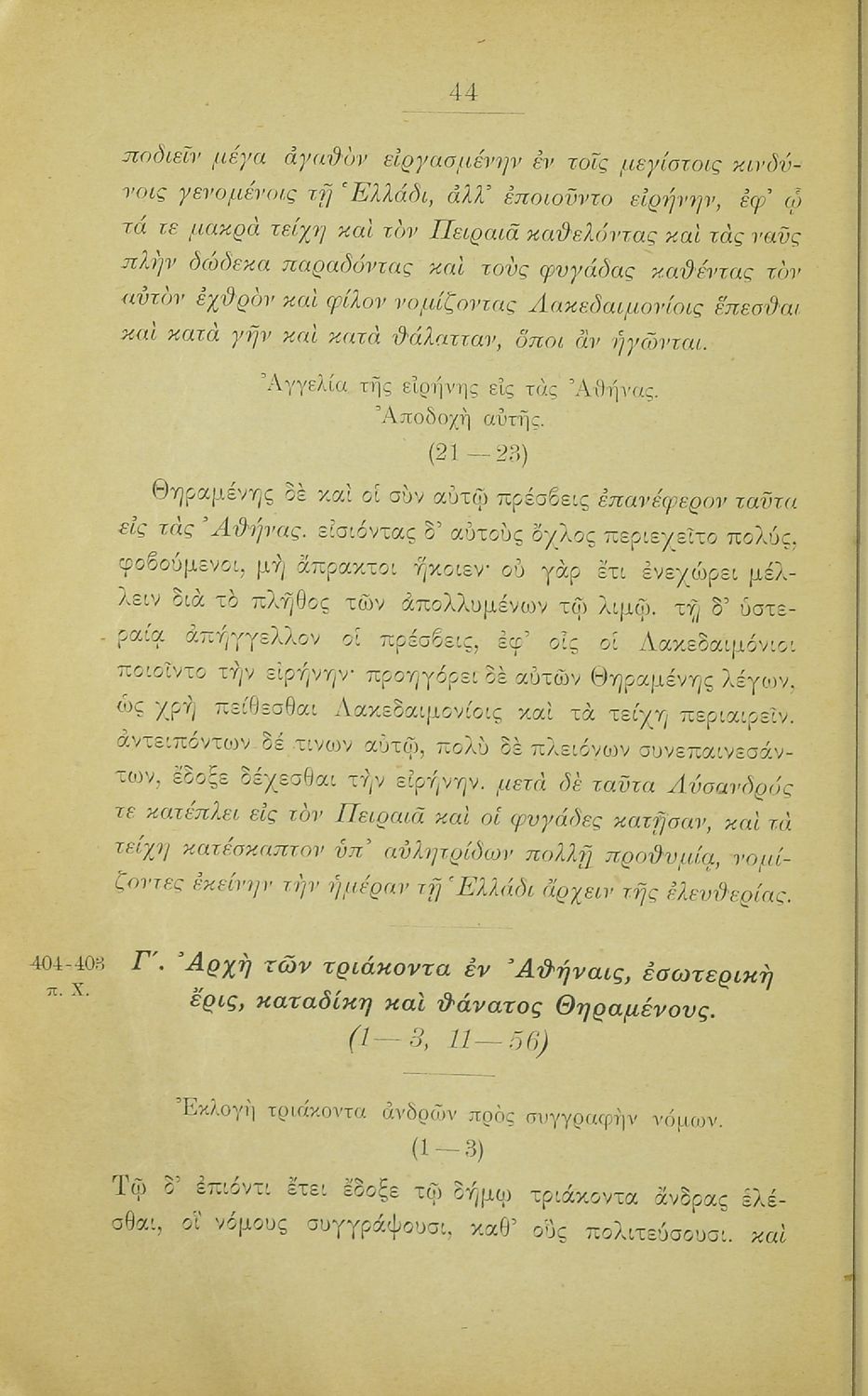 Σχολικό εγχειρίδιο Αρχαίων Ελληνικών που περιλαμβάνει αποσπάσματα από τα έργα του Ξενοφώντα Ελληνικά και Κύρου Παιδεία, εισαγωγικά σχόλια στη ζωή και το έργο του, ερμηνευτικά και πραγματολογικά σχόλια και λεξιλογικές παρατηρήσεις.