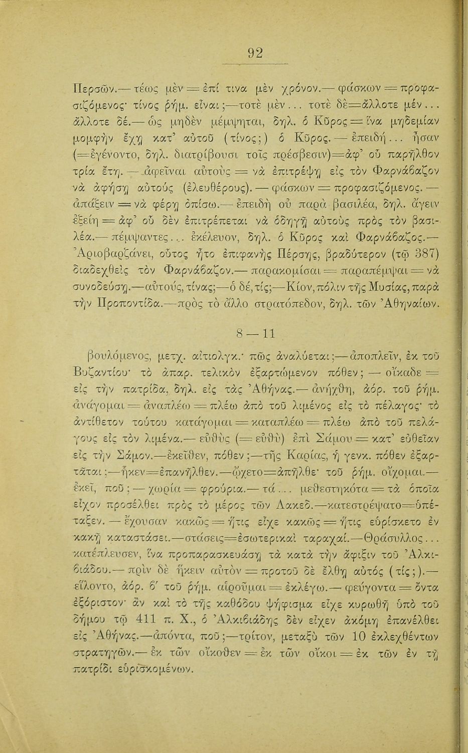 Βαθμίδα εκπαίδευσης: Δευτεροβάθμια Μάθημα: Αρχαία Ελληνικά Γλώσσα: Καθαρεύουσα Παρουσίαση περιεχομένου: Σχολικό εγχειρίδιο Αρχαίων Ελληνικών που περιλαμβάνει αποσπάσματα από τα έργα του Ξενοφώντα Ελληνικά και Κύρου Παιδεία, εισαγωγικά σχόλια στη ζωή και το έργο του, ερμηνευτικά και πραγματολογικά σχόλια και λεξιλογικές παρατηρήσεις. |