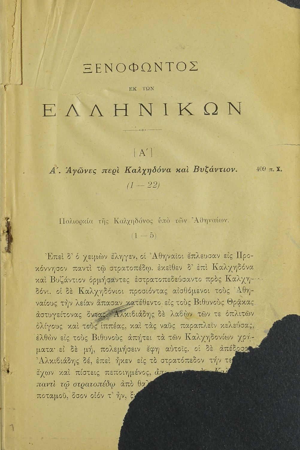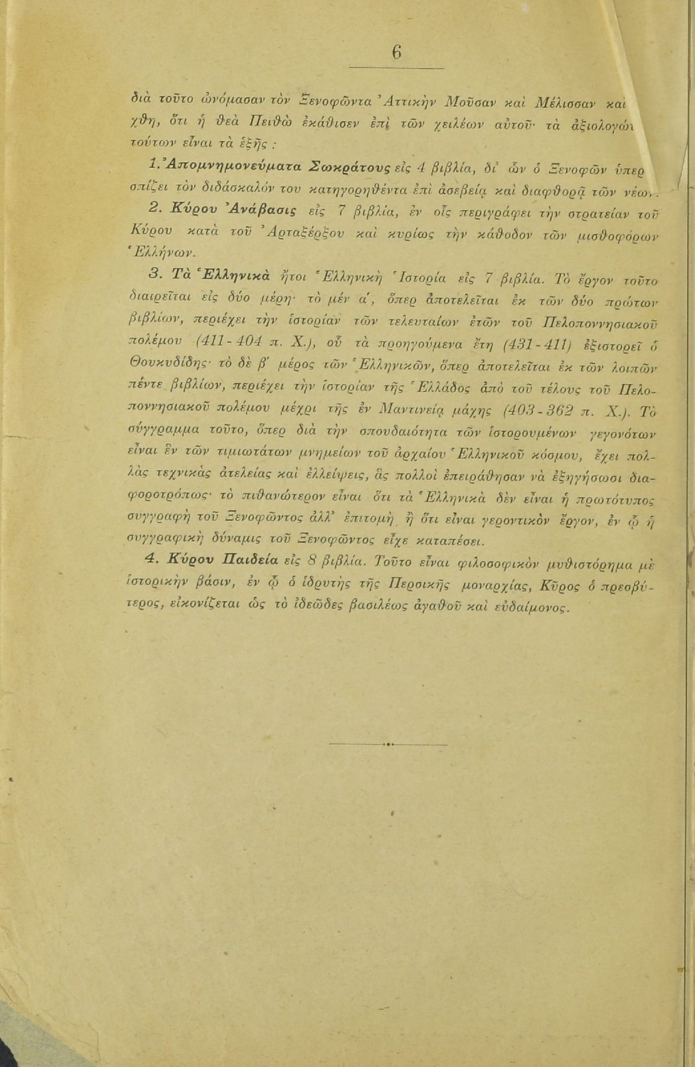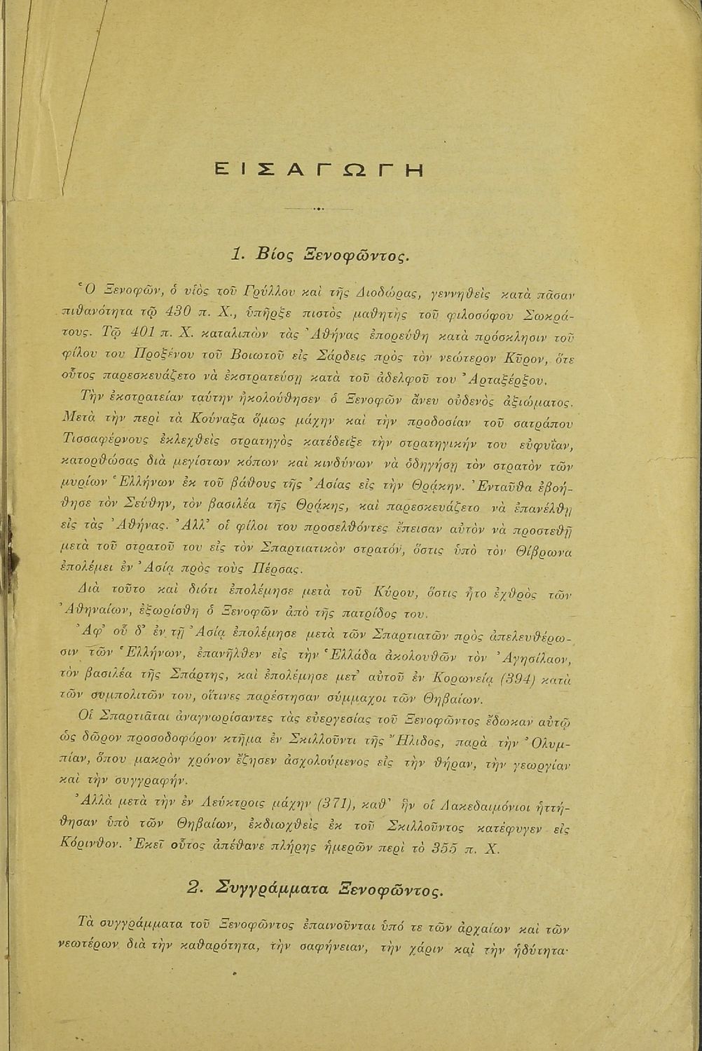 Σχολικό εγχειρίδιο Αρχαίων Ελληνικών που περιλαμβάνει αποσπάσματα από τα έργα του Ξενοφώντα Ελληνικά και Κύρου Παιδεία, εισαγωγικά σχόλια στη ζωή και το έργο του, ερμηνευτικά και πραγματολογικά σχόλια και λεξιλογικές παρατηρήσεις.