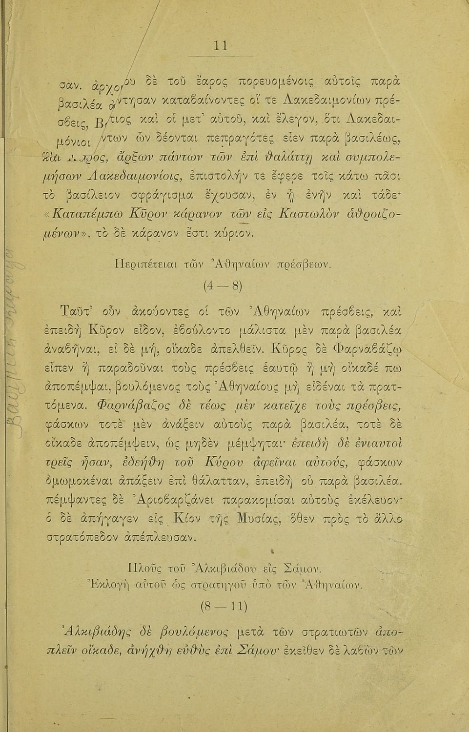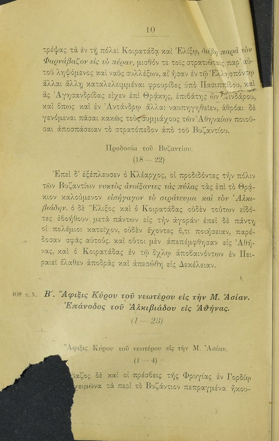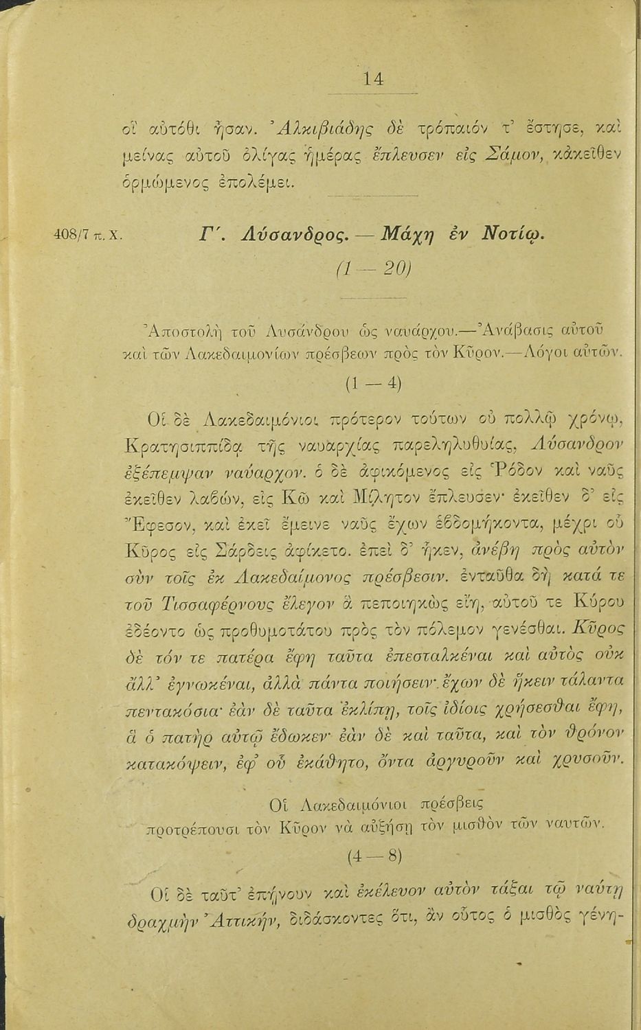 Σχολικό εγχειρίδιο Αρχαίων Ελληνικών που περιλαμβάνει αποσπάσματα από τα έργα του Ξενοφώντα Ελληνικά και Κύρου Παιδεία, εισαγωγικά σχόλια στη ζωή και το έργο του, ερμηνευτικά και πραγματολογικά σχόλια και λεξιλογικές παρατηρήσεις.