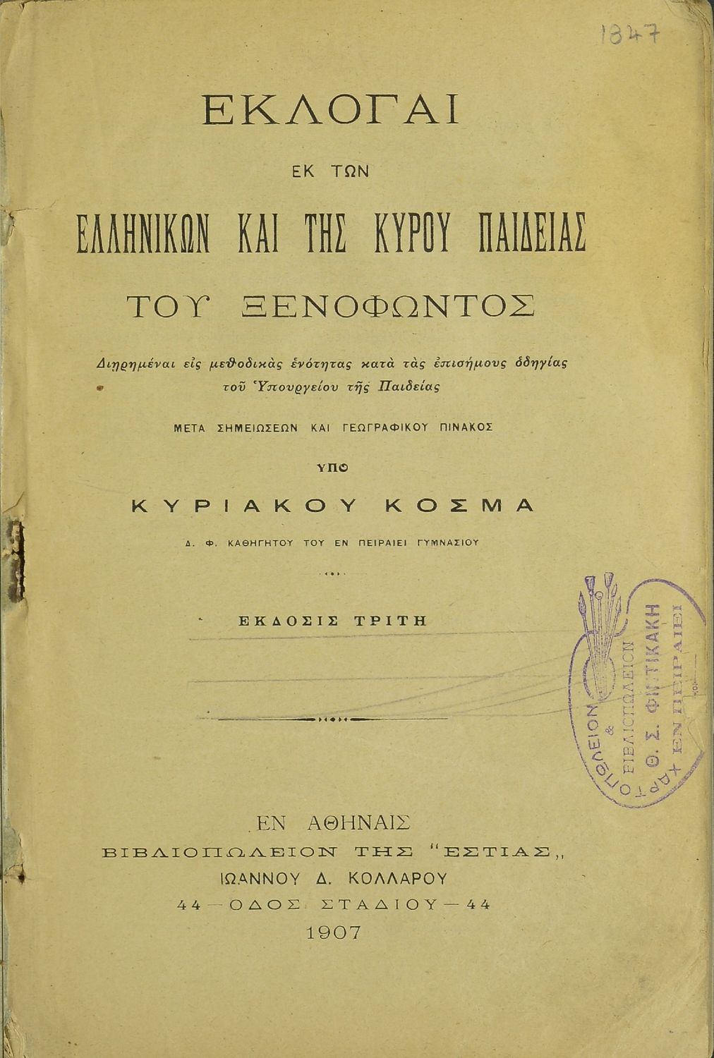 Εκδότης: Ιωάννης Δ. Κολλάρος, Βιβλιοπωλείο της "Εστίας" Έτος έκδοσης: 1907 Τόπος έκδοσης: Αθήνα Έκδοση: 3η |