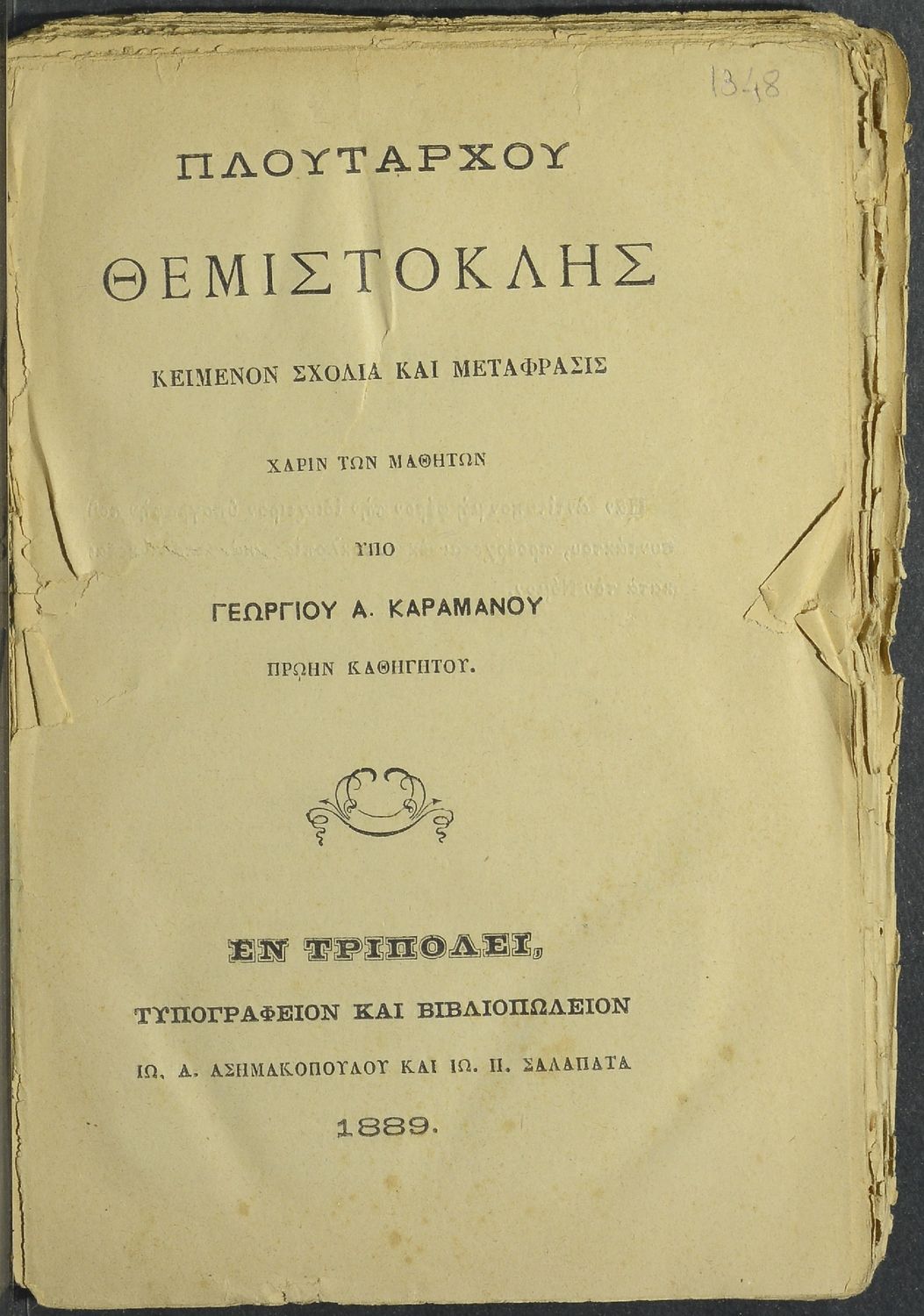 Τίτλος: Πλουτάρχου Θεμιστοκλής κείμενον, σχόλια και μετάφρασις χάριν των μαθητών