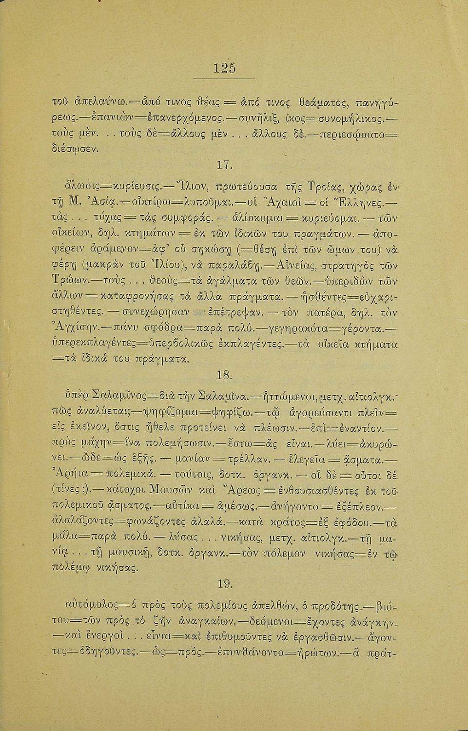 Σχολικό εγχειρίδιο Αρχαίων Ελληνικών Α' Ελληνικού Σχολείου που περιλαμβάνει κείμενα για τη διδασκαλία της γραμματικής της αρχαίας ελληνικής, αποσπάσματα από τους μύθους του Αισώπου και την ελληνική μυθολογία και φράσεις, λεξιλογικά και γραμματικά σχόλια.