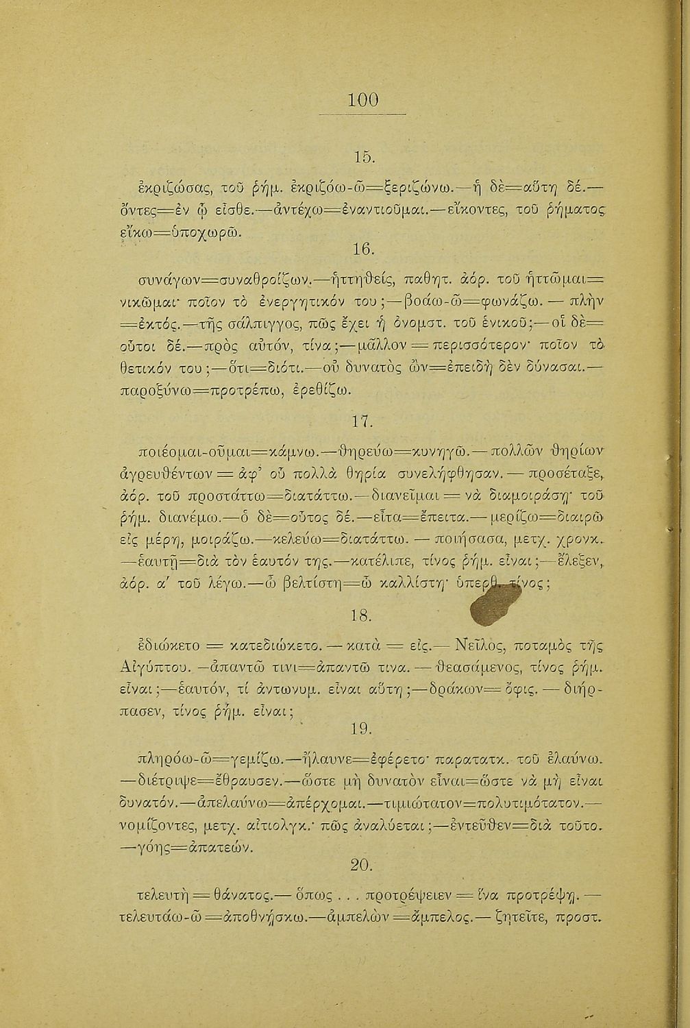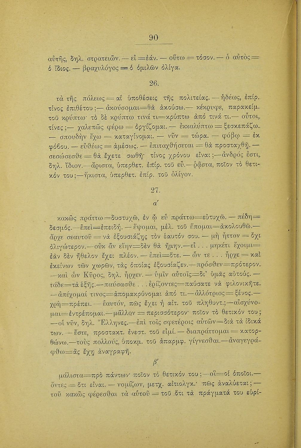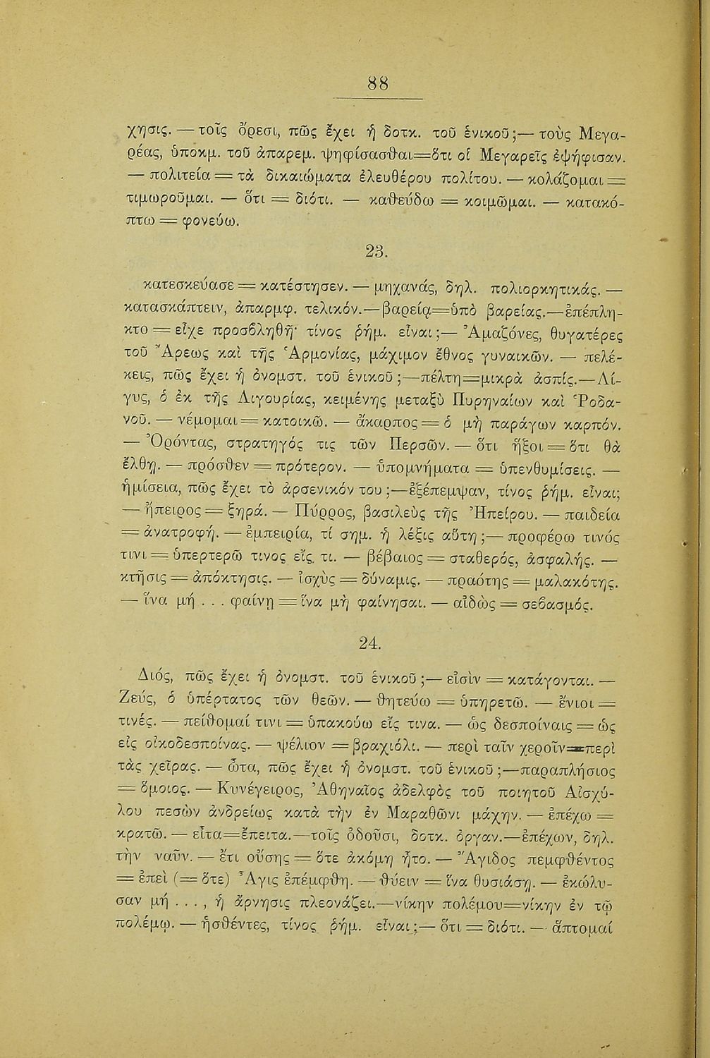 Βαθμίδα εκπαίδευσης: Δευτεροβάθμια Τάξη: Α' Ελληνικού Σχολείου Μάθημα: Αρχαία Ελληνικά Γλώσσα: Καθαρεύουσα Παρουσίαση περιεχομένου: Σχολικό εγχειρίδιο Αρχαίων Ελληνικών Α' Ελληνικού Σχολείου που περιλαμβάνει κείμενα για τη διδασκαλία της γραμματικής της αρχαίας ελληνικής, αποσπάσματα από τους μύθους του Αισώπου και την ελληνική μυθολογία και φράσεις, λεξιλογικά και γραμματικά σχόλια. |