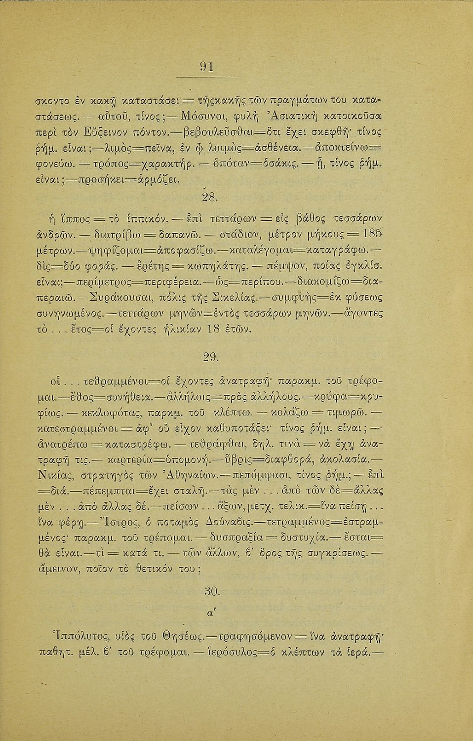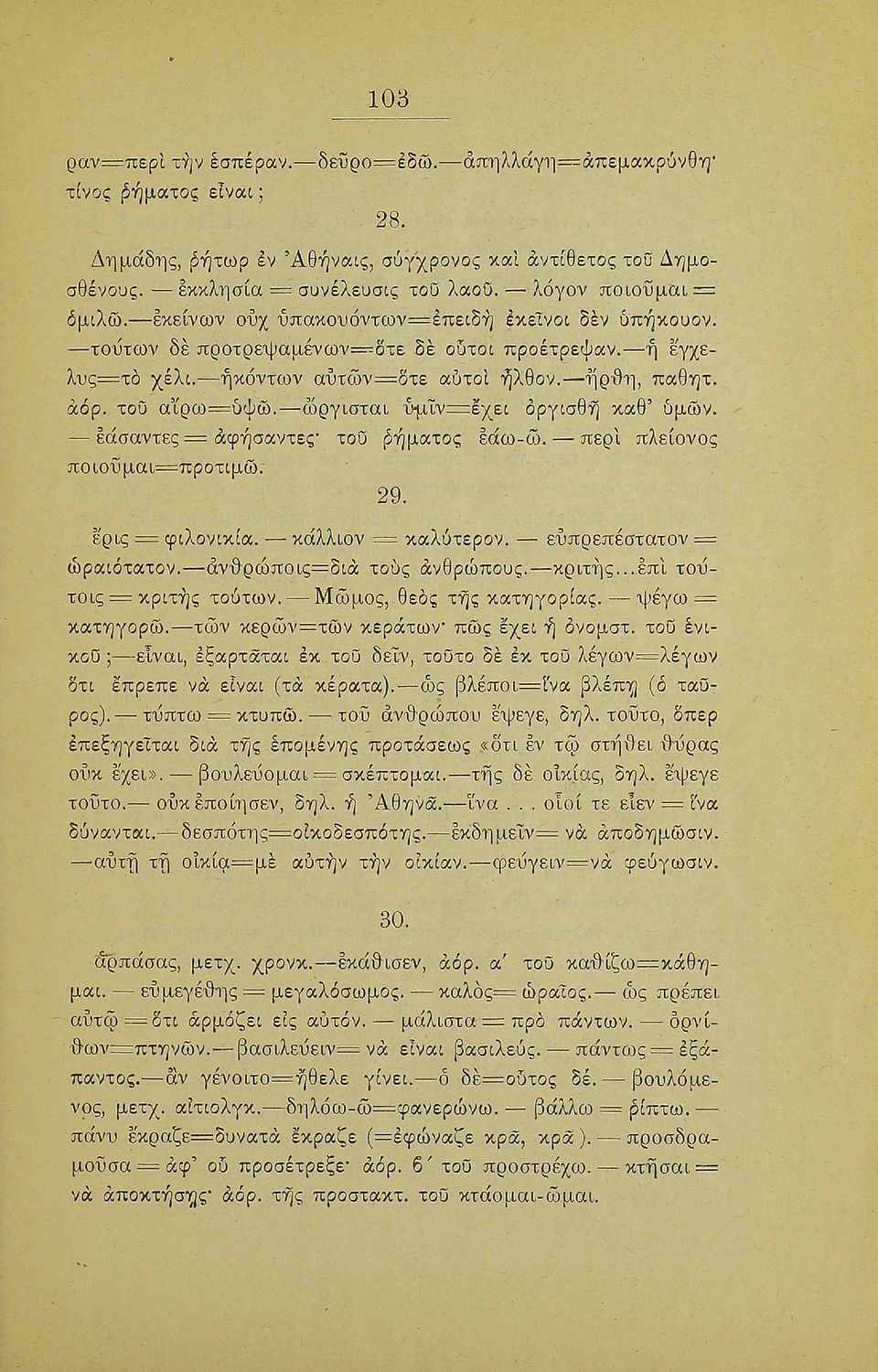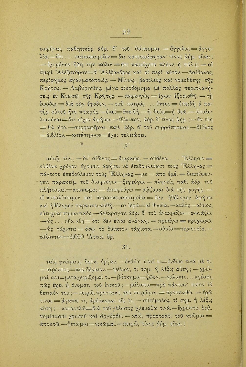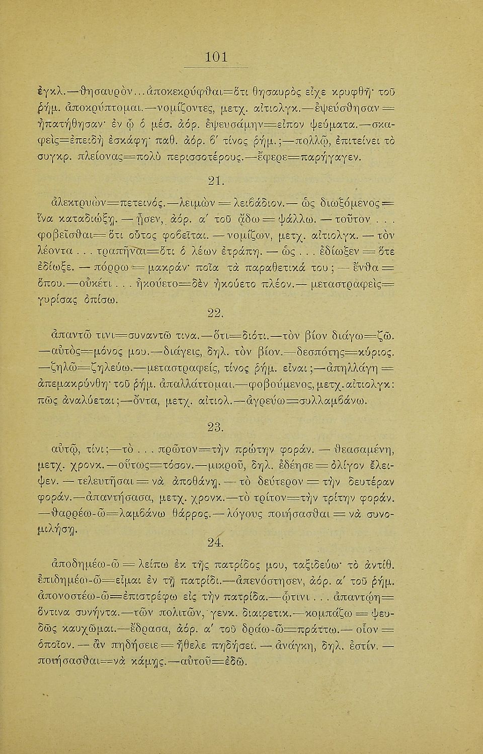 Βαθμίδα εκπαίδευσης: Δευτεροβάθμια Τάξη: Α' Ελληνικού Σχολείου Μάθημα: Αρχαία Ελληνικά Γλώσσα: Καθαρεύουσα Παρουσίαση περιεχομένου: Σχολικό εγχειρίδιο Αρχαίων Ελληνικών Α' Ελληνικού Σχολείου που περιλαμβάνει κείμενα για τη διδασκαλία της γραμματικής της αρχαίας ελληνικής, αποσπάσματα από τους μύθους του Αισώπου και την ελληνική μυθολογία και φράσεις, λεξιλογικά και γραμματικά σχόλια. |