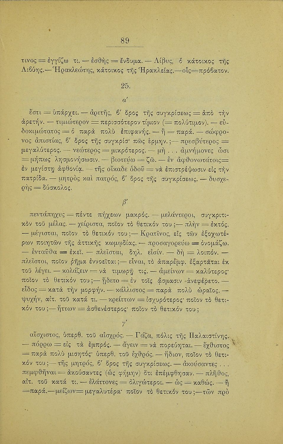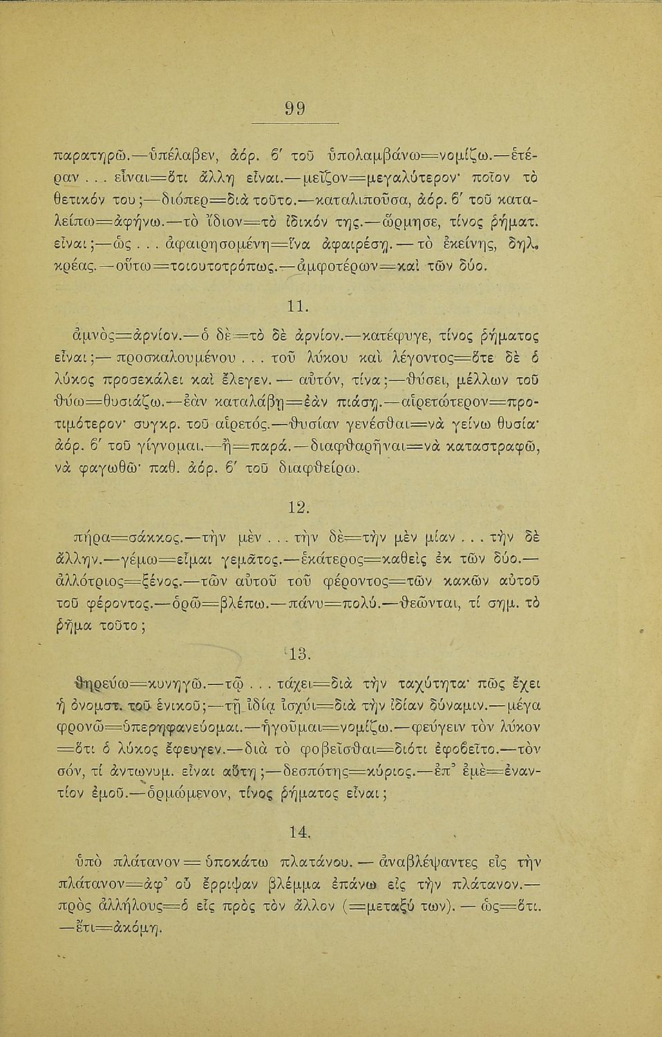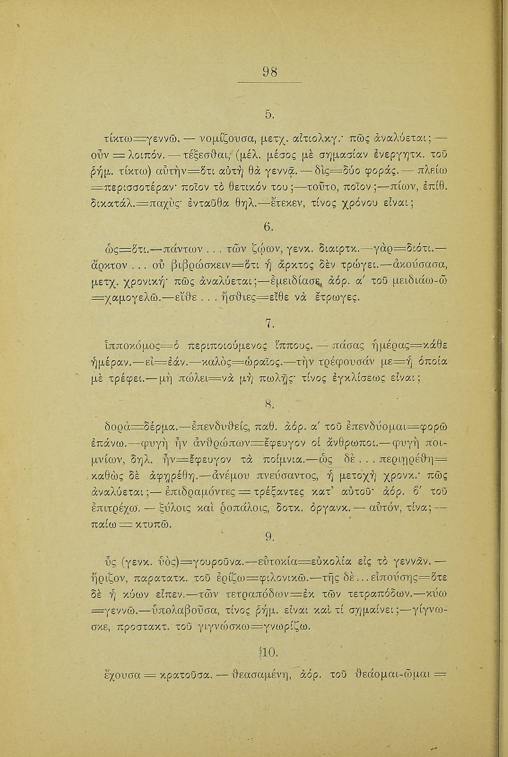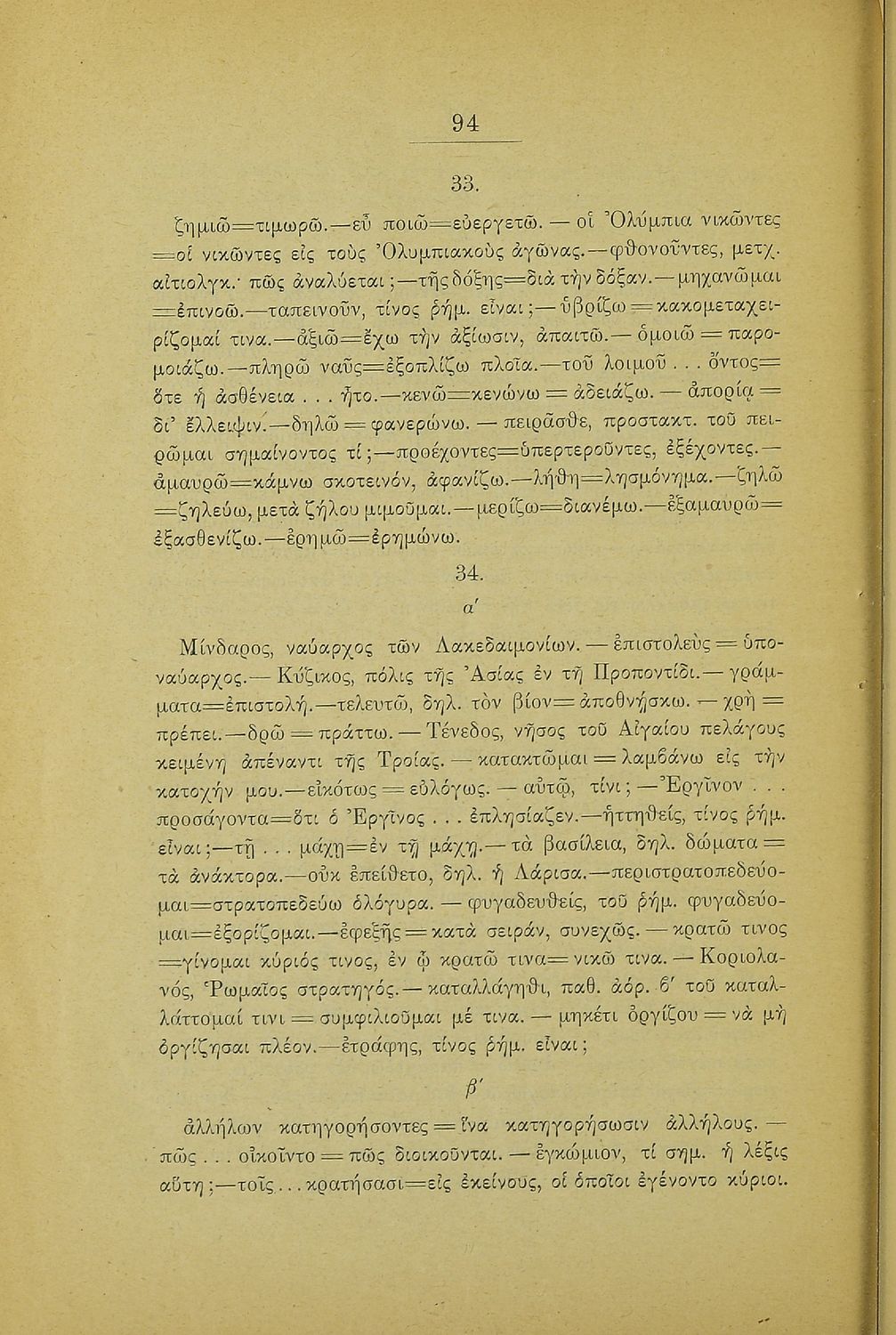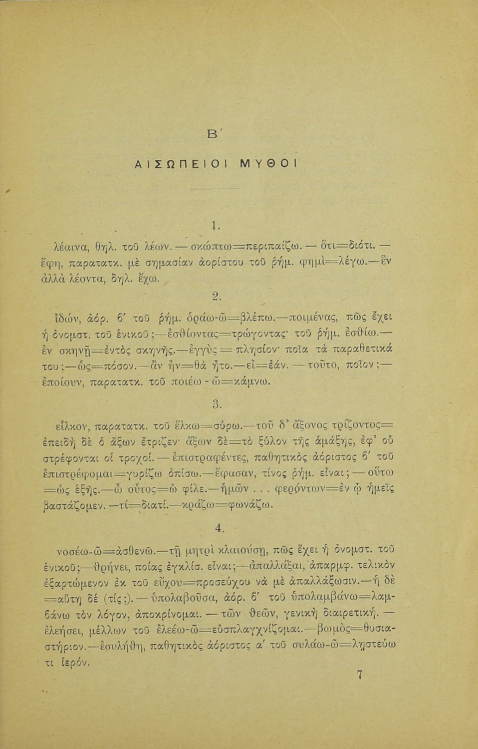 Σχολικό εγχειρίδιο Αρχαίων Ελληνικών Α' Ελληνικού Σχολείου που περιλαμβάνει κείμενα για τη διδασκαλία της γραμματικής της αρχαίας ελληνικής, αποσπάσματα από τους μύθους του Αισώπου και την ελληνική μυθολογία και φράσεις, λεξιλογικά και γραμματικά σχόλια.