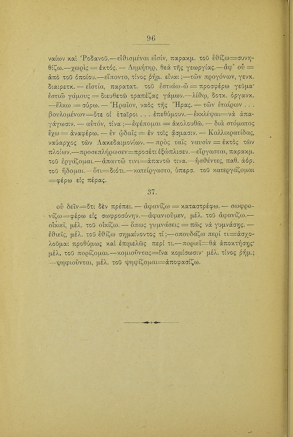 LDR 01379 2200205 4500 035 ## _a20-01854 040 ## _aΚΕΝΕΚ - Εταιρεία Σπουδών Νεοελληνικού Πολιτισμού και Παιδείας 041 ## _ael 100 ## _aΚυριάκος Κοσμάς 110 ## _a1854 245 0# _aΕλληνική χρηστομάθεια προς χρήσιν των μαθητών της Α΄ τάξεως των Ελληνικών Σχολείων 250 ## _a3η Έκδοση 260 ## _aΑθήνα _bΙωάννης Δ. Κολλάρος, Βιβλιοπωλείο της "Εστίας" _c1908 300 ## _a128 _c20 520 ## _aΣχολικό εγχειρίδιο Αρχαίων Ελληνικών Α' Ελληνικού Σχολείου που περιλαμβάνει κείμενα για τη διδασκαλία της γραμματικής της αρχαίας ελληνικής, αποσπάσματα από τους μύθους του Αισώπου και την ελληνική μυθολογία και φράσεις, λεξιλογικά και γραμματικά σχόλια. 521 ## _aΑ' Ελληνικού Σχολείου 522 ## _aΕλλάδα 546 ## _aΚαθαρεύουσα 563 ## _aΜαλακό Εξώφυλλο 650 #4 _aΓραμματική _aΕλληνική μυθολογία _aΜύθοι Αισώπου
