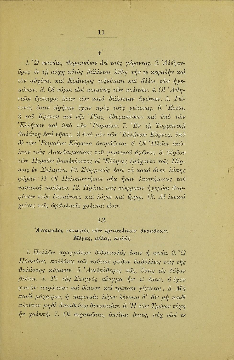 Τάξη:  Γ' Ελληνικού Σχολείου / Γ' Αστικού Σχολείου Θηλέων