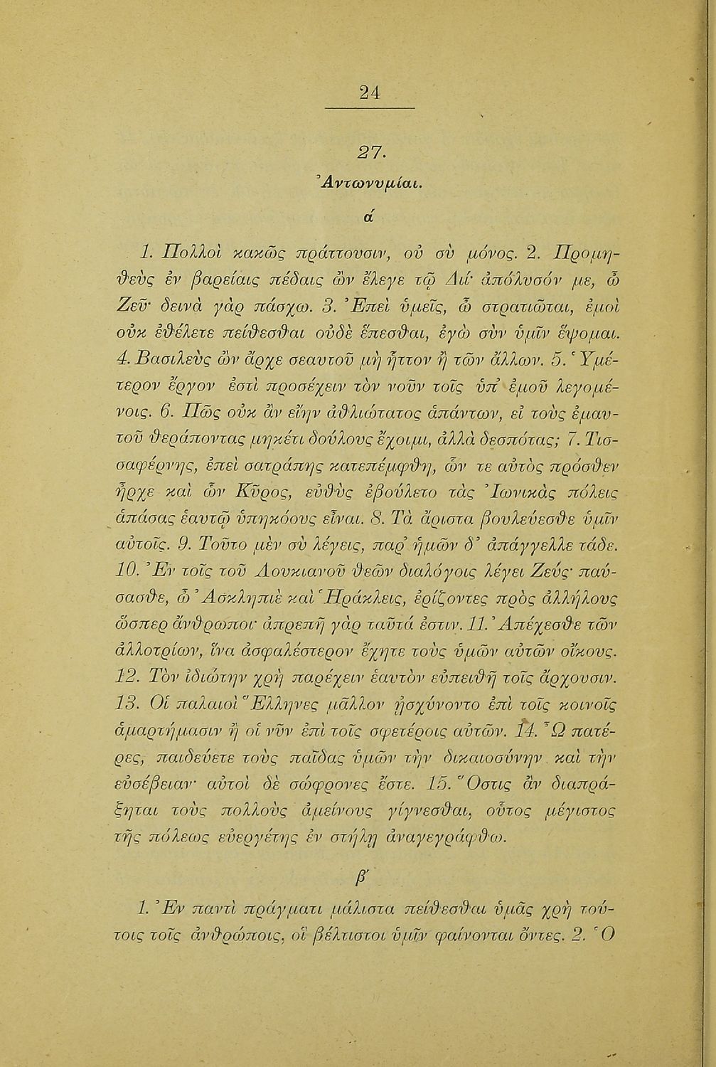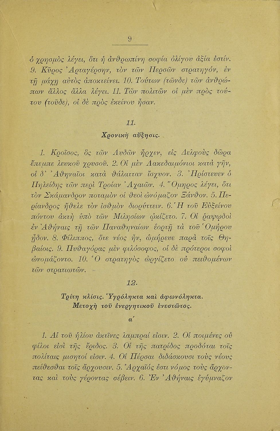 Σχολικό εγχειρίδιο Αρχαίων Ελληνικών Γ' Ελληνικού Σχολείου και Γ΄ Αστικού Σχολείου Θηλέων που περιλαμβάνει αποσπάσματα τα έργα του Ξενοφώντα Κύρου Ανάβαση και Ελληνικά και ερμηνευτικές και λεξιλογικές ...