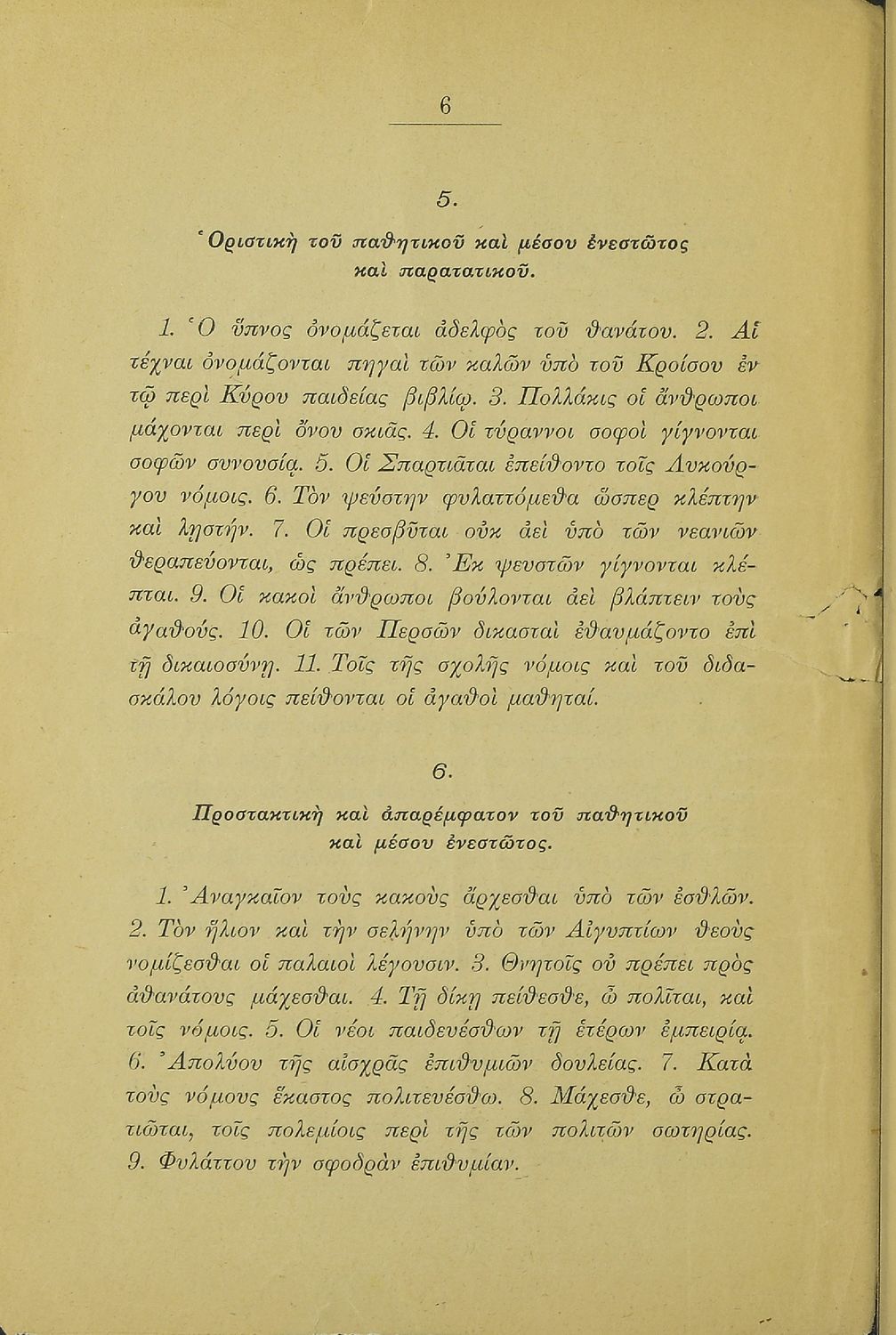 Σχολικό εγχειρίδιο Αρχαίων Ελληνικών για τις ΣΤ΄ Δημοτικού και Α' Ελληνικού Σχολείου που αναλύει τα συντακτικά και γραμματικά φαινόμενα της αρχαίας ελληνικής και περιλαμβάνει κείμενα από την ελληνική ...