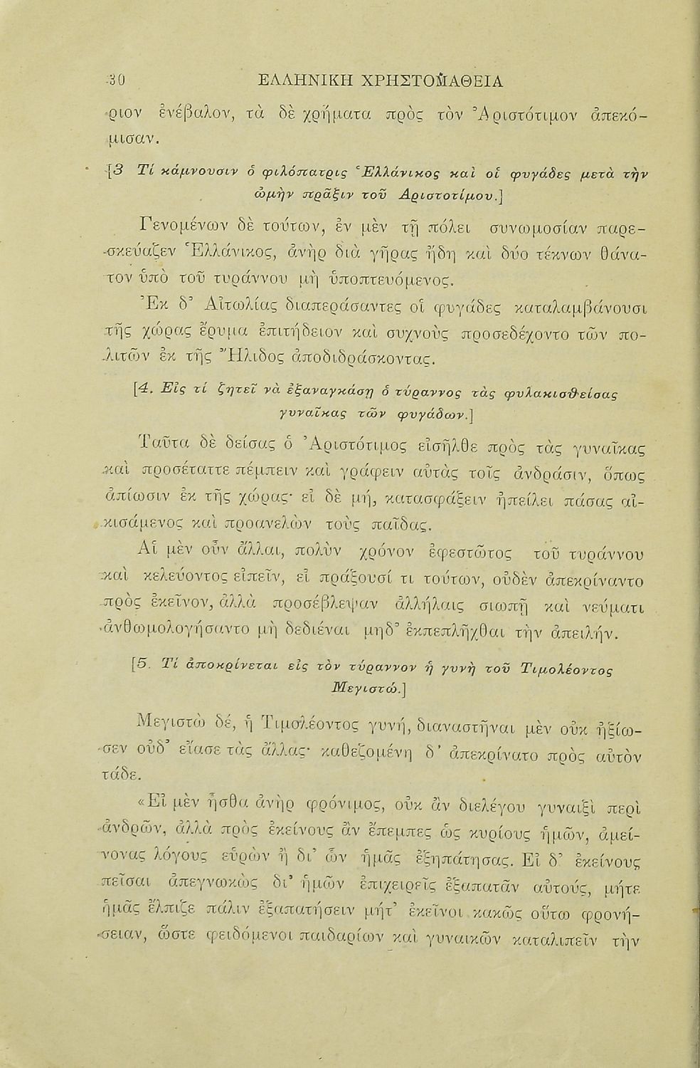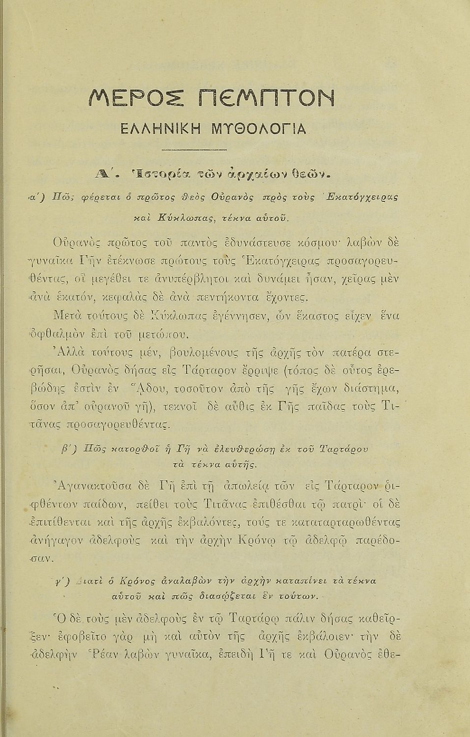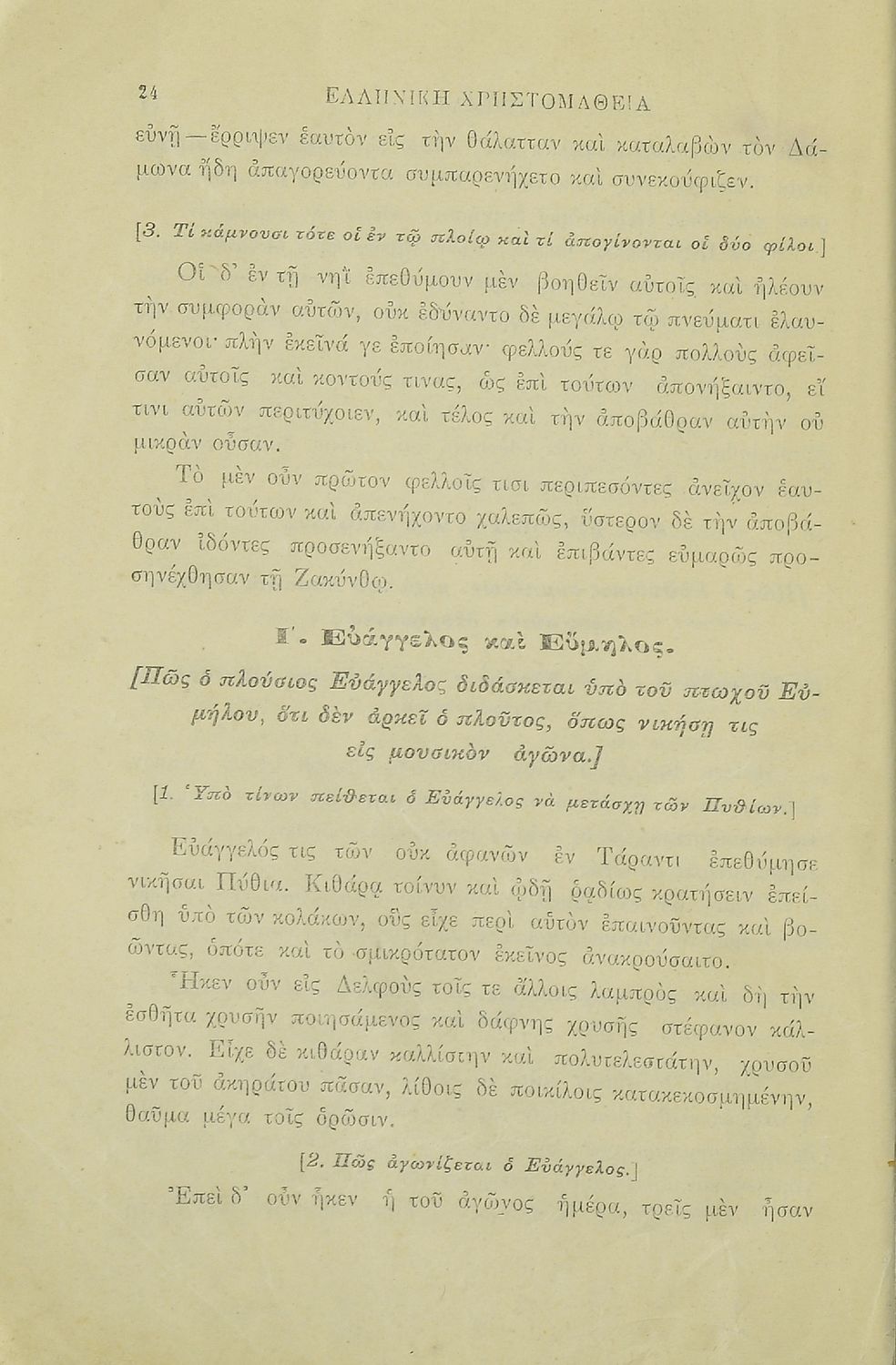 Βαθμίδα εκπαίδευσης: Πρωτοβάθμια, Δευτεροβάθμια Τάξη: Ε' Δημοτικού / Α' Ελληνικού Σχολείου Μάθημα: Αρχαία Ελληνικά Γλώσσα: Καθαρεύουσα Παρουσίαση περιεχομένου: Σχολικό εγχειρίδιο Αρχαίων Ελληνικών για τις Ε΄ Δημοτικού και Α' Ελληνικού Σχολείου που περιλαμβάνει σύντομα διηγήματα εμπνευσμένα από τους μύθους του Αισώπου, περιγραφές ελληνικών πόλεων, επιστολές και ιστορίες από την ελληνική μυθολογία. Περιέχει ερμηνευτικές σημειώσεις, πίνακα κυριοτέρων ονομάτων και ηθικά πορίσματα. |