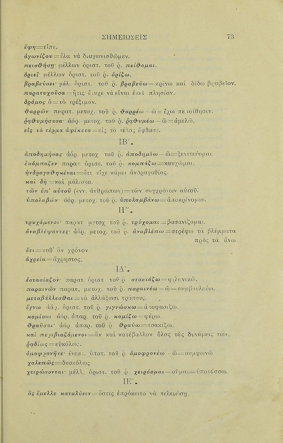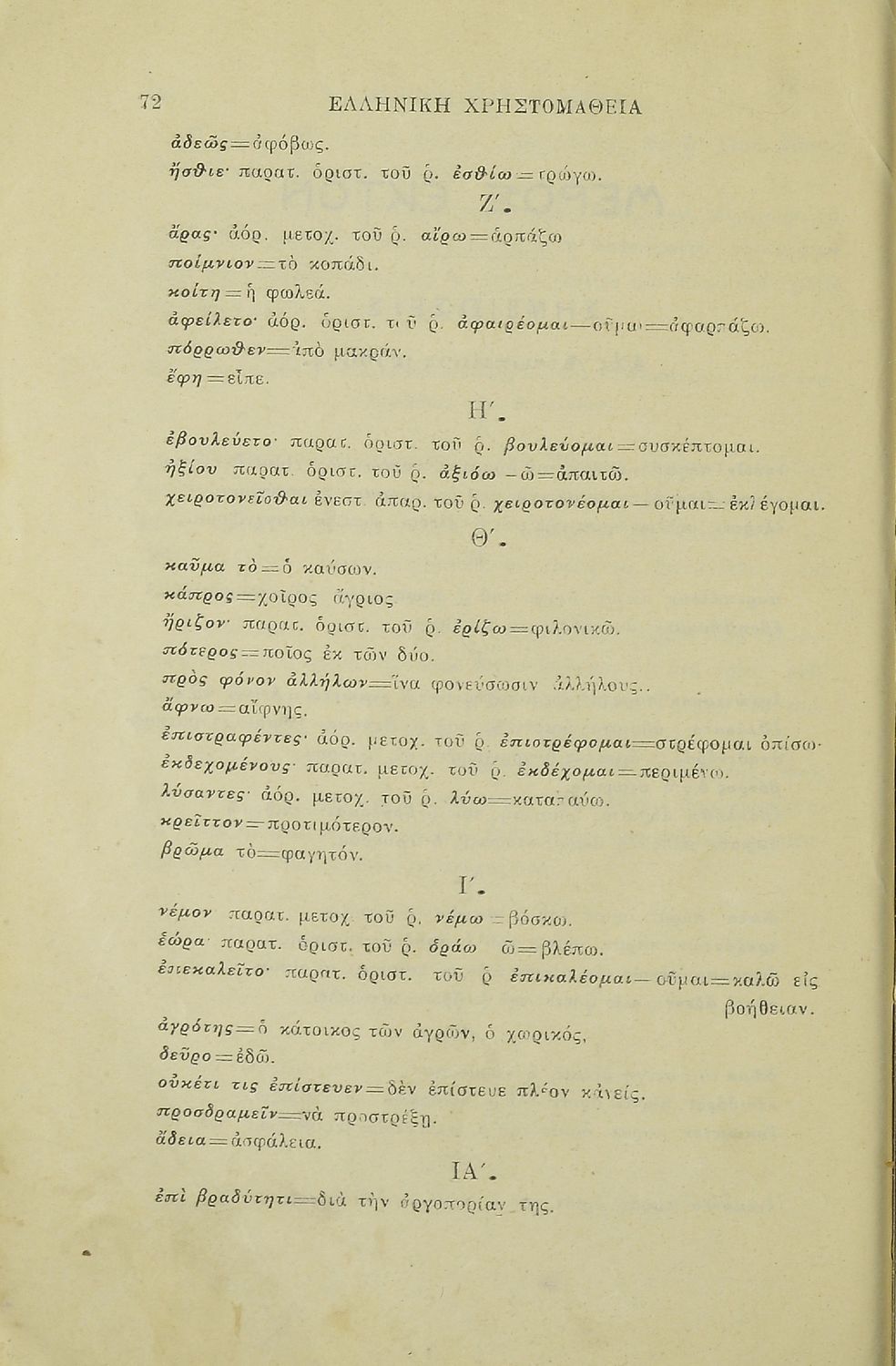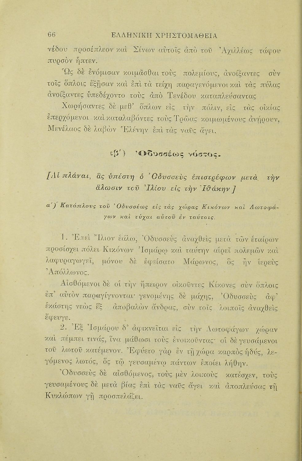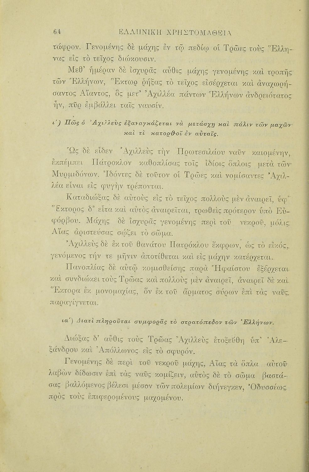 Σχολικό εγχειρίδιο Αρχαίων Ελληνικών για τις Ε΄ Δημοτικού και Α' Ελληνικού Σχολείου που περιλαμβάνει σύντομα διηγήματα εμπνευσμένα από τους μύθους του Αισώπου, περιγραφές ελληνικών πόλεων, επιστολές και ιστορίες από την ελληνική μυθολογία. Περιέχει ερμηνευτικές σημειώσεις, πίνακα κυριοτέρων ονομάτων και ηθικά πορίσματα.