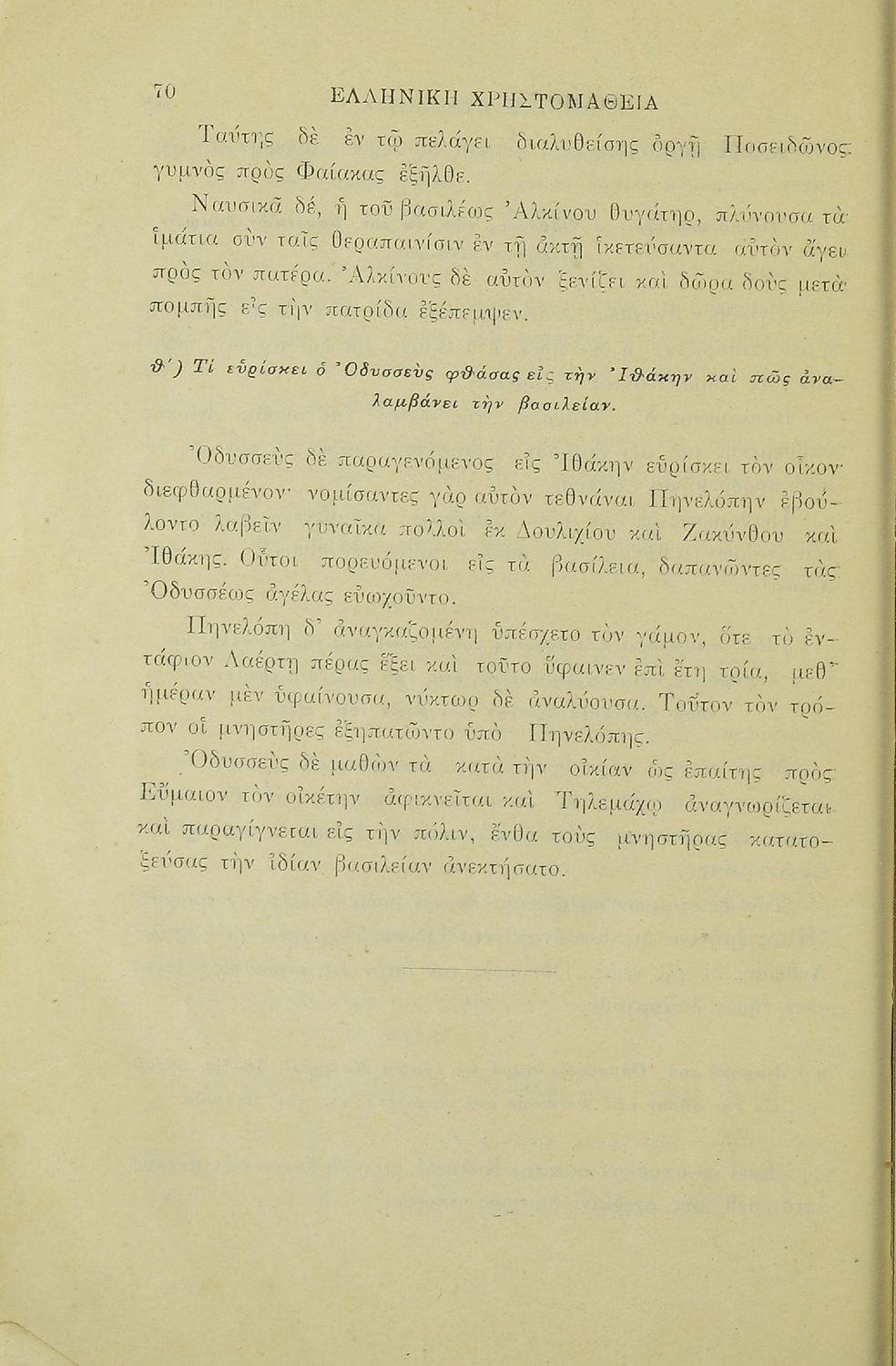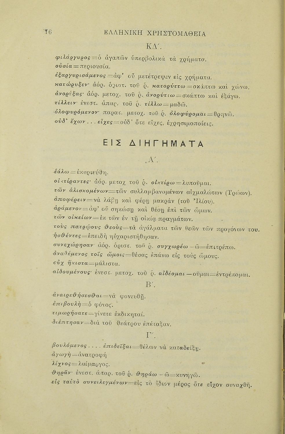 Βαθμίδα εκπαίδευσης: Πρωτοβάθμια, Δευτεροβάθμια Τάξη: Ε' Δημοτικού / Α' Ελληνικού Σχολείου Μάθημα: Αρχαία Ελληνικά Γλώσσα: Καθαρεύουσα Παρουσίαση περιεχομένου: Σχολικό εγχειρίδιο Αρχαίων Ελληνικών για τις Ε΄ Δημοτικού και Α' Ελληνικού Σχολείου που περιλαμβάνει σύντομα διηγήματα εμπνευσμένα από τους μύθους του Αισώπου, περιγραφές ελληνικών πόλεων, επιστολές και ιστορίες από την ελληνική μυθολογία. Περιέχει ερμηνευτικές σημειώσεις, πίνακα κυριοτέρων ονομάτων και ηθικά πορίσματα. |