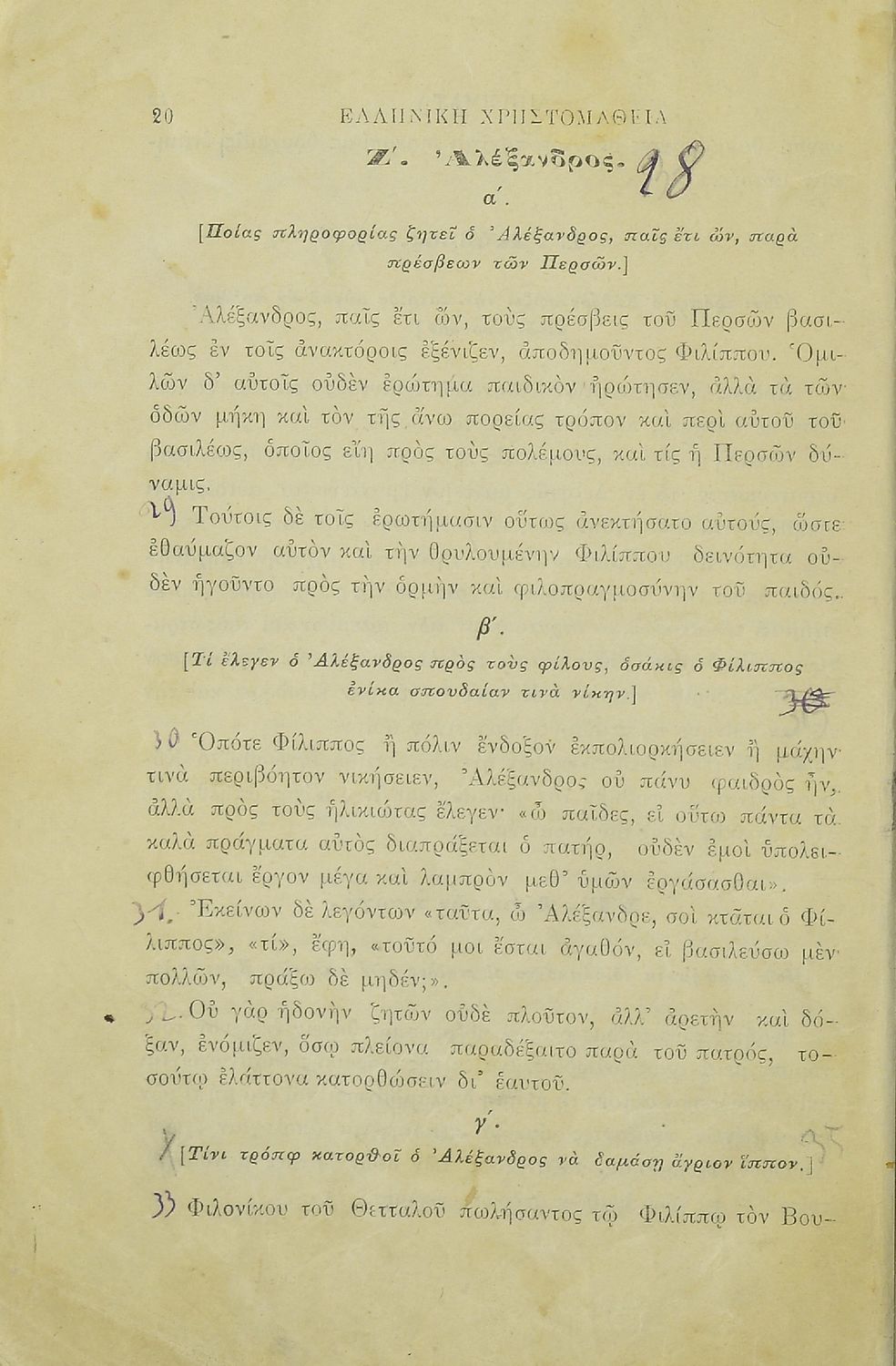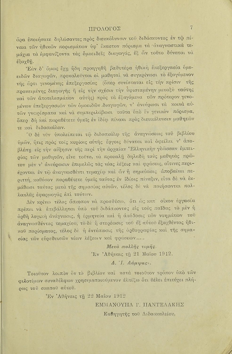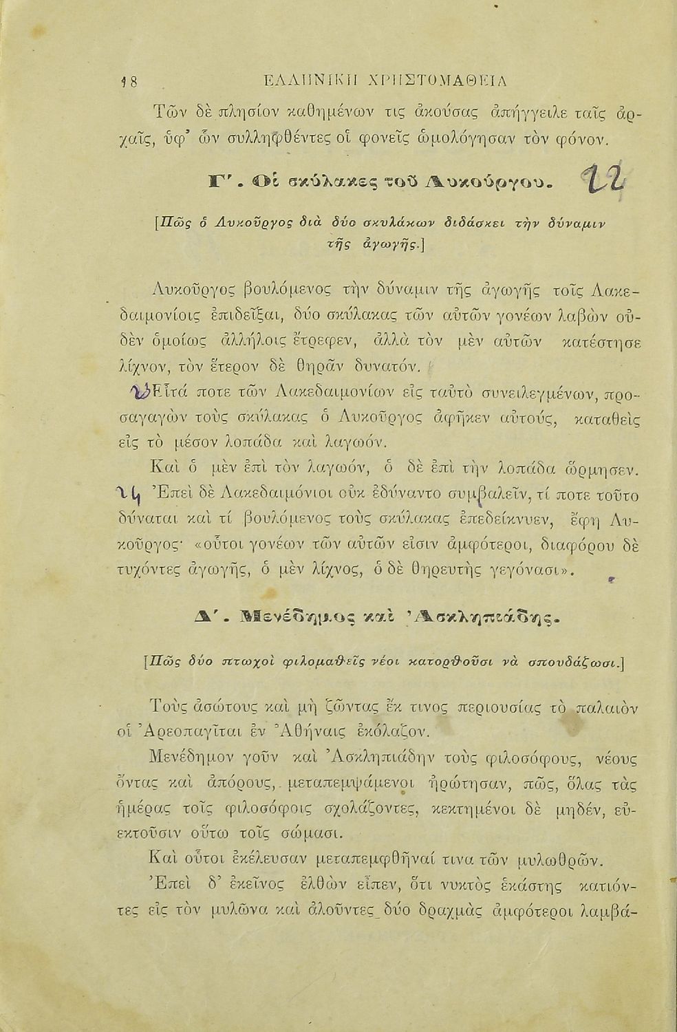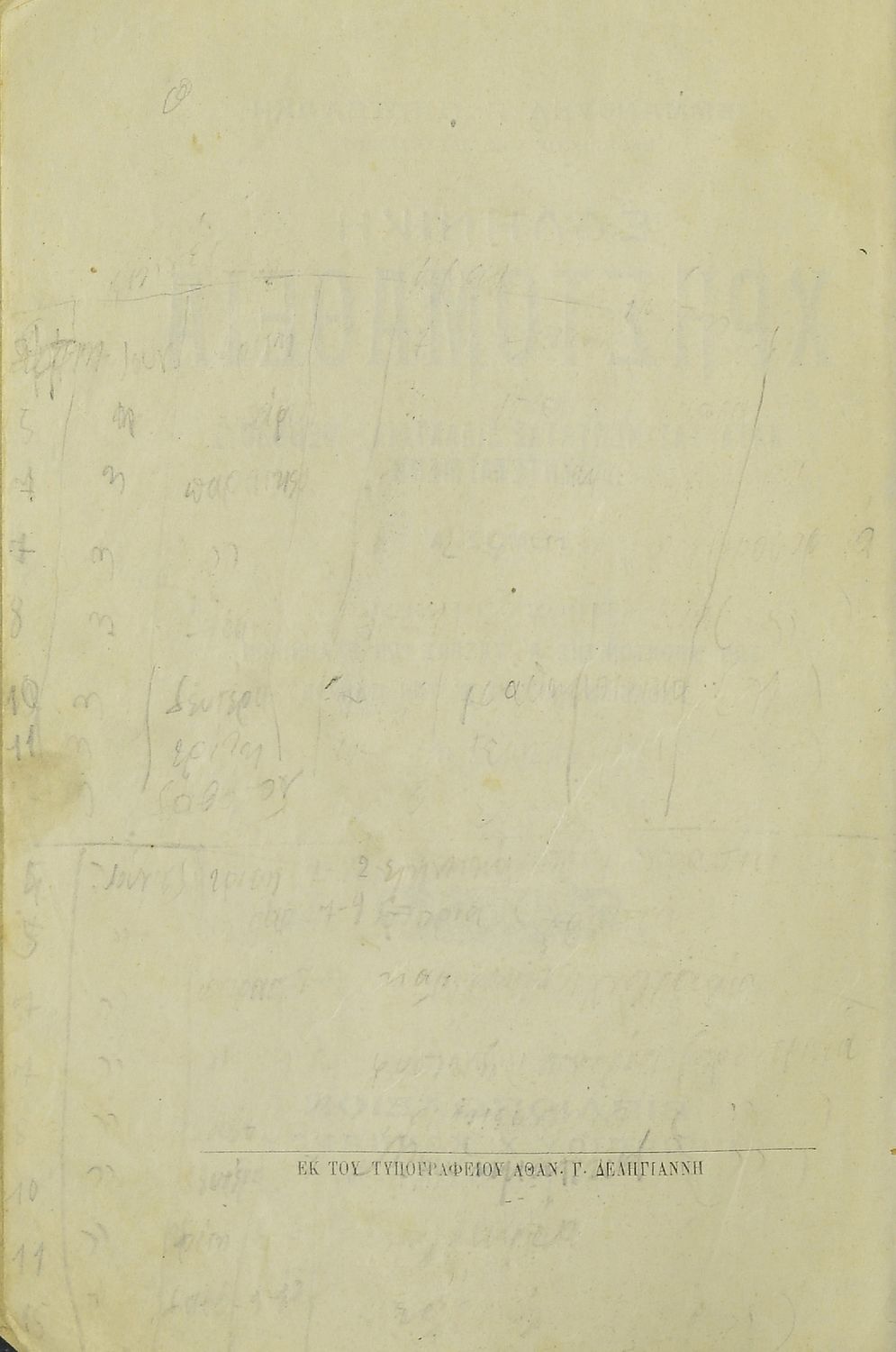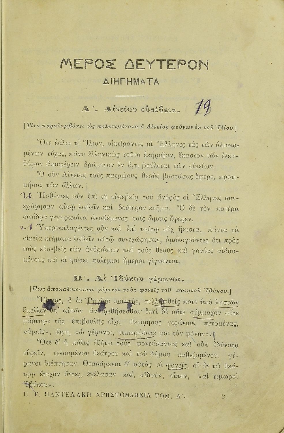Τίτλος: Ελληνική χρηστομάθεια κατά τας νεώτατας διδακτικάς μεθόδους συντεταγμένη τόμος Α΄, προς χρήσιν της Α΄ τάξεως των Ελληνικών και της Ε΄ των Πλήρων