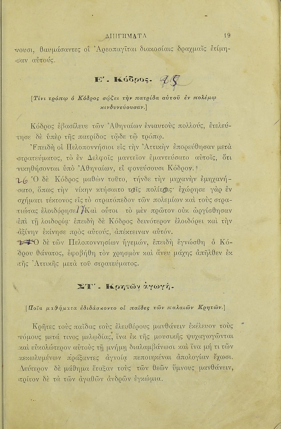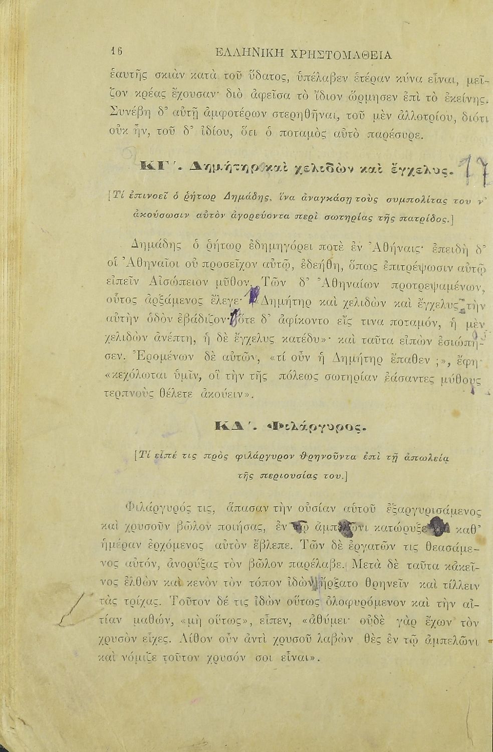 Ελληνική χρηστομάθεια κατά τας νεώτατας διδακτικάς μεθόδους συντεταγμένη τόμος Α΄, προς χρήσιν της Α΄ τάξεως των Ελληνικών και της Ε΄ των Πλήρων