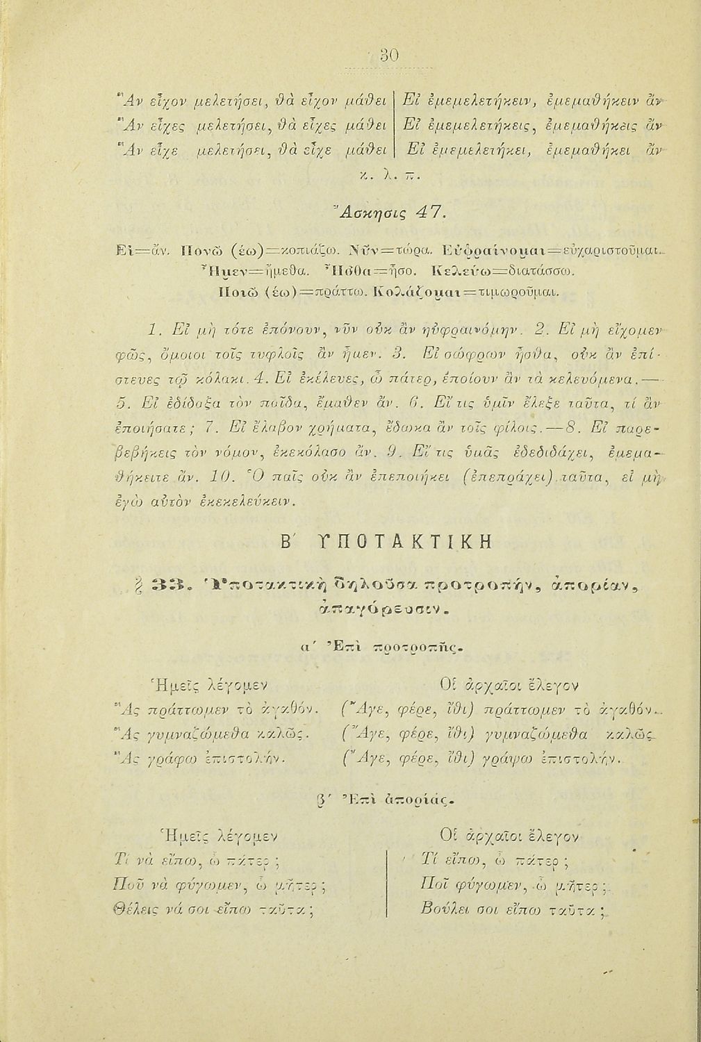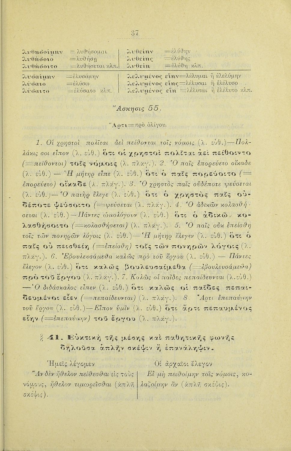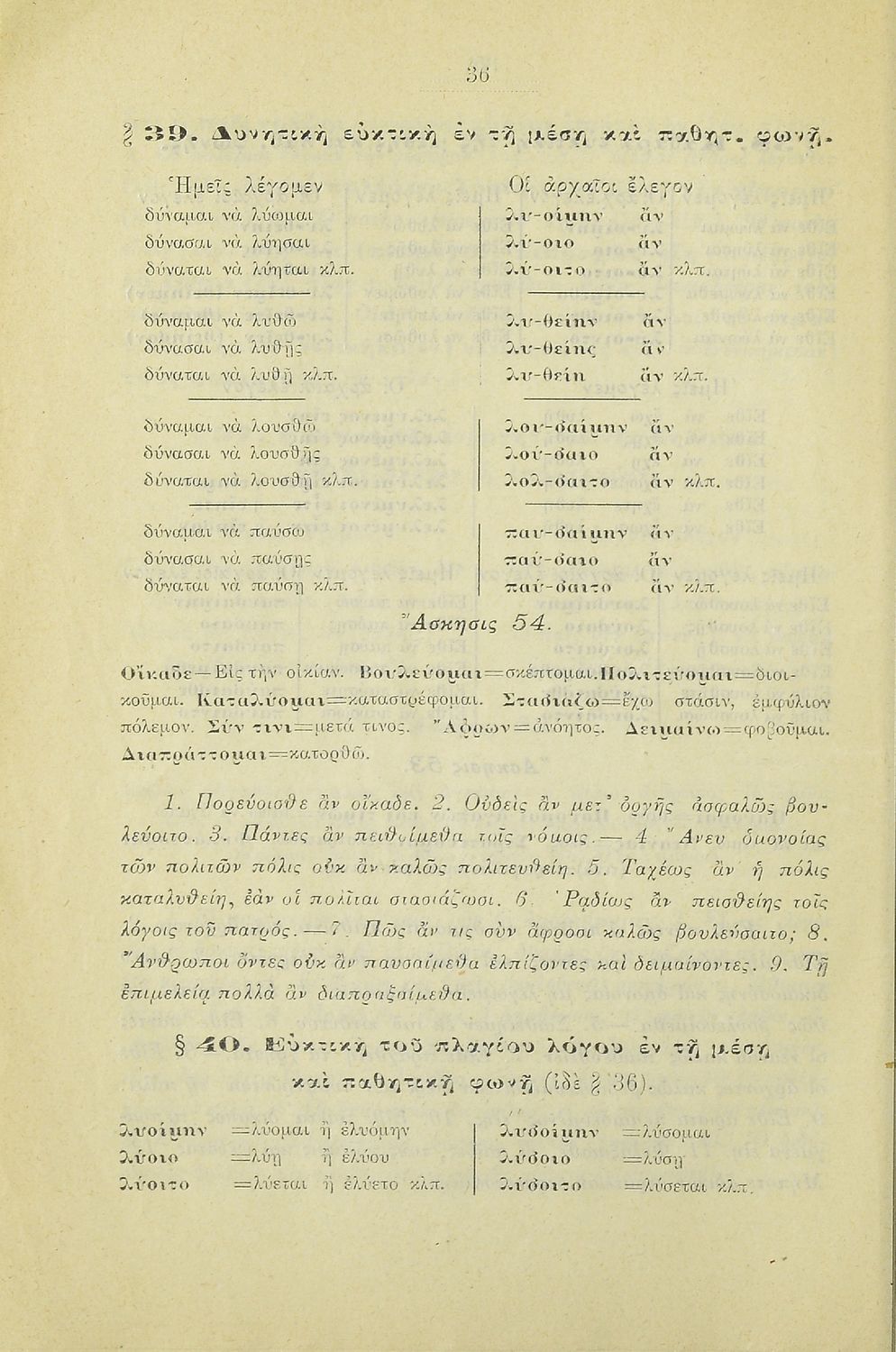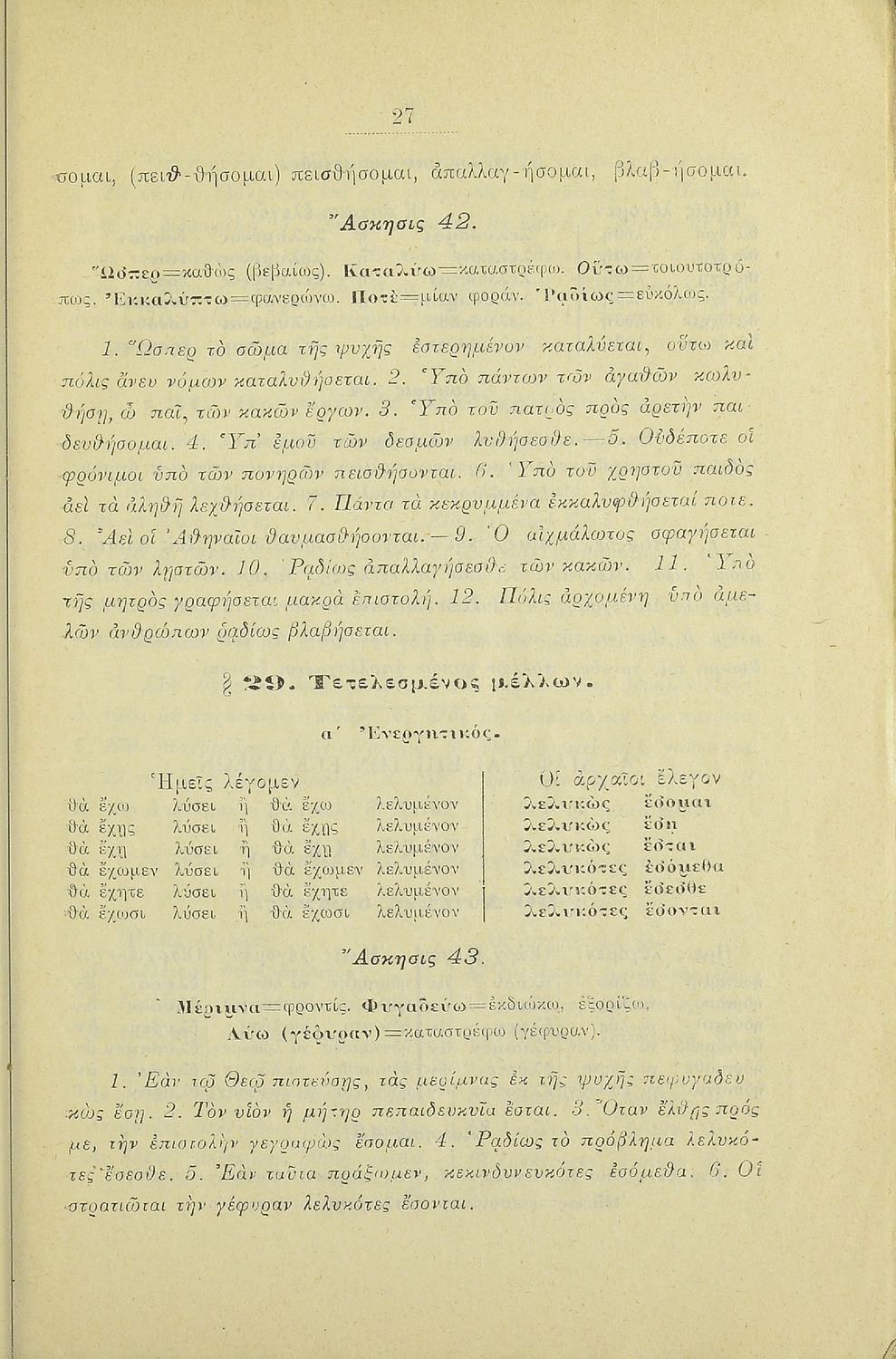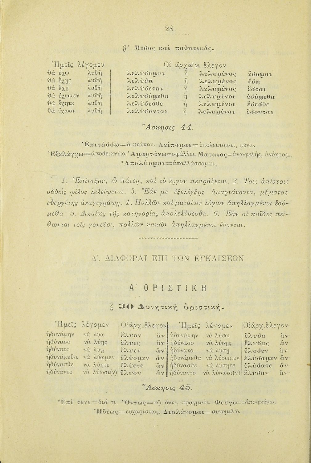 Σχολικό εγχειρίδιο Αρχαίων Ελληνικών για τις ΣΤ΄ Δημοτικού και Α' Ελληνικού Σχολείου που αναλύει τα συντακτικά και γραμματικά φαινόμενα της αρχαίας ελληνικής και περιλαμβάνει κείμενα από την ελληνική μυθολογία, ηθικά διδάγματα και παραινέσεις, και ερμηνευτικές σημειώσεις.