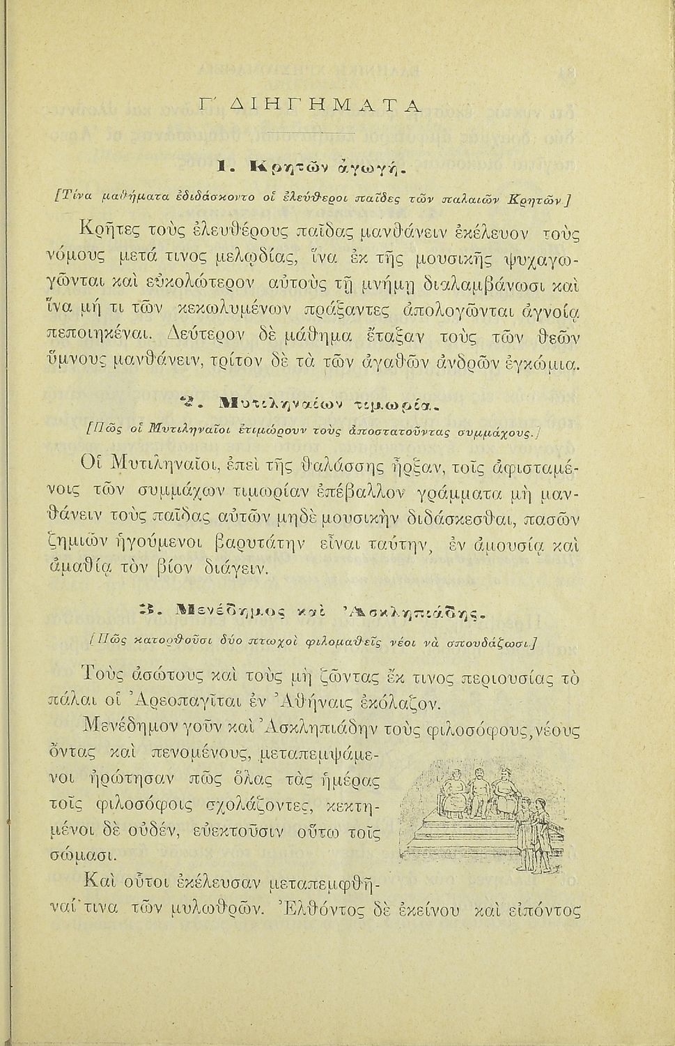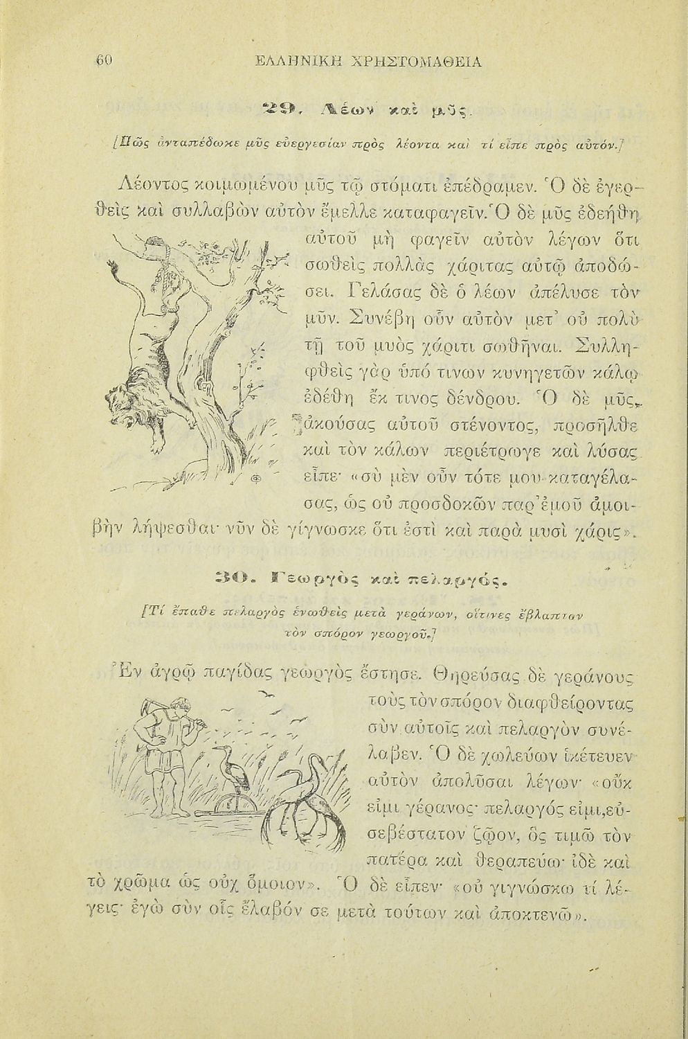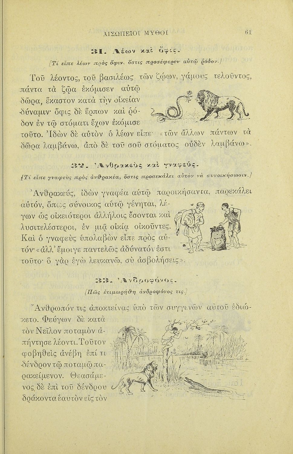 Σχολικό εγχειρίδιο Αρχαίων Ελληνικών για τις Ε΄ Δημοτικού και Α' Ελληνικού Σχολείου που περιλαμβάνει σύντομα διηγήματα εμπνευσμένα από τους μύθους του Αισώπου, περιγραφές ελληνικών πόλεων, επιστολές και ...