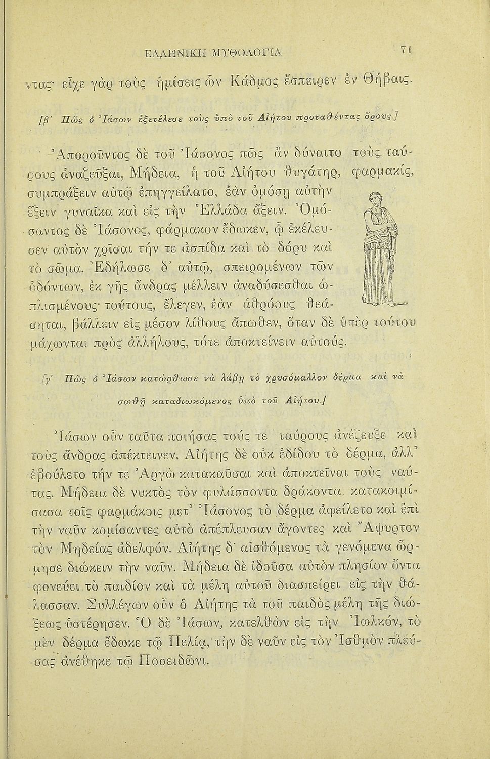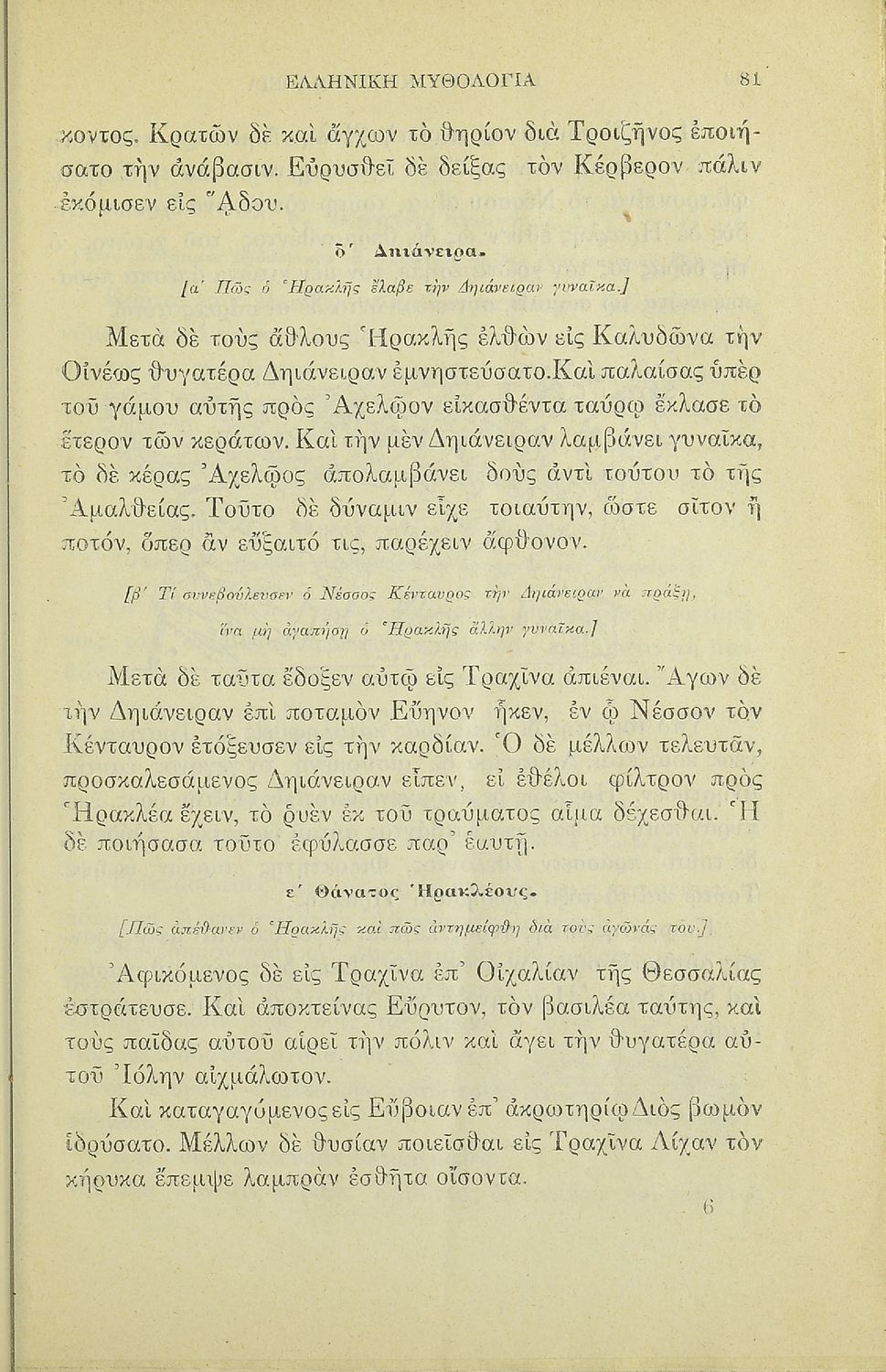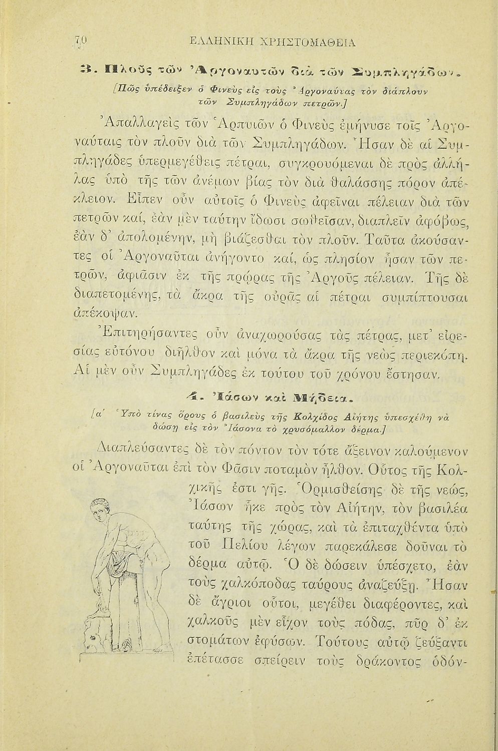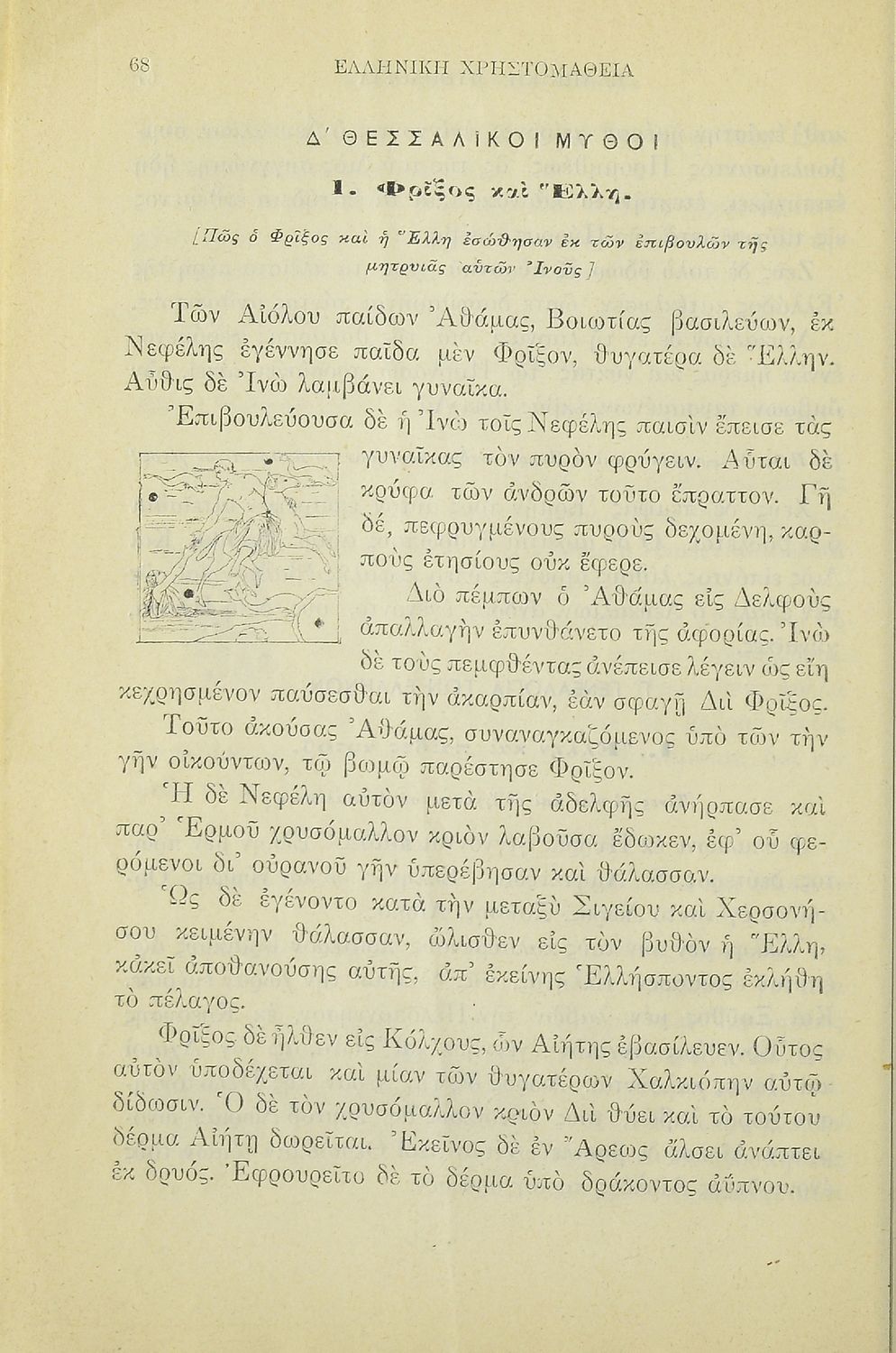 Σχολικό εγχειρίδιο Αρχαίων Ελληνικών για τις ΣΤ΄ Δημοτικού και Α' Ελληνικού Σχολείου που αναλύει τα συντακτικά και γραμματικά φαινόμενα της αρχαίας ελληνικής και περιλαμβάνει κείμενα από την ελληνική μυθολογία, ηθικά διδάγματα και παραινέσεις, και ερμηνευτικές σημειώσεις.