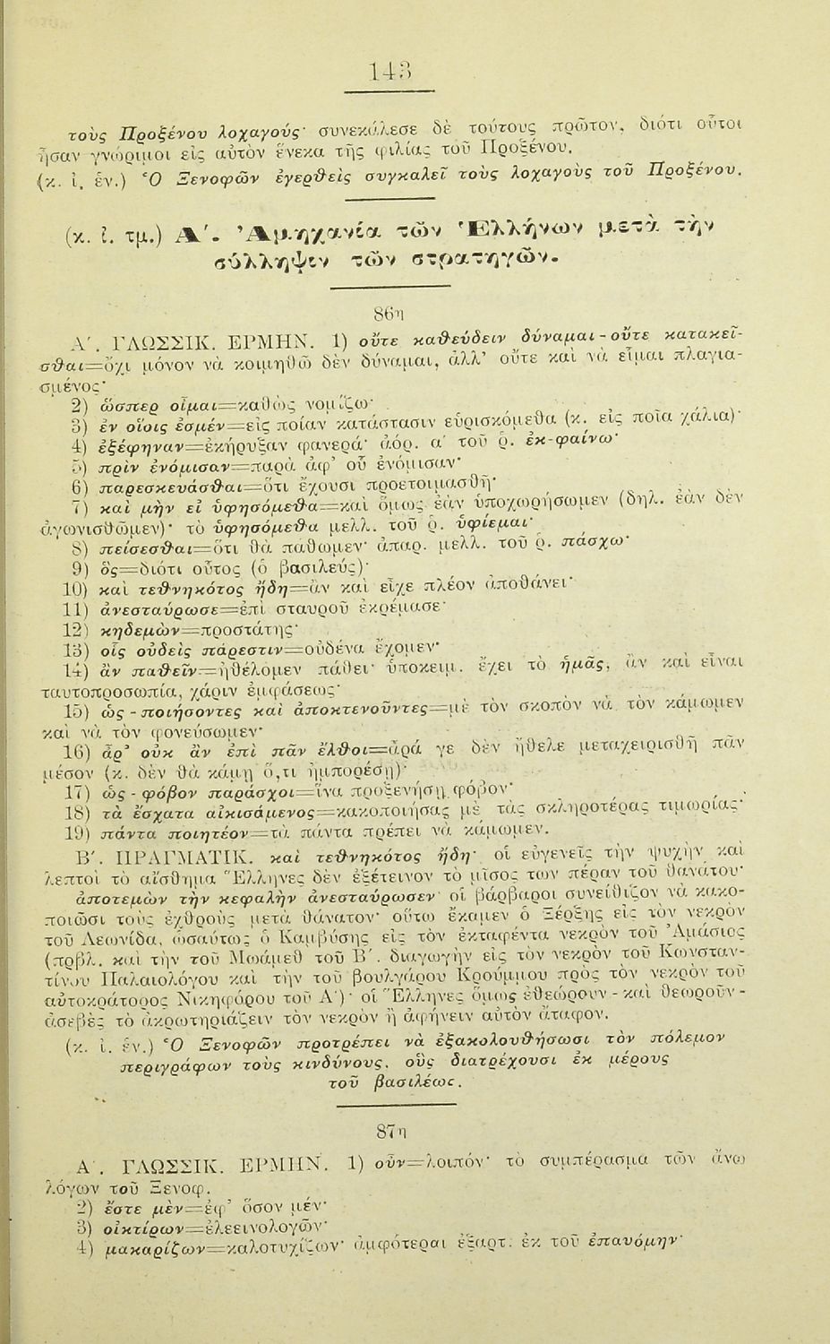 Ξενοφών, Νικολ. Σ. Γκινόπουλος (σχόλια)