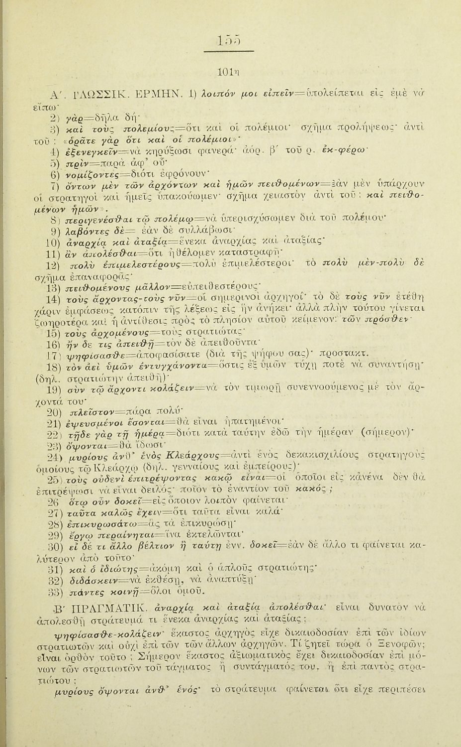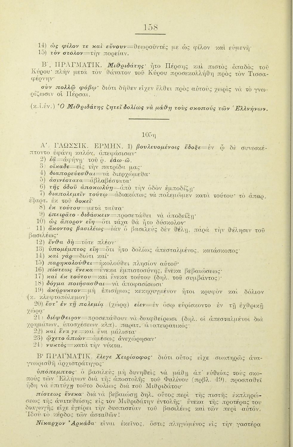 Σχολικό εγχειρίδιο Αρχαίων Ελληνικών για τα Ελληνικά Σχολεία, Γυμνάσια και Παρθεναγωγεία που περιλαμβάνει αποσπάσματα από το έργο του Ξενοφώντα Κύρου Ανάβασις, και λεξικογραφικές παρατηρήσεις.