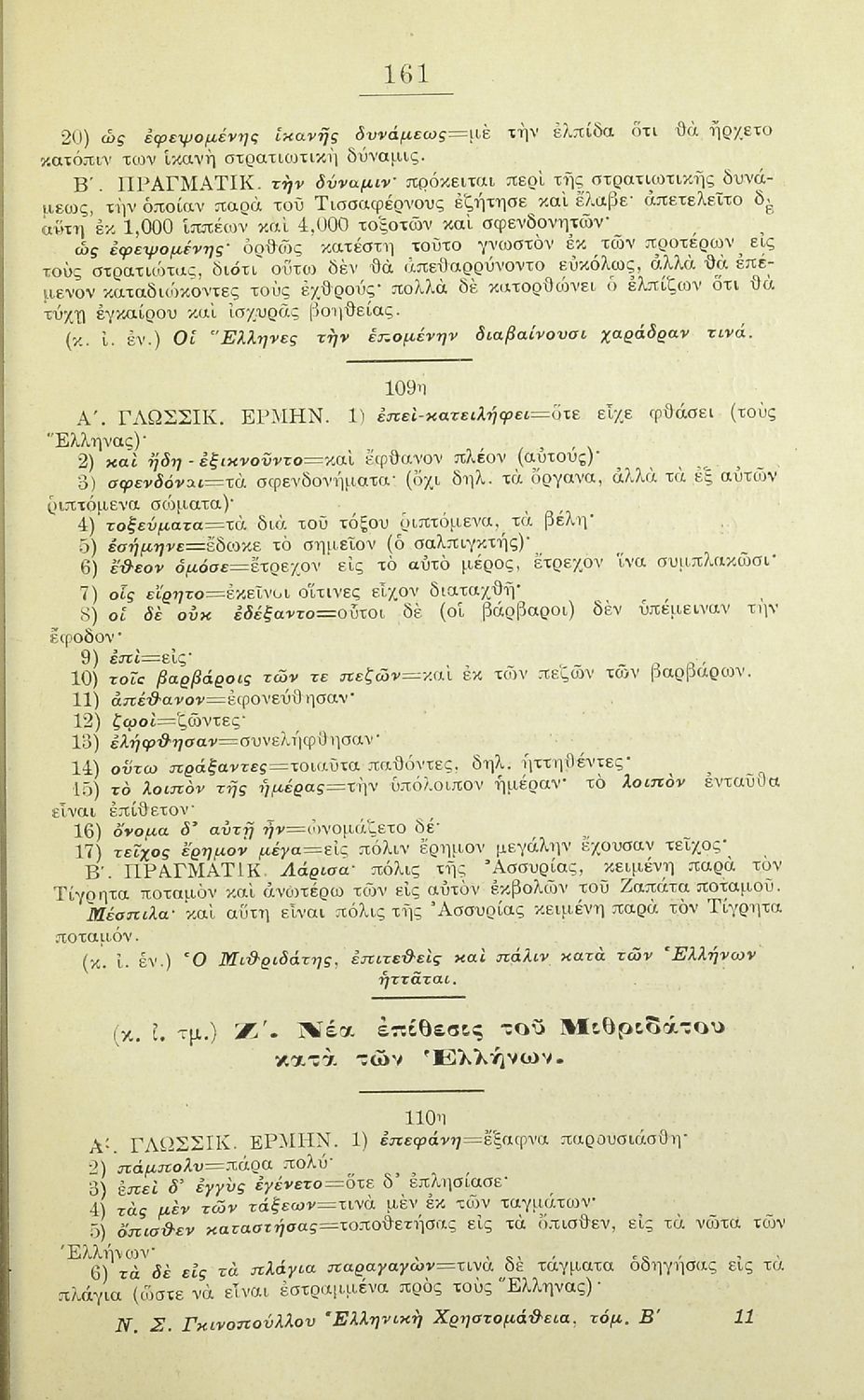Ξενοφών, Νικολ. Σ. Γκινόπουλος (σχόλια)