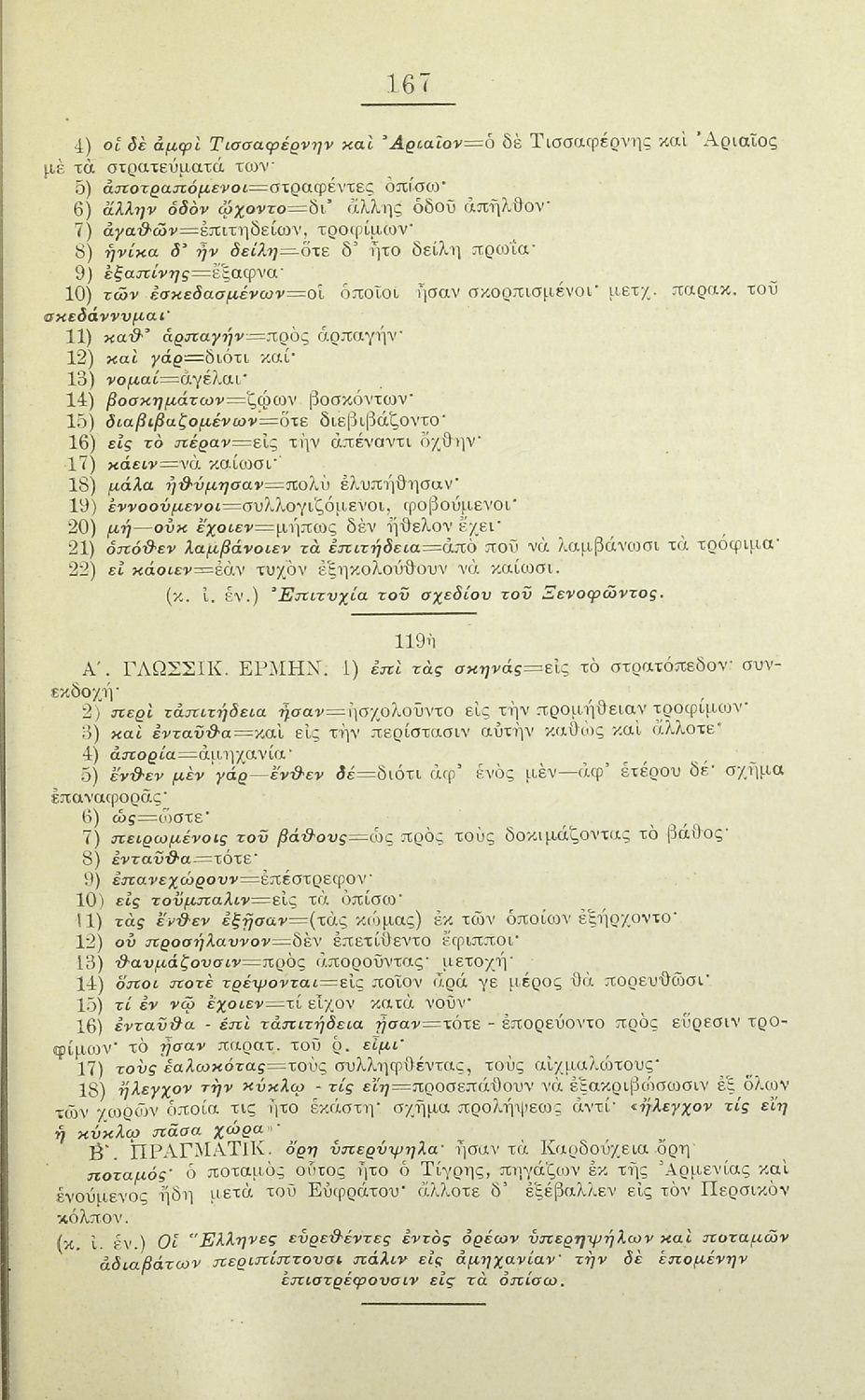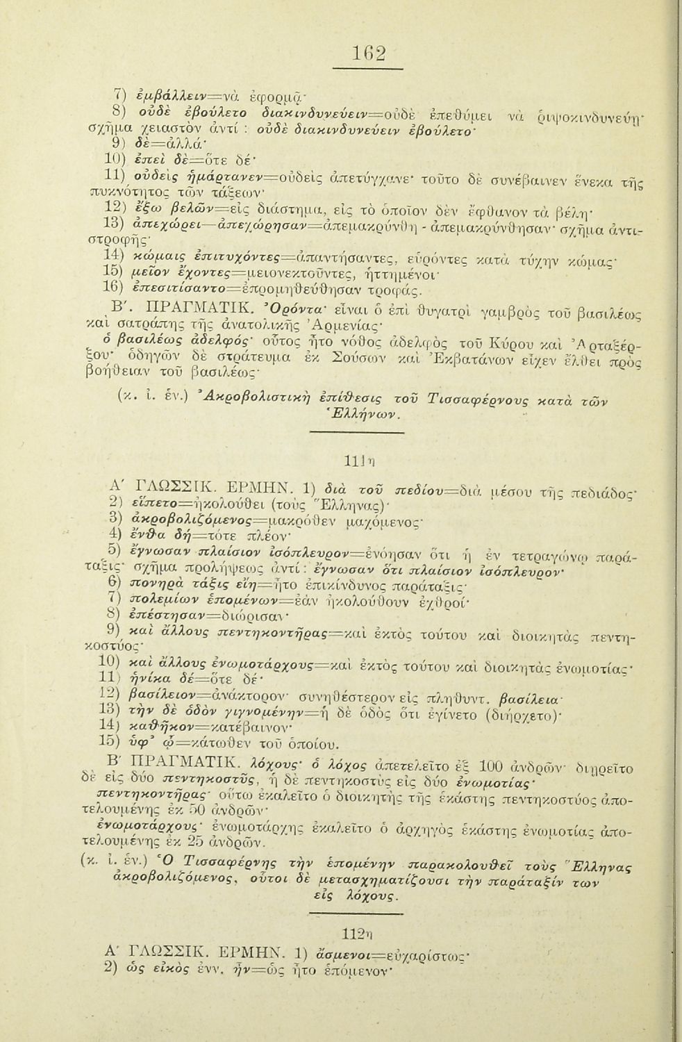 Σχολικό εγχειρίδιο Αρχαίων Ελληνικών για τα Ελληνικά Σχολεία, Γυμνάσια και Παρθεναγωγεία που περιλαμβάνει αποσπάσματα από το έργο του Ξενοφώντα Κύρου Ανάβασις, και λεξικογραφικές παρατηρήσεις.