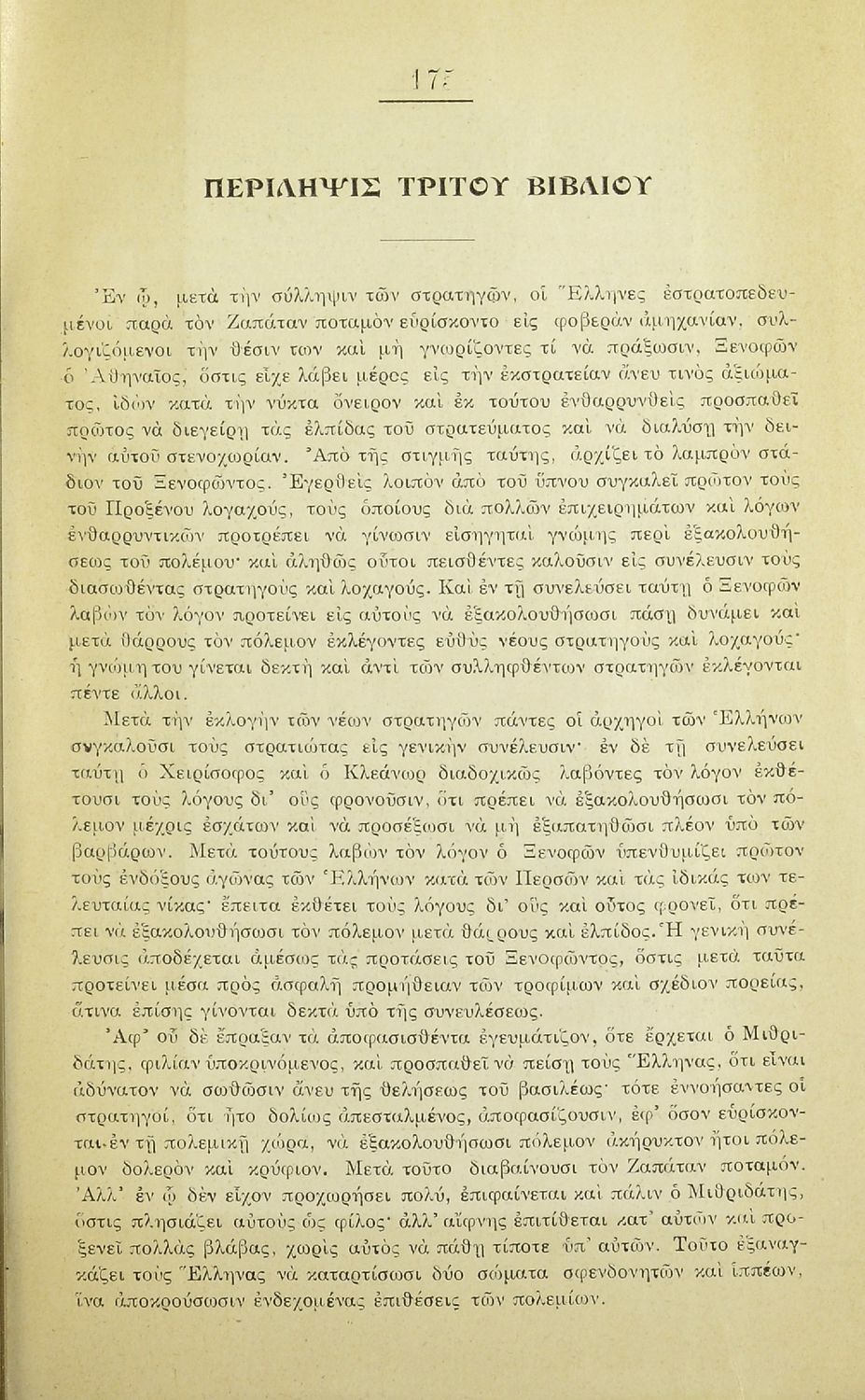 Ελληνική χρηστομάθεια τόμος Β΄, Ξενοφώντος Κύρου Αναβάσεως τα τρία πρώτα βιβλία προς χρήσιν των μαθητών της Β΄ τάξεως των Ελληνικών Σχολείων