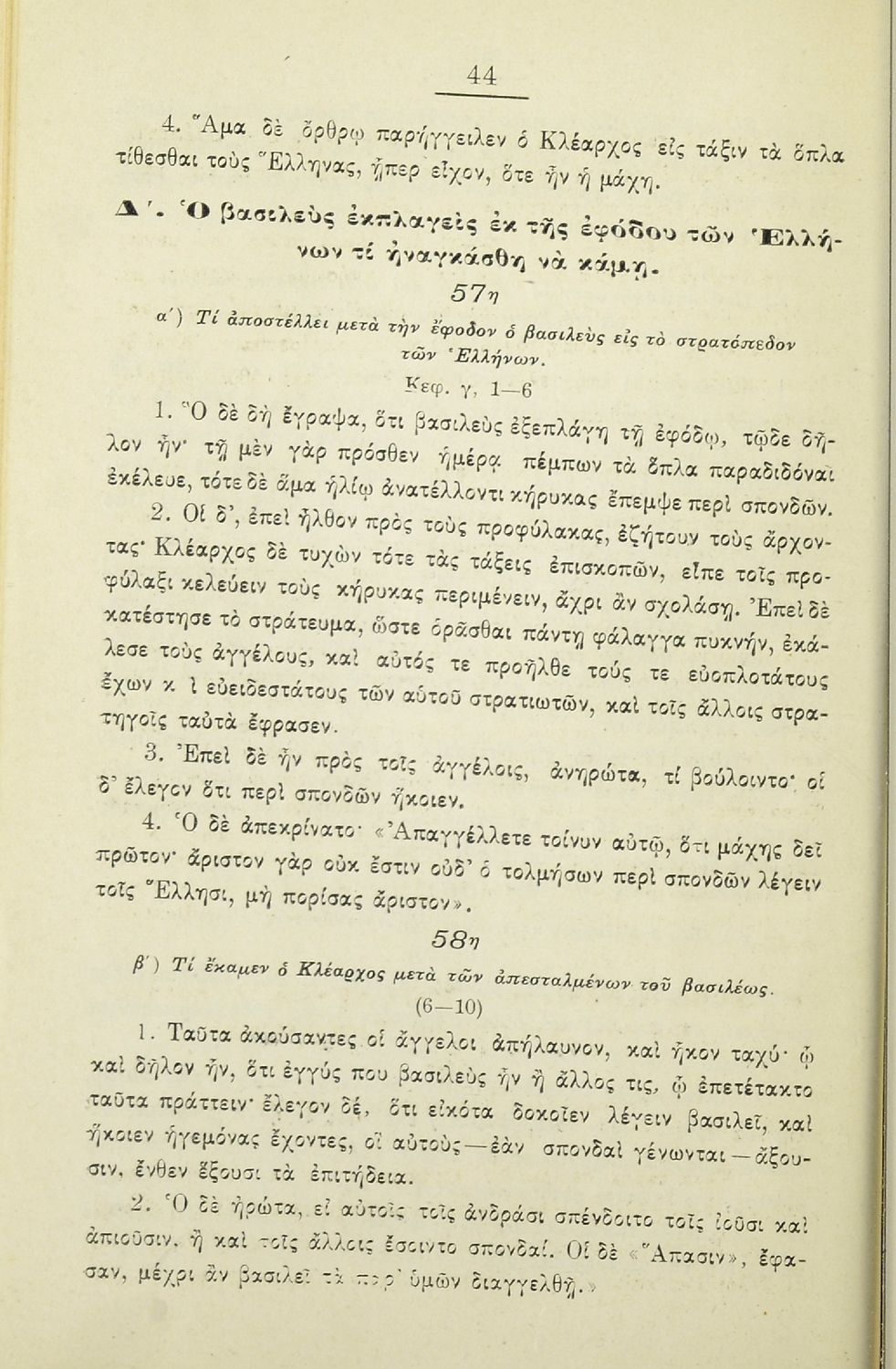 Σχολικό εγχειρίδιο Αρχαίων Ελληνικών για τα Ελληνικά Σχολεία, Γυμνάσια και Παρθεναγωγεία που περιλαμβάνει αποσπάσματα από το έργο του Ξενοφώντα Κύρου Ανάβασις, και λεξικογραφικές παρατηρήσεις.