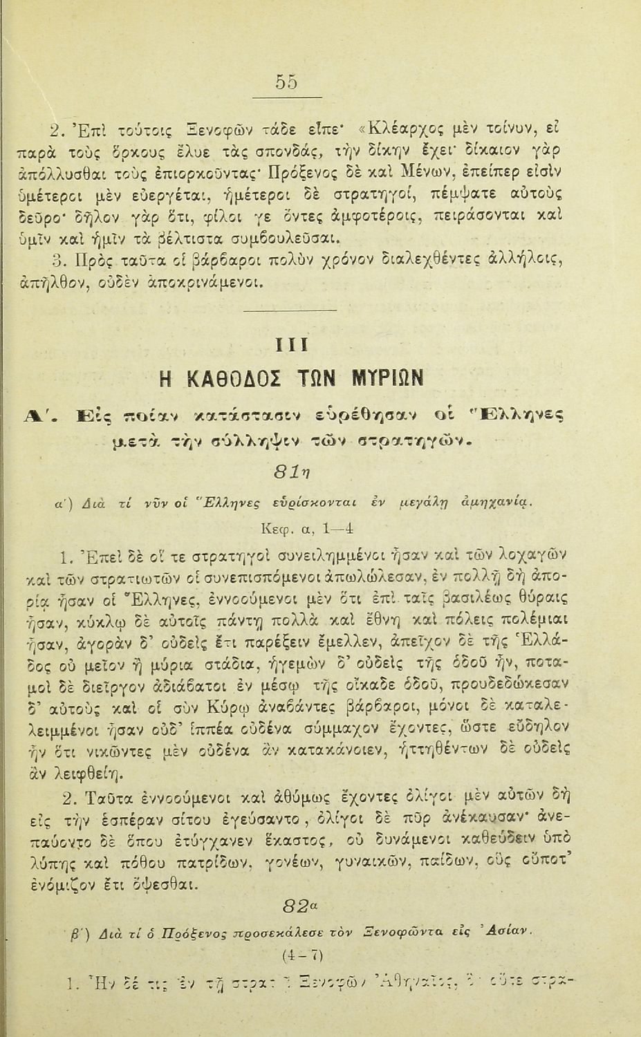 Ελληνική χρηστομάθεια τόμος Β΄, Ξενοφώντος Κύρου Αναβάσεως τα τρία πρώτα βιβλία προς χρήσιν των μαθητών της Β΄ τάξεως των Ελληνικών Σχολείων