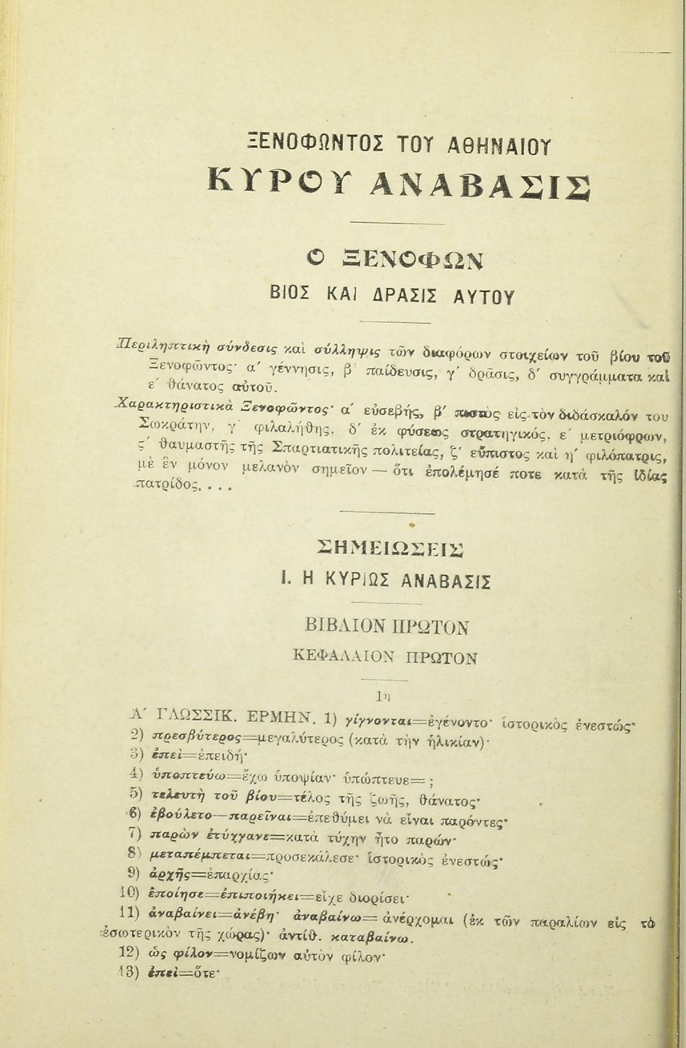 Ελληνική χρηστομάθεια τόμος Β΄, Ξενοφώντος Κύρου Αναβάσεως τα τρία πρώτα βιβλία προς χρήσιν των μαθητών της Β΄ τάξεως των Ελληνικών Σχολείων