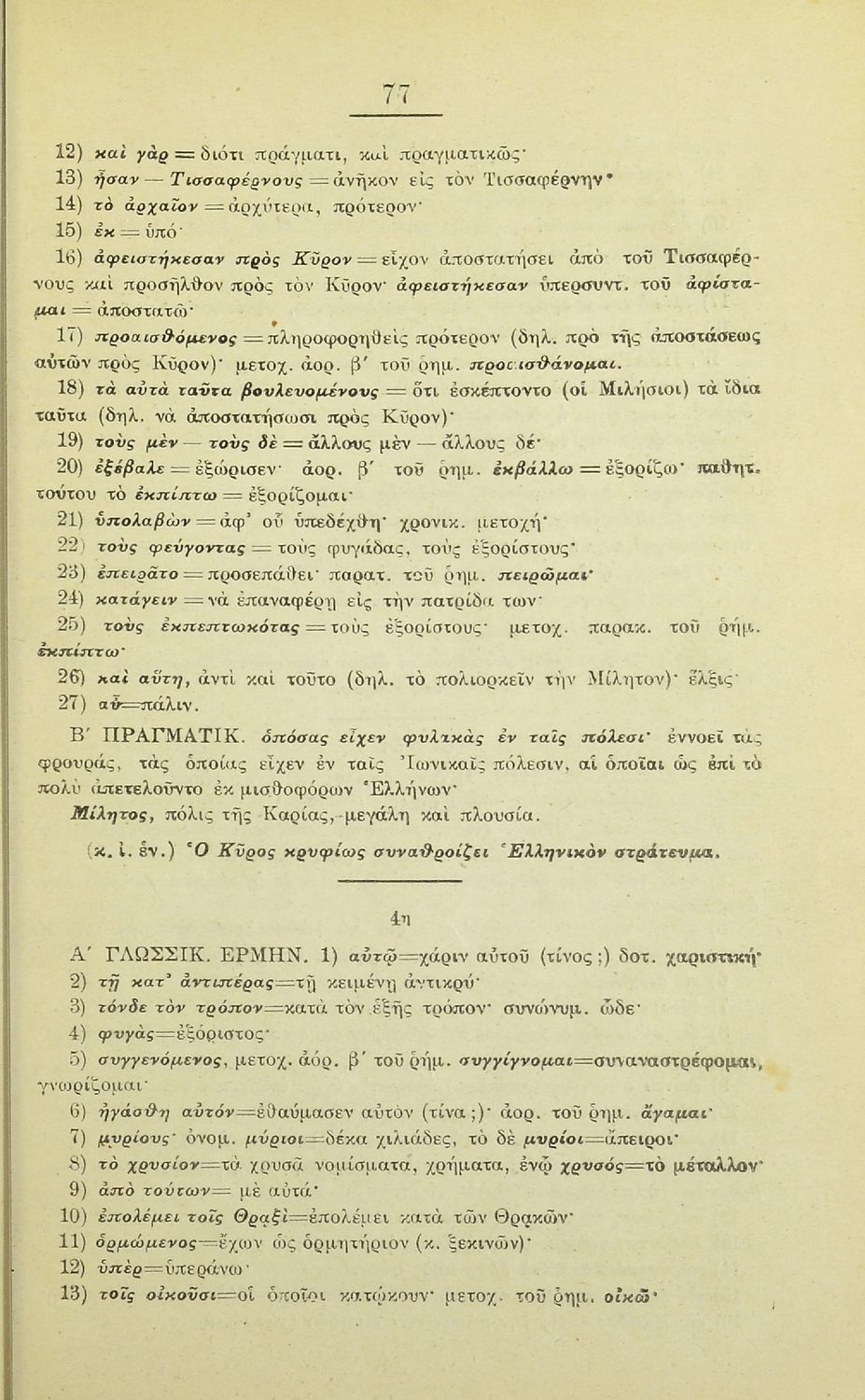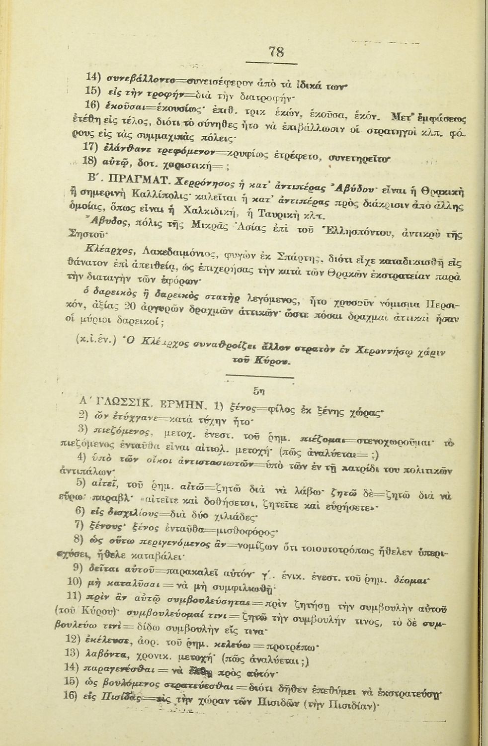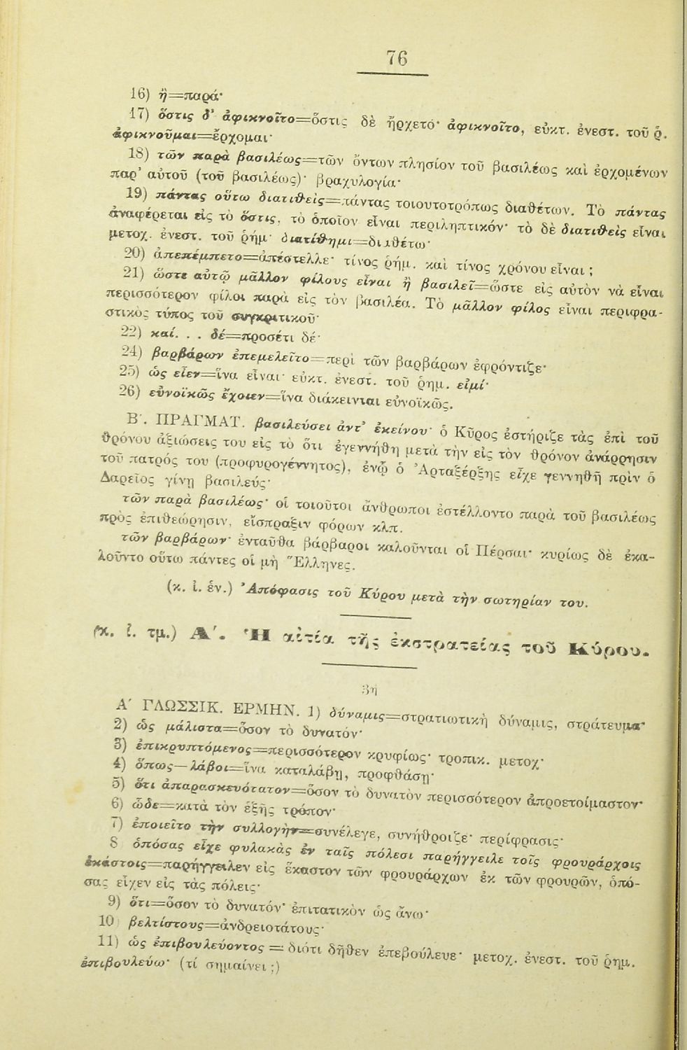 Σχολικό εγχειρίδιο Αρχαίων Ελληνικών για τα Ελληνικά Σχολεία, Γυμνάσια και Παρθεναγωγεία που περιλαμβάνει αποσπάσματα από το έργο του Ξενοφώντα Κύρου Ανάβασις, και λεξικογραφικές παρατηρήσεις.