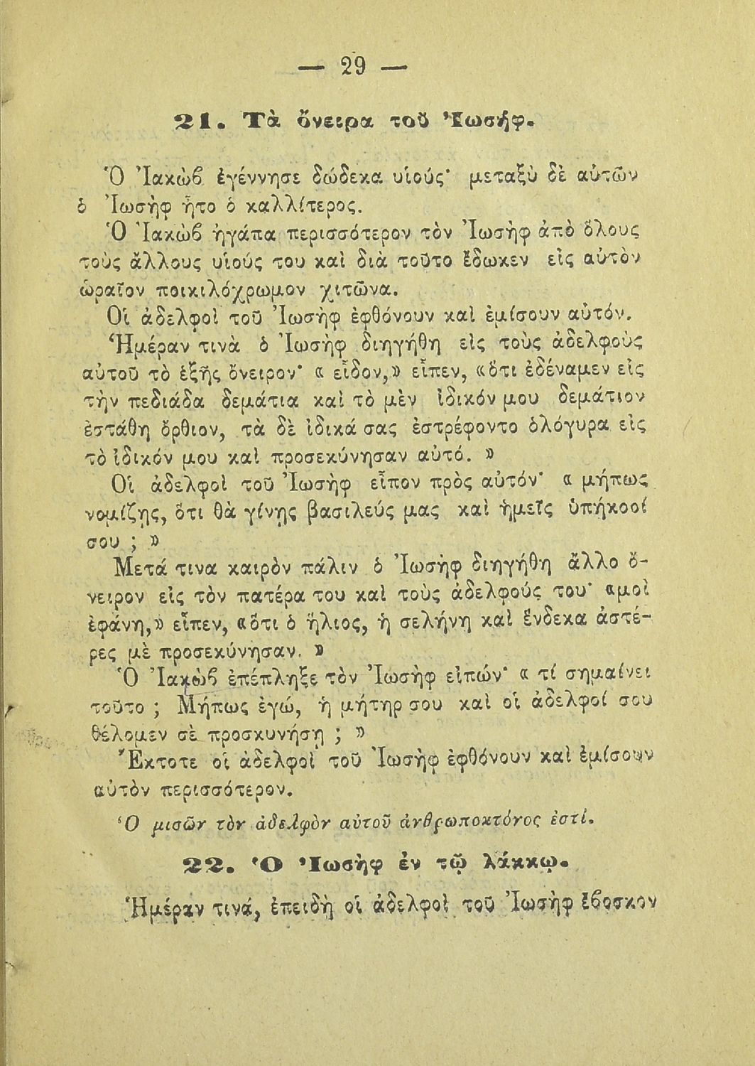 Σχολικό εγχειρίδιο για τα Ιερατικά Σχολεία που περιέχει με αναλυτική περιγραφή της Παλαιάς και Καινής Διαθήκης.