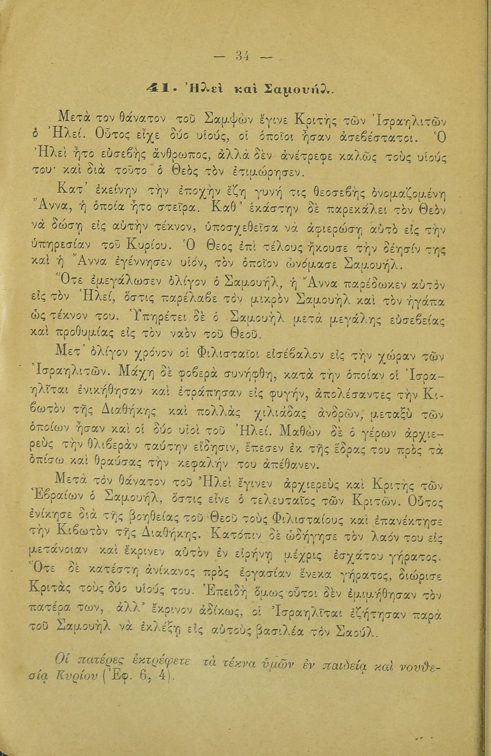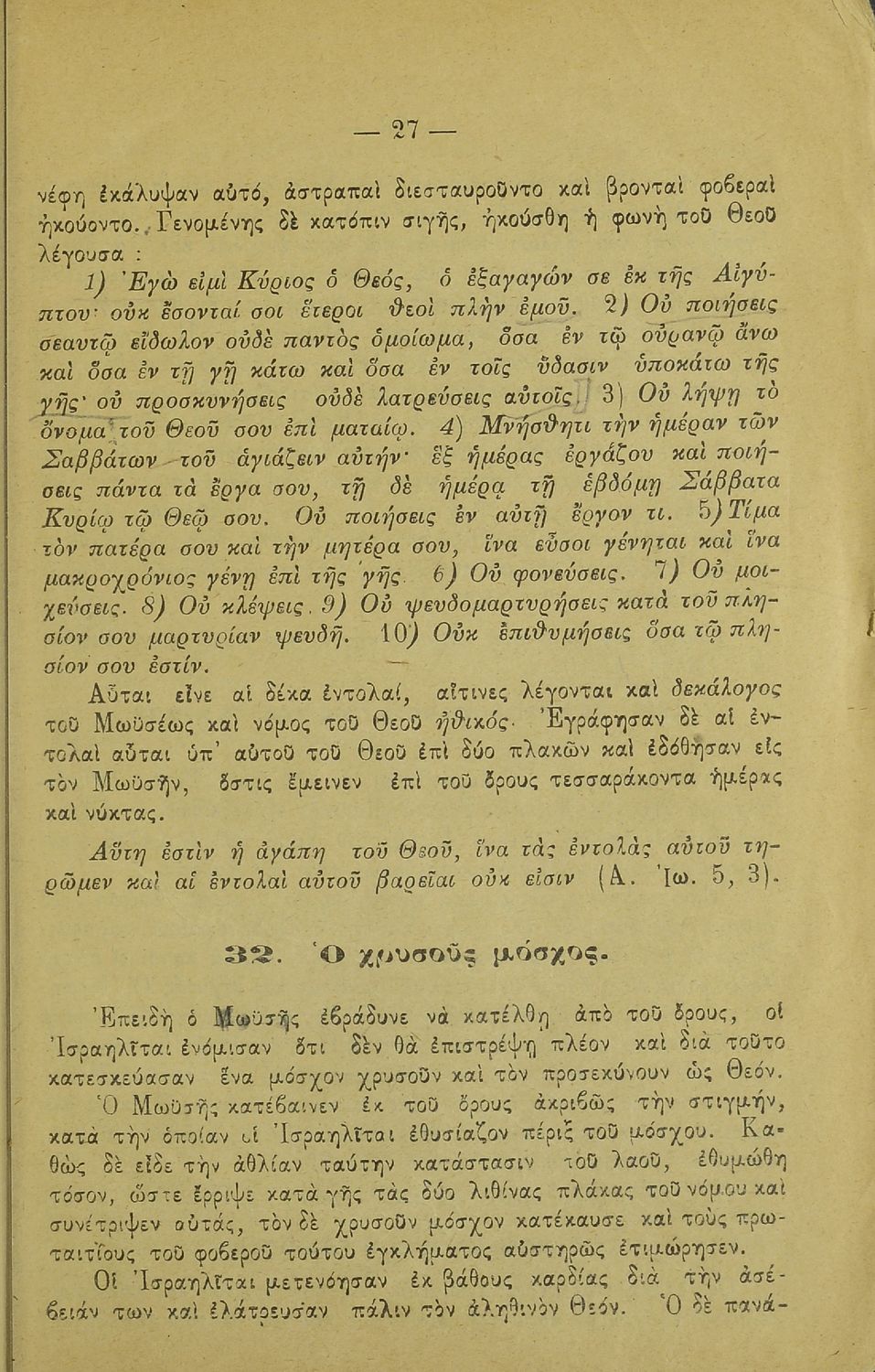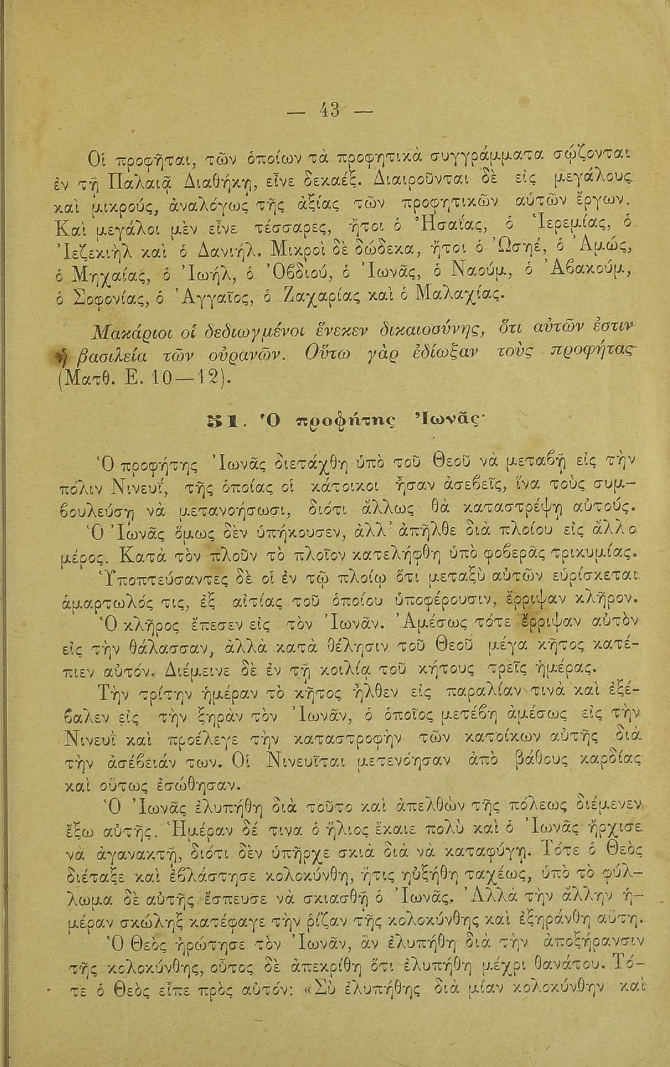 Σχολικό εγχειρίδιο Θρησκευτικών για τα Δημοτικά και Ελληνικά Σχολεία που περιλαμβάνει την ιστορία της Παλαιάς και της Καινής Διαθήκης από την δημιουργία του κόσμου μέχρι και την ανάληψη του Ιησού Χριστού.