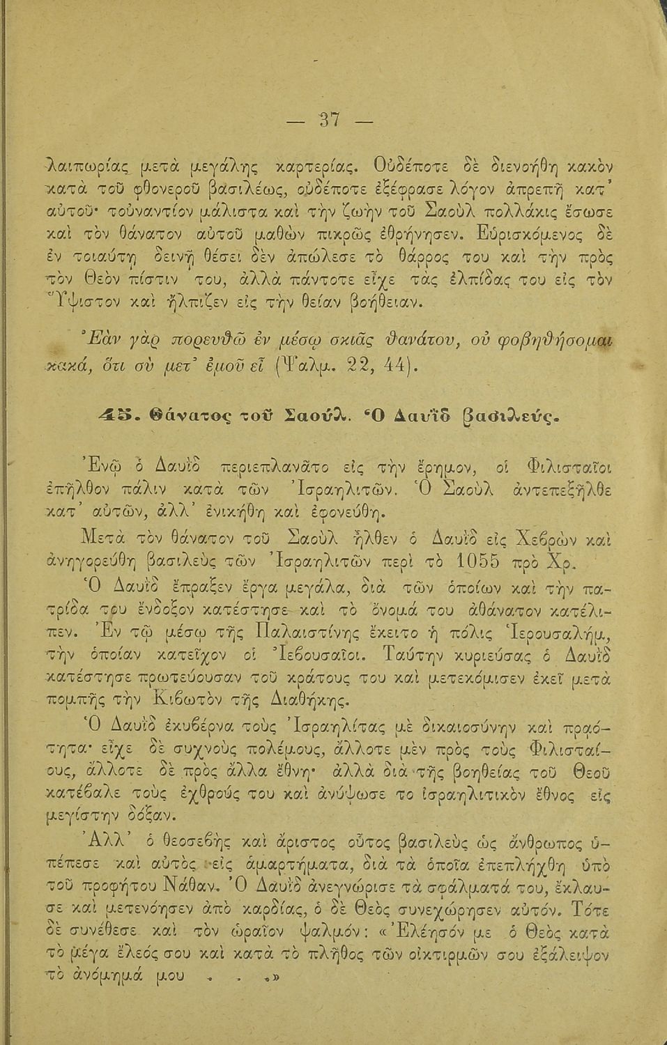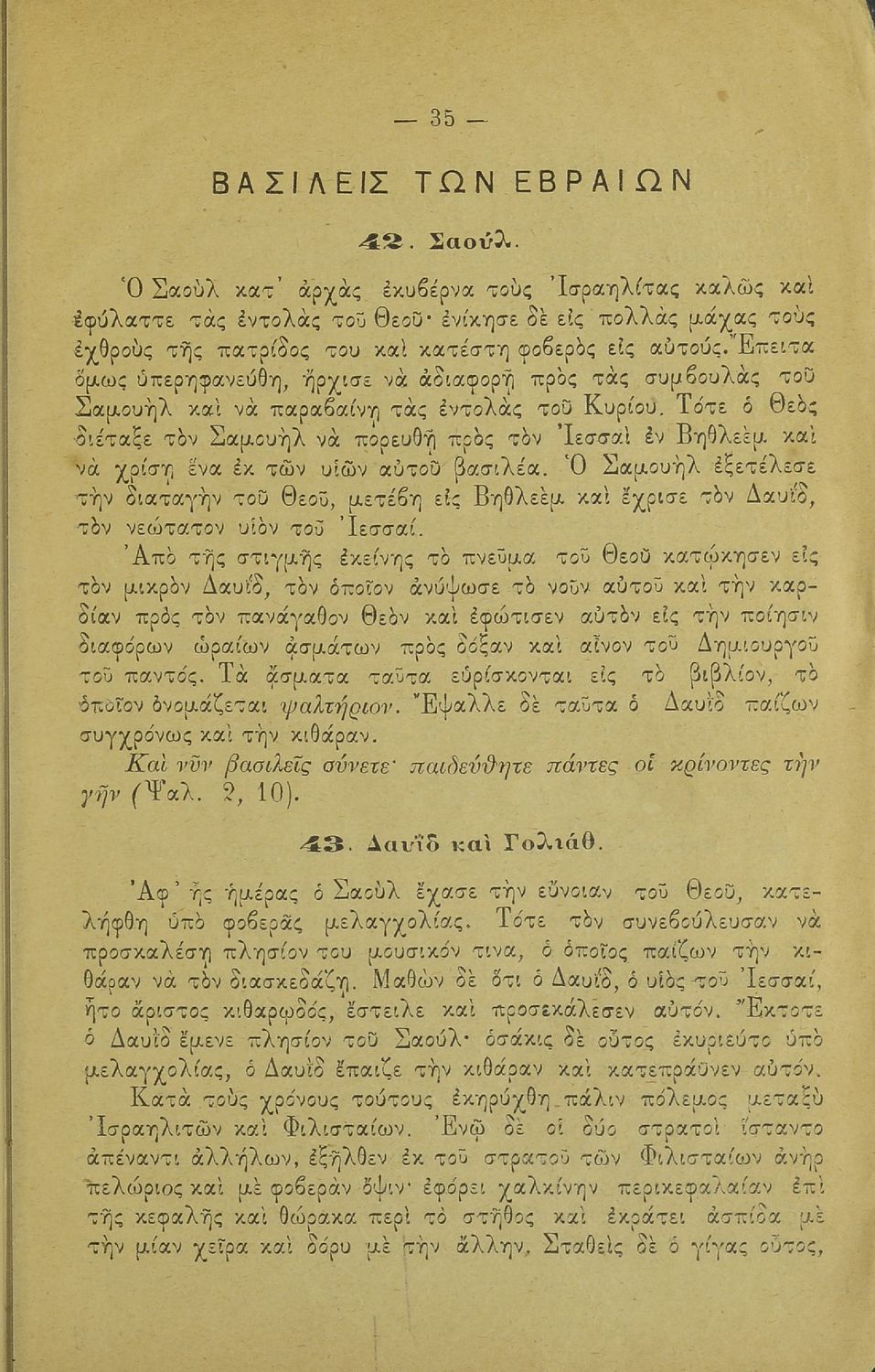 Σχολικό εγχειρίδιο Θρησκευτικών Δημοτικού που συνιστά μία εξιστόρηση της Παλαιάς Διαθήκης από τη δημιουργία του κόσμου ως τους Μακκαβαίους. Περιέχει και ποιήματα θρησκευτικού περιεχομένου.