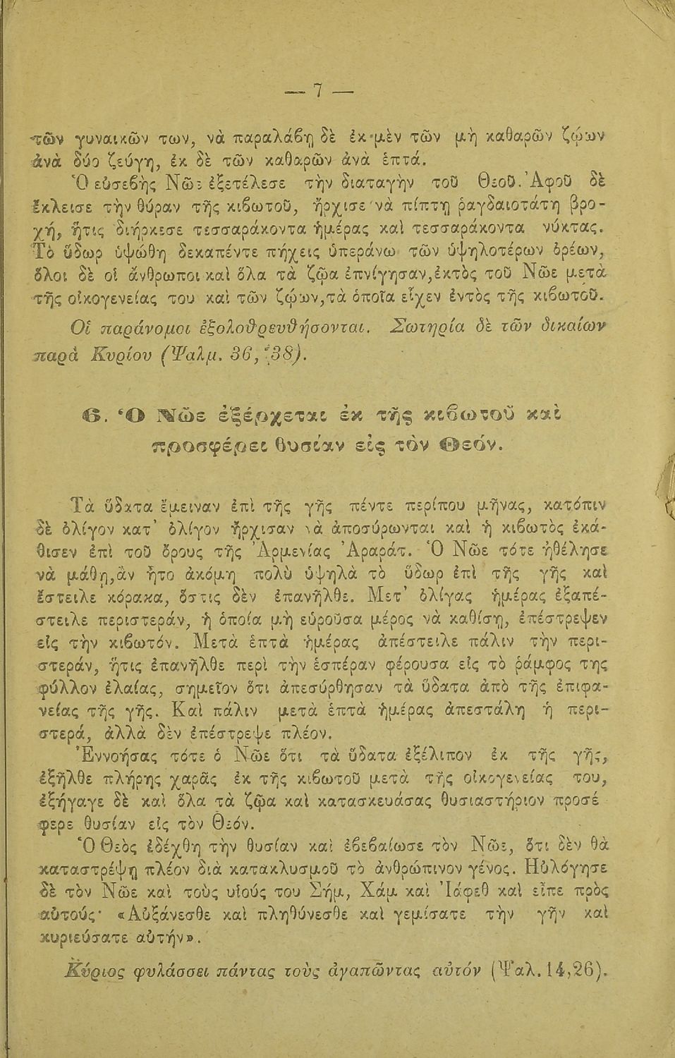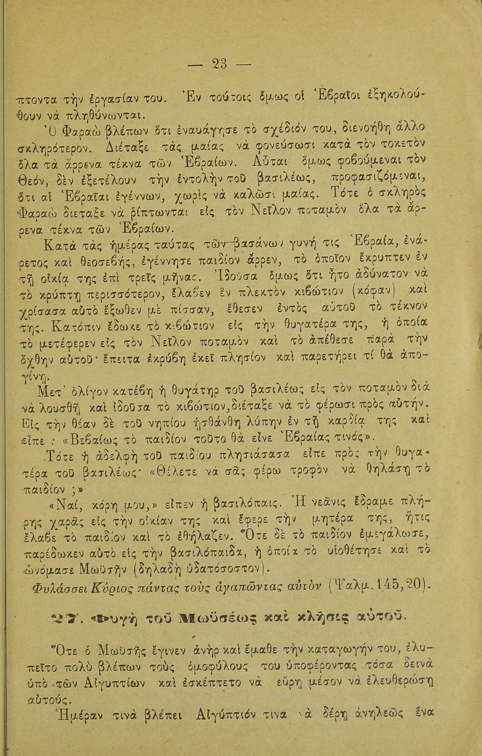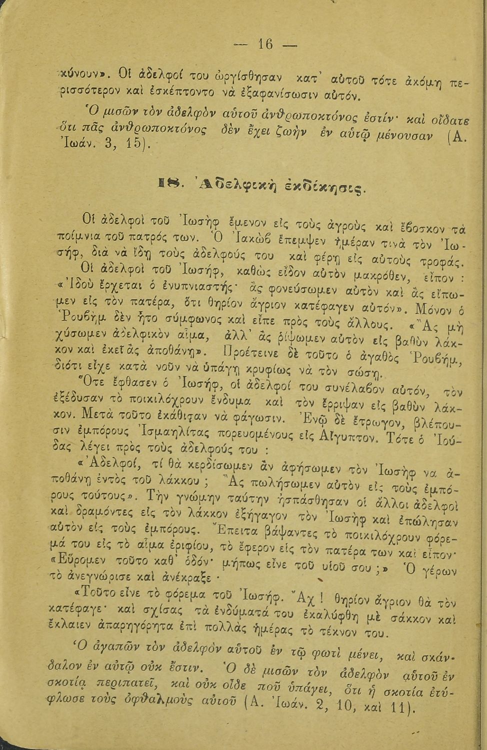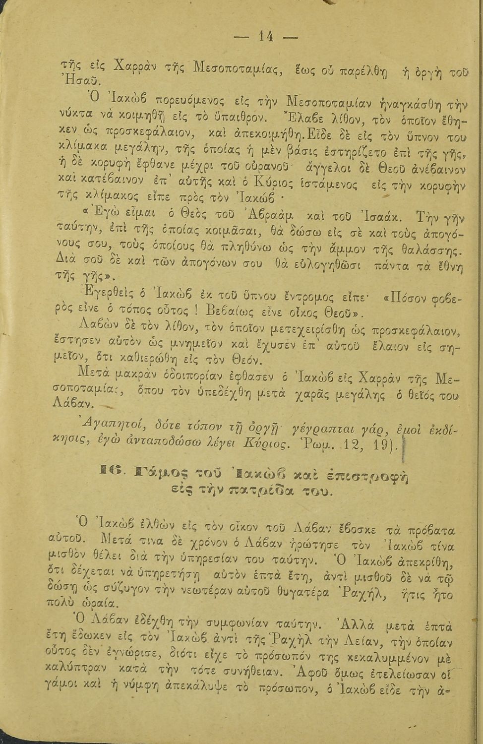Βαθμίδα εκπαίδευσης: Πρωτοβάθμια Μάθημα: Θρησκευτικά Γλώσσα: Καθαρεύουσα Παρουσίαση περιεχομένου: Σχολικό εγχειρίδιο Θρησκευτικών Δημοτικού που συνιστά μία εξιστόρηση της Παλαιάς Διαθήκης από τη δημιουργία του κόσμου ως τους Μακκαβαίους. |